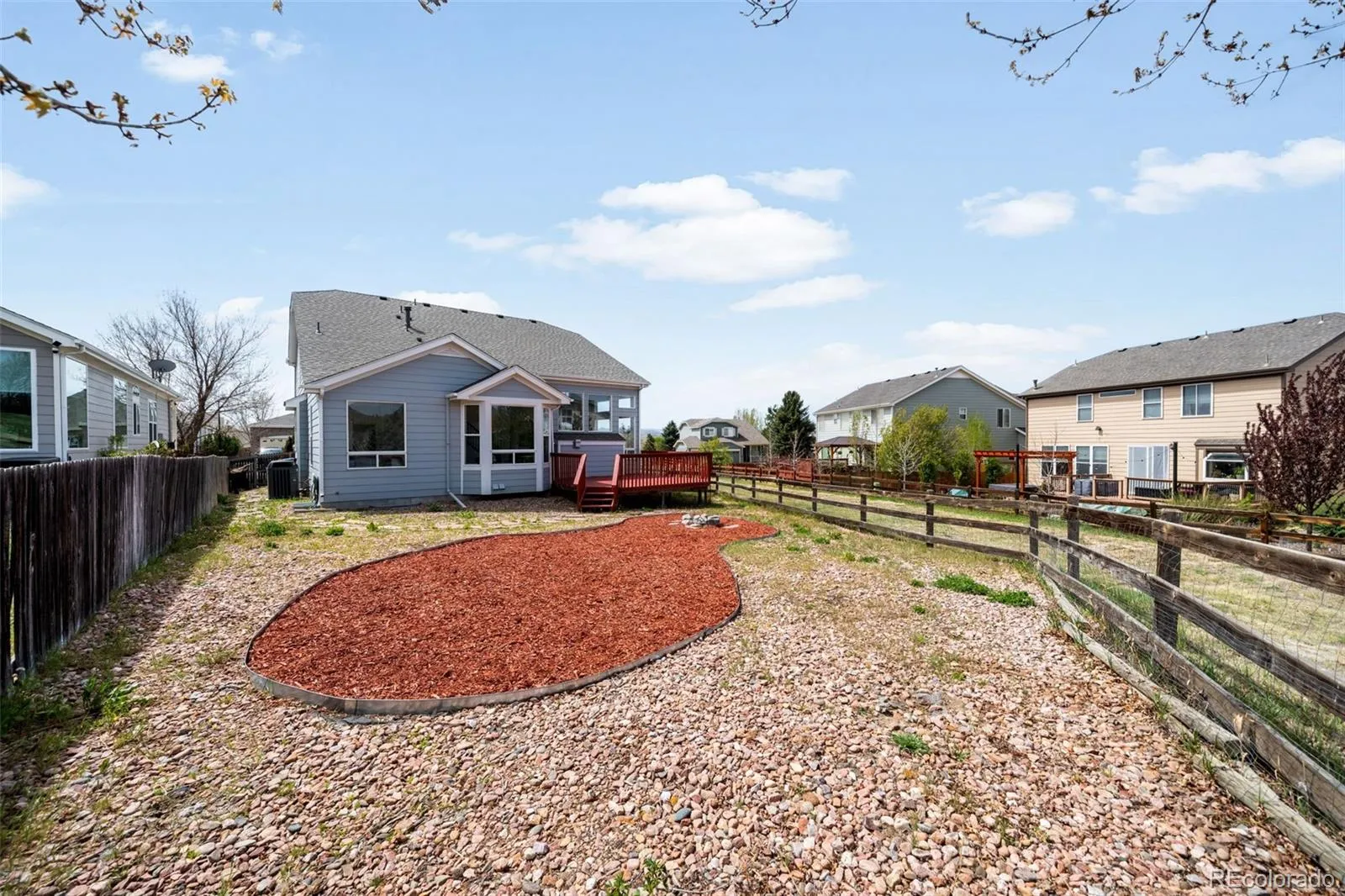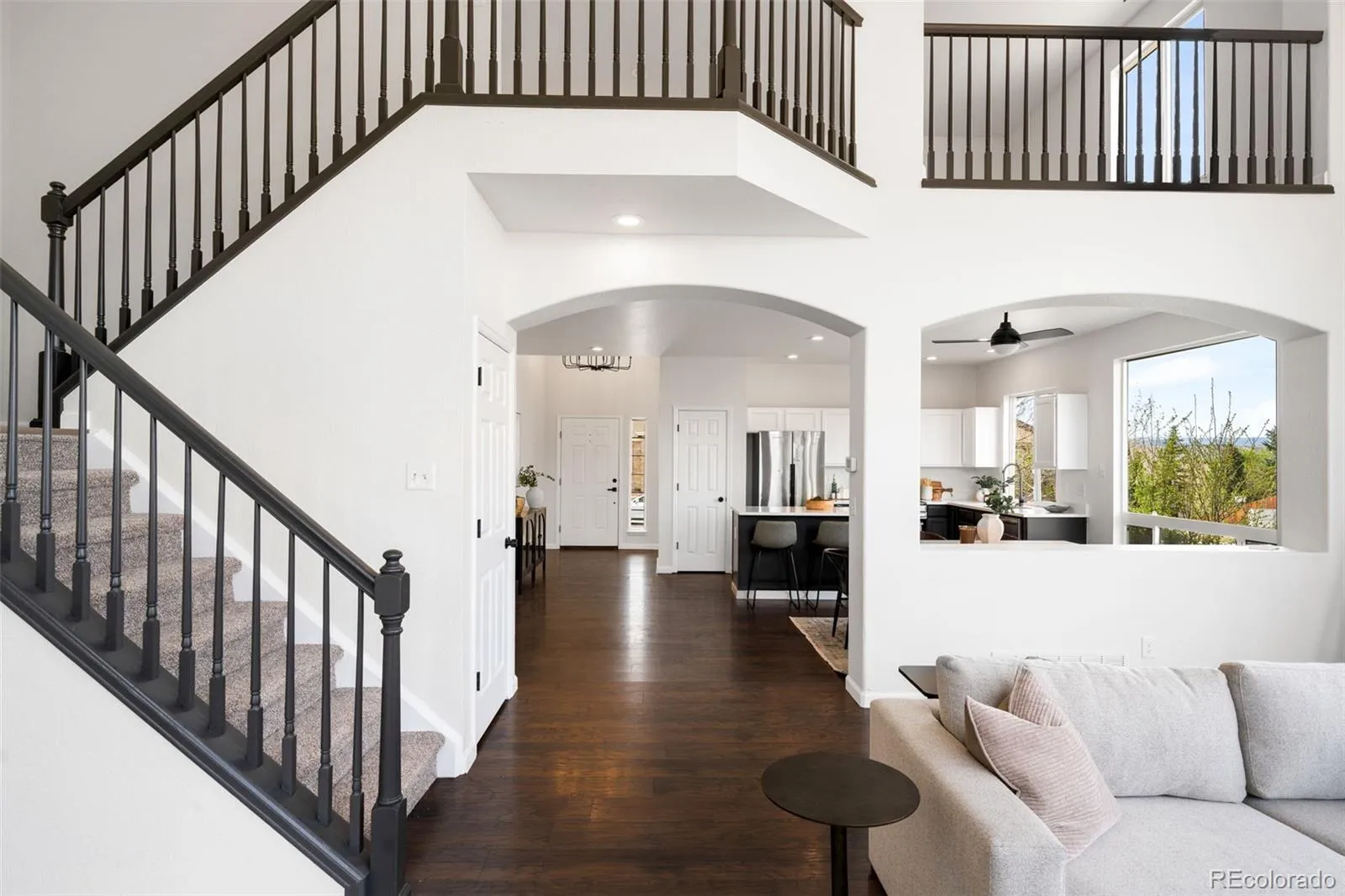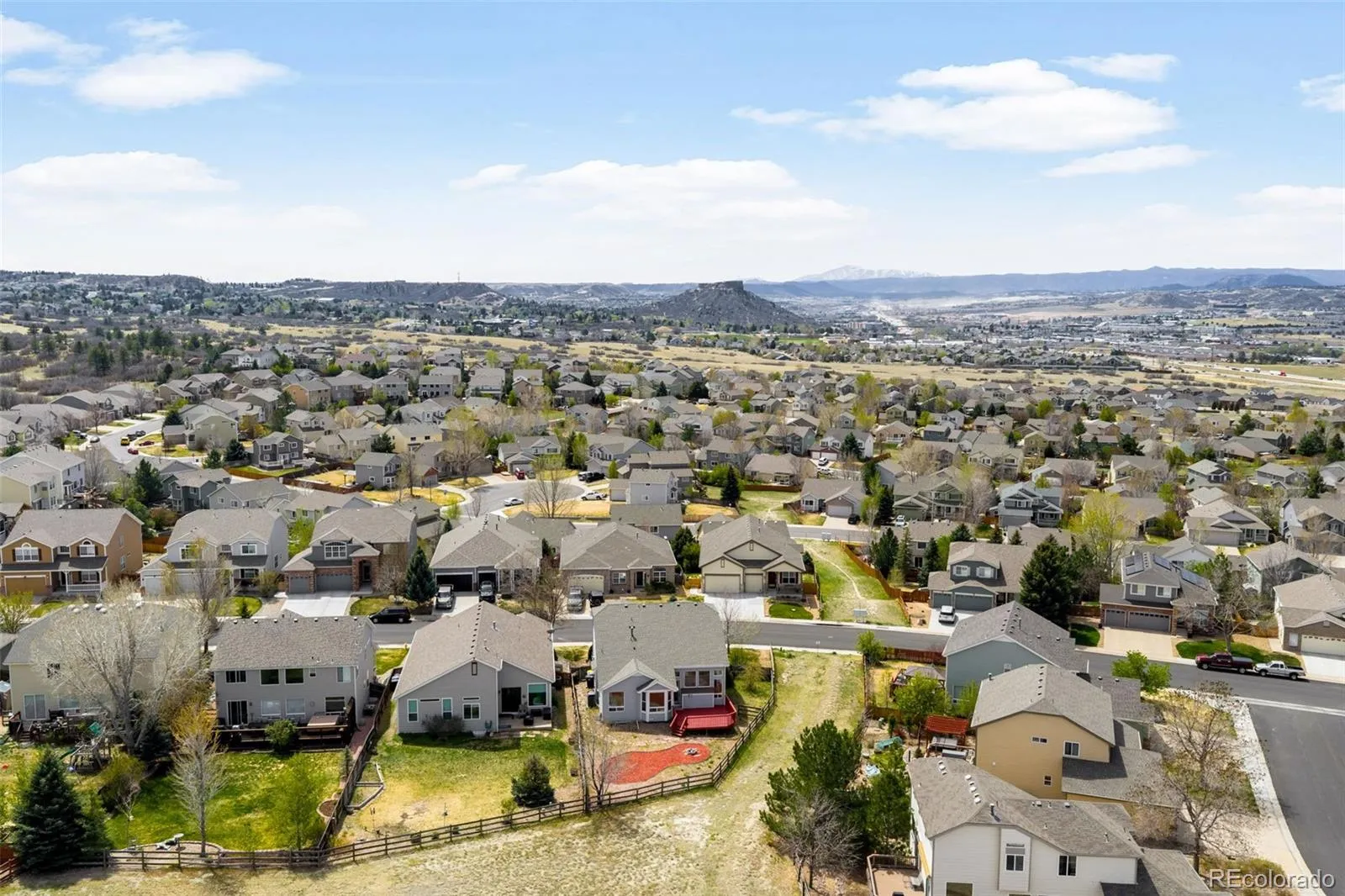 Welcome to this move-in ready 5-bedroom, 4-bath home in Castle Rock’s sought-after Metzler Ranch community, offering an ideal blend of space, comfort, and Colorado lifestyle. A south-facing driveway provides easier winter maintenance, while no immediate neighbor to the west offers added privacy and a sense of breathing room. The open floor plan features a front formal dining room that functions perfectly as a home office or flex space. The updated kitchen includes new appliances (all new except the refrigerator, just over one year old), new countertops, a pantry, and flows seamlessly into the living room. The living room showcases vaulted ceilings, a gas fireplace, and large windows overlooking the greenbelt, filling the home with natural light and peaceful views. The main-level primary suite is generously sized and designed as a true retreat, complete with a five-piece ensuite bathroom and walk-in closet, and plenty of room for a sitting area, home gym, or yoga space. Upstairs offers three spacious bedrooms, a recently updated full bathroom with a double vanity, and a large open loft ideal for a playroom, homework area, or second living space. The finished basement adds exceptional flexibility with a new bedroom and full bathroom, with additional space to make it your own. Major upgrades include a new 2024 Class 4 impact-resistant roof, along with new carpet throughout and fresh interior paint, making this home truly turnkey. Located in the Metzler Ranch neighborhood of Castle Rock, residents enjoy a suburban lifestyle with access to trails, open space, and mountain views. With quick access to I-25, commuting to Denver (approx. 50 minutes) or Denver International Airport (approx. 40 miles) is easy. Positioned between Denver and Colorado Springs, this home delivers the best of Front Range living.