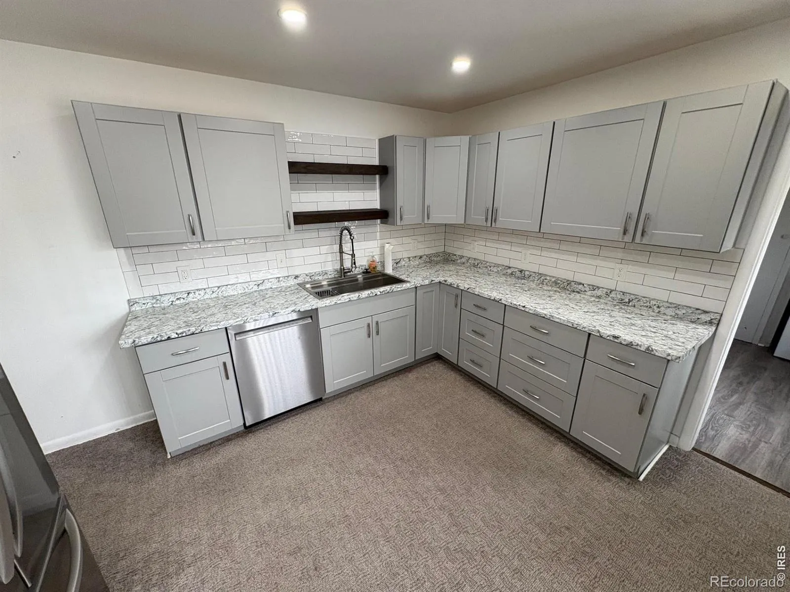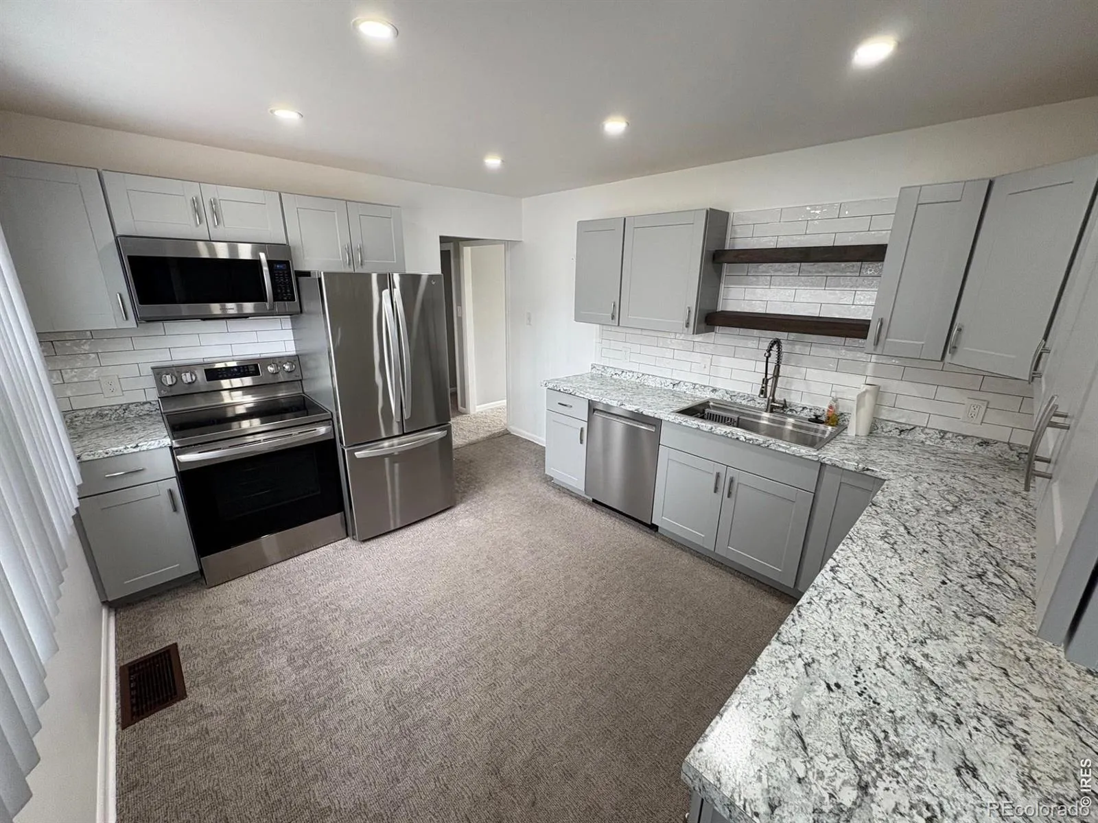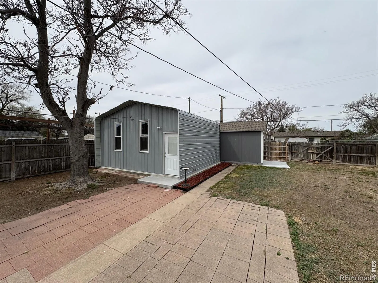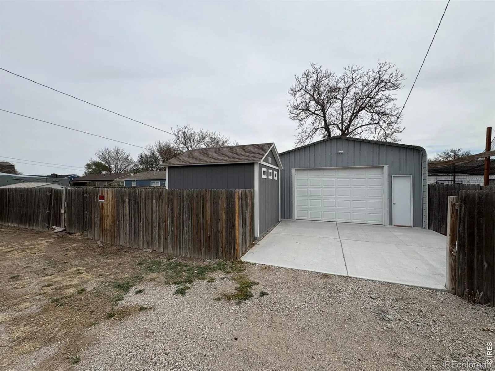 Charming 2-bedroom, 1 full bath home featuring comfortable carpeted living spaces and kitchen with stainless steel appliances. Enjoy the convenience of both an attached one-car garage and a newly added oversized detached garage/shop added in 2025, offering Convenient parking and storage. Located directly across from Wisdom Park, this property also includes two storage sheds, one newly built in 2025, and a large, fully fenced backyard. A new sprinkler system has been installed, providing full coverage for the front, sides, and backyard.