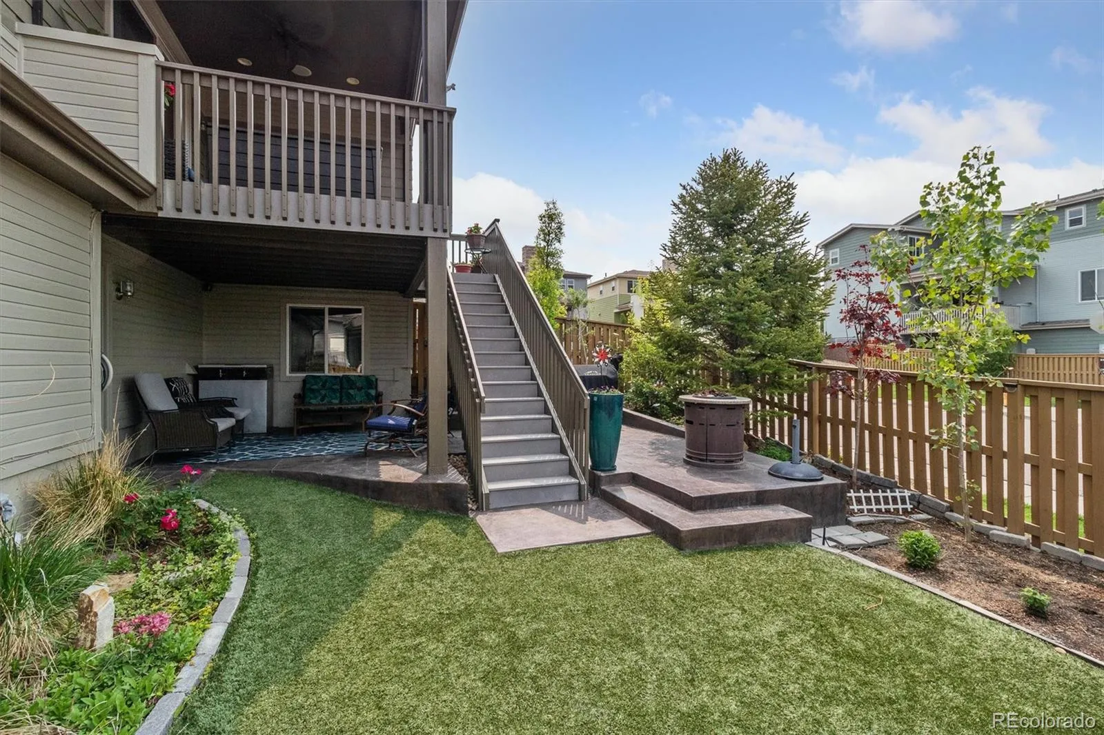 Welcome to this beautifully maintained home in the beautifully maintained Spaces community of Highlands Ranch. Perfectly positioned on a prime corner lot, this home offers a private backyard with low-maintenance turf, stamped concrete, and plenty of space to relax or entertain.