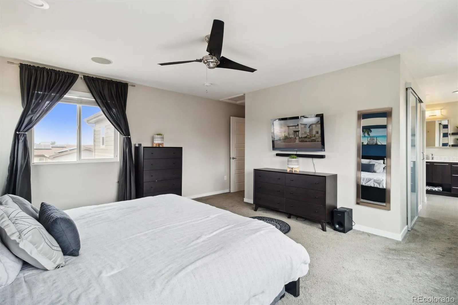 Enjoy Colorado evenings on the covered deck, complete with remote-controlled solar shades and mountain views. Upstairs, you’ll find three bedrooms, two bathrooms, and a conveniently located laundry area.