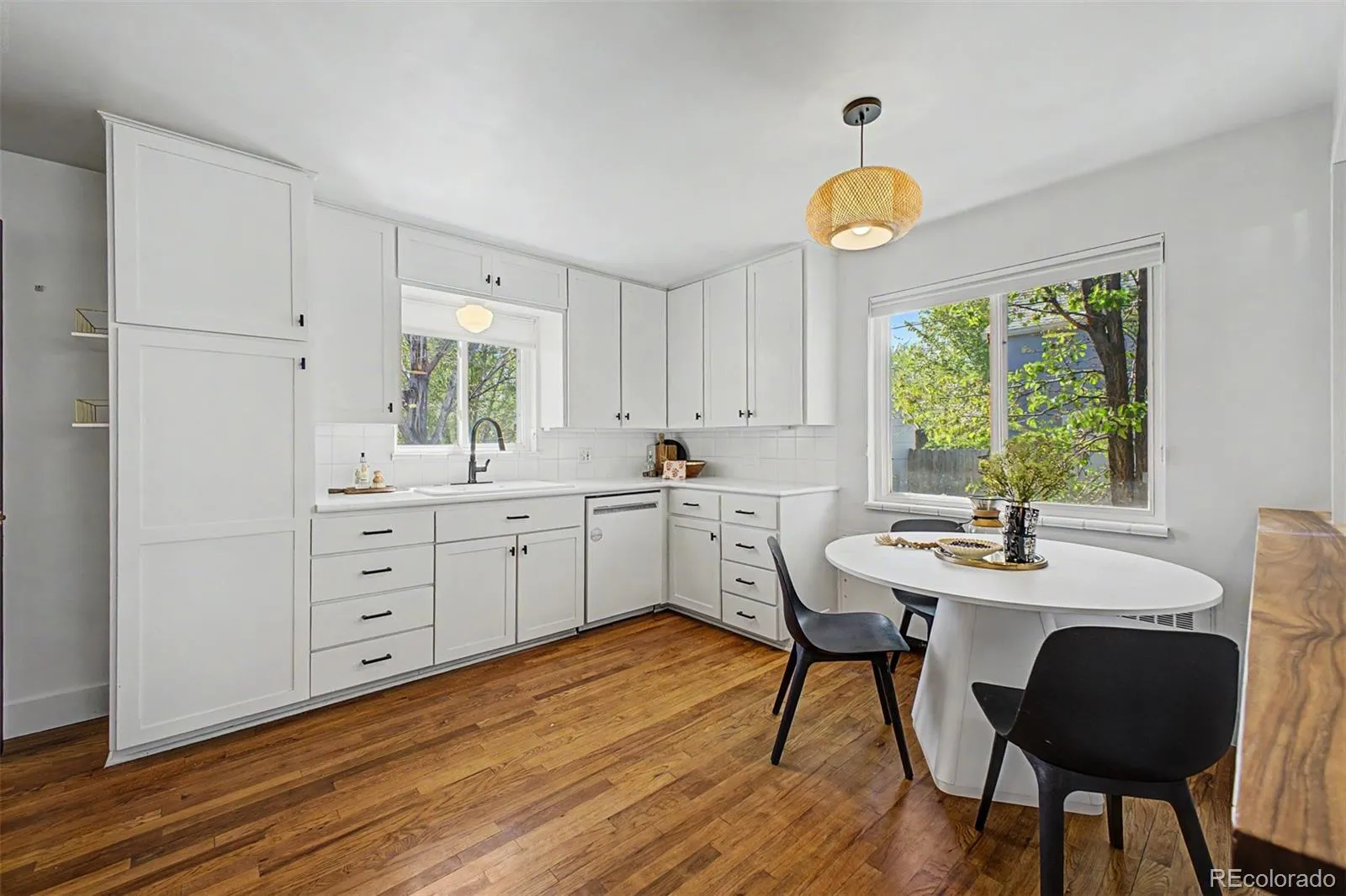 This home is move-in ready and full of charm! Featuring an automatic drive-in gate and a convenient concrete parking space, plus a 2-car detached garage in the backyard for all your vehicles. A welcoming front porch sets the tone! Delightful interior has an inviting living room, modern light fixtures, warm wood flooring, and neutral paint. The eat-in kitchen offers a breakfast bar, built-in appliances, white cabinetry, and a tile backsplash. On the main level, you’ll find two well-sized bedrooms with spacious closets, along with a full bathroom featuring a tub/shower combination. One of the bedrooms offers flexibility and can easily serve as an office! Downstairs, the carpeted basement expands your living space with a generous main primary bedroom complete with a walk-in closet, two additional bedrooms, another full bathroom with a tub/shower combo, and a large laundry room equipped with a utility sink. Discover a grassy backyard boasting a seating area and raised garden beds. Make this fantastic opportunity yours today!