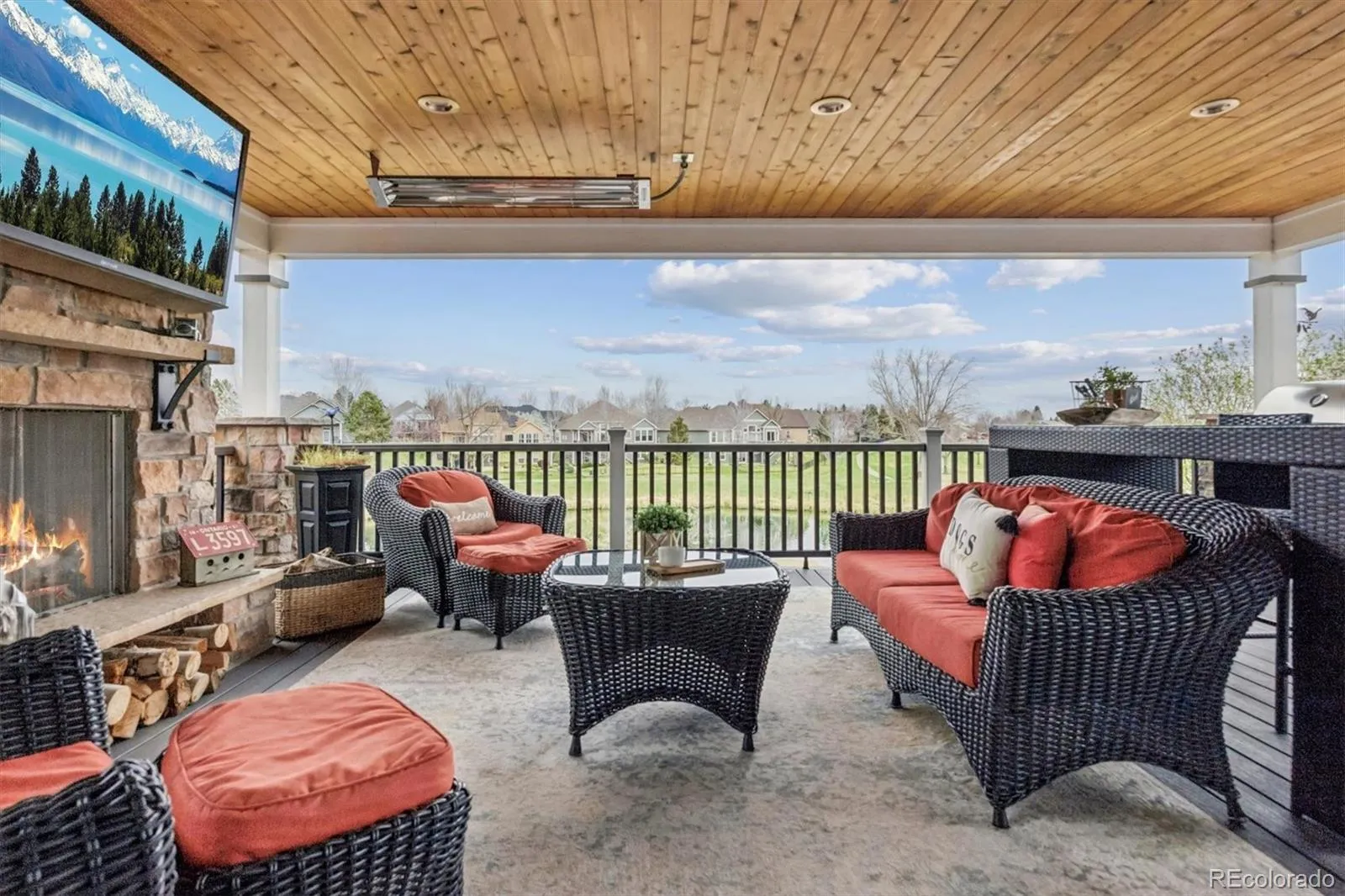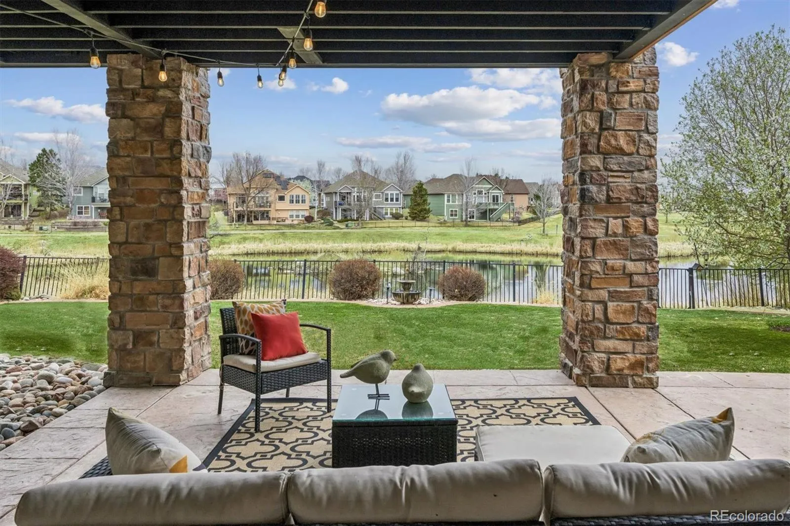 Exceptional 5-bedroom home on one of the best lots in the quiet, gated community of Meadows Sanctuary. Perfectly sited along a waterfall, ponds, and a protected bird sanctuary, this home was designed to highlight its remarkable setting, featuring northwest-facing mountain views, expansive open space, and the tranquil backdrop of Sanctuary Park and Eagle’s Meadow Park. Ideal for indoor-outdoor living, the homeowners created an expansive 700-square-foot composite deck with a gas fireplace, outdoor heating, full electrical, and an outdoor kitchen with a gas grill and beverage refrigerator. The space easily accommodates lounge seating, a bar-height table, and outdoor dining—perfect for year-round enjoyment. The deck is accessed from the large eat-in kitchen, which features updated cabinetry, a brand-new double oven, and an oversized granite island. The kitchen opens to a light-filled family room with a gas fireplace and picture windows that frame the views. Upstairs, the primary suite offers abundant natural light, a 5-piece en-suite bath, and a walk-in closet, along with stunning city light views at night. Three additional bedrooms include one en-suite and two connected by a Jack-and-Jill bath. A spacious loft with an attic fan provides flexible living space and could be converted into a sixth bedroom. The walkout lower level features 9-foot ceilings, a large family room with a wall of windows, an entertainment center, and a custom built-in bar with wine storage. There is also a bright home gym and an additional bedroom with an en-suite bath and walk-in closet. Enjoy a covered, stamped concrete patio with an included hot tub, along with a beautifully landscaped, low-maintenance yard featuring underground sprinklers and electric garden lighting. A clear pre-listing inspection report is available, reflecting the pride of ownership and meticulous maintenance of the home. Don’t miss this opportunity to own a truly special property!