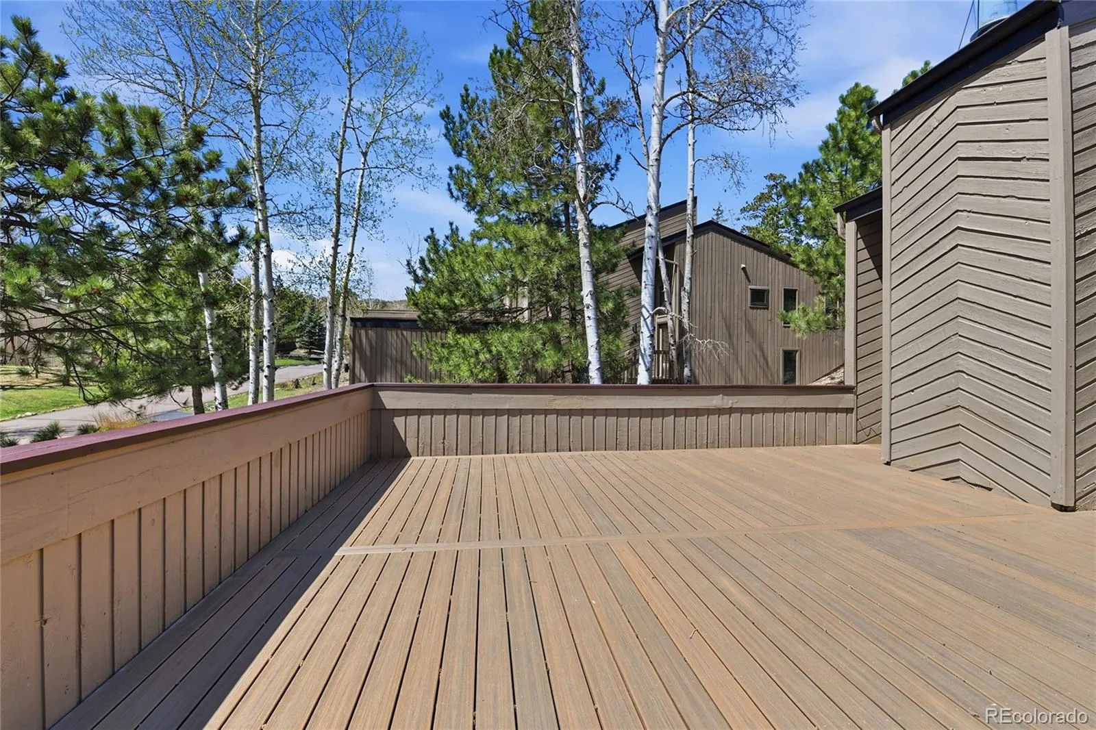 The updated modern interior with vaulted ceilings and warm hickory floors lead to a spacious living room featuring a cozy natural gas fireplace. A large, newly updated composite deck offers front-row seats to nature – watch resident elk and deer wander by. The gourmet kitchen has a functional layout with a breakfast bar and connected dining room, perfect for hosting gatherings. While the garden level of the home includes a versatile room to use as you see fit (home office/media room/private gym) along with two additional bedrooms. Nestled in a special community, you are minutes from Elk Meadow Park trails, Evergreen Lake, golf courses, and downtown shops. With easy I-70 access, arrive in Denver or high-country ski adventures in under 45 minutes, ensuring year-round recreational opportunities while maintaining mountain tranquility. The work has been done and it’s ready for its new owner to simply move in and enjoy all that Sun Creek and Evergreen has to offer. Experience the refresh—this isn’t just a home; it’s a lifestyle upgrade. Don’t miss your chance to own a piece of the Rockies—schedule your private tour today!