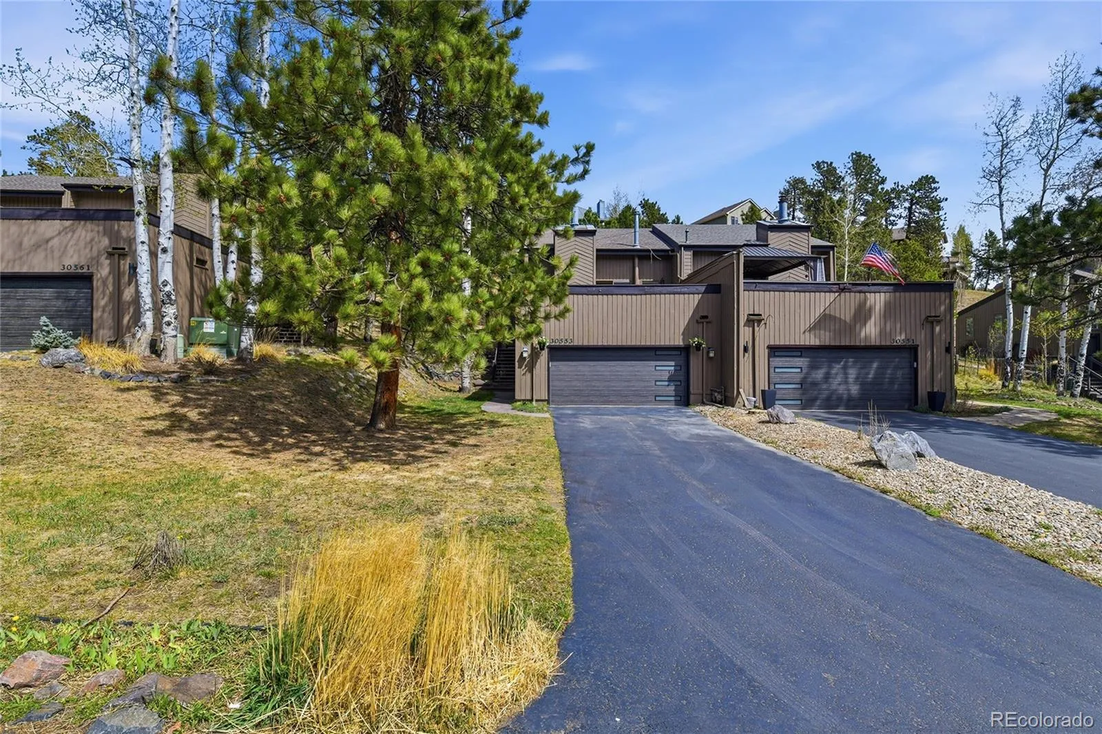 Within the Sun Creek Subdivision lies 30553 Sun Creek Drive, the most modern and updated townhome in the entire subdivision. This recently updated 3 bedroom + 2 bathroom mountain retreat is a 2,044 sq ft townhome that masterfully combines modern elegance with the serene beauty of the Colorado Foothills. Recent updates include a fully remodeled kitchen with induction stove and quartzite countertops, fully remodeled upper level 3/4 bath, Rooftop Deck with new waterproofing and new Trex decking, all new interior doors, trim, baseboard and hardware, all new paint and stair railings, new light figures, ceiling fans, outlets and switches, a new egress window, new slider out to back patio, new EV charging station, new garage door + opener, and much more! (Ask for a full list of updates.)