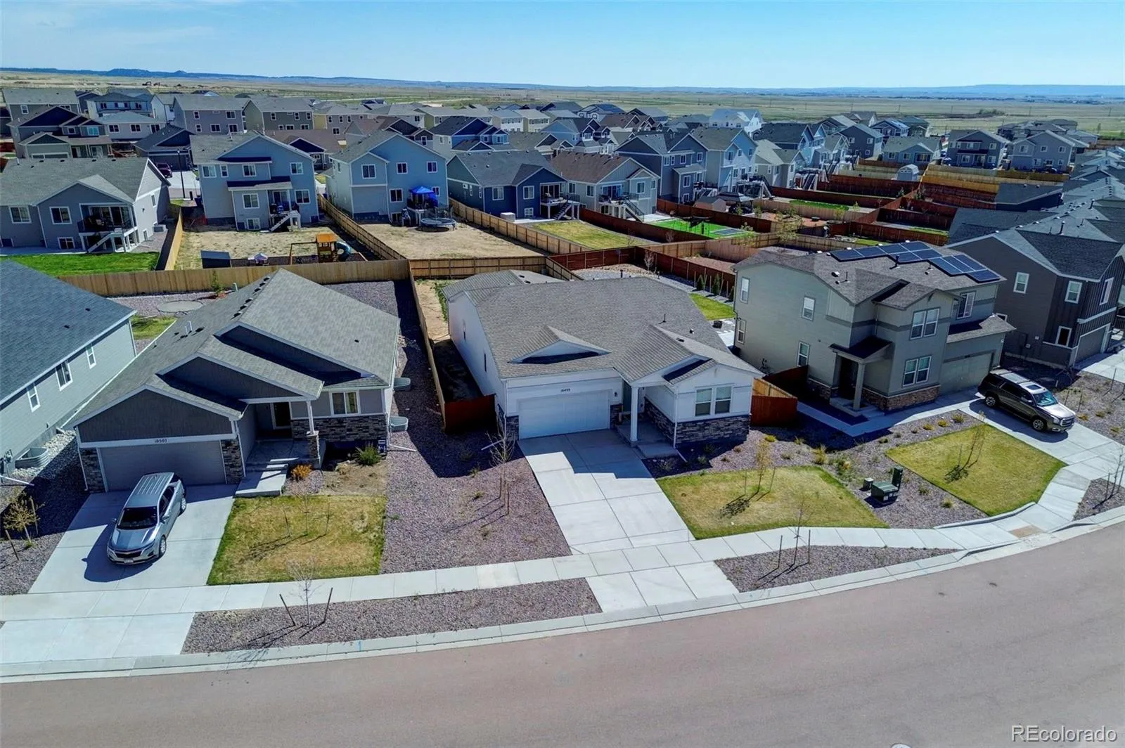 Welcome to this stunning ranch-style home in the highly sought-after Rolling Hills Ranch at Meridian Ranch in Falcon, Colorado just outside Colorado Springs! Offering the look, feel, and condition of a new construction home—with added upgrades—this move-in-ready property delivers exceptional value, functionality, and modern living. Step inside to discover true main-level living, featuring a spacious and private primary suite with a luxurious en-suite bathroom, dual vanities, and an oversized walk-in closet comparable in size to an additional bedroom. The gourmet kitchen is designed to impress with elegant quartz countertops, abundant cabinetry, a large pantry, and a convenient eat-in island—perfect for entertaining or everyday living. The main level also includes two additional bedrooms, a full bathroom, a dining area, laundry room, and a versatile mudroom/storage space with direct access to the large 2-car garage. The fully finished basement expands your living space with two large bedrooms, a full bathroom, an expansive family room, a room ready to be made into a dedicated theater room with stadium seating, and multiple storage areas. Enjoy Colorado outdoor living in the fully fenced backyard with low-maintenance xeriscaping. Located in the award-winning Meridian Ranch community, residents enjoy miles of trails, open space, parks, a golf course, and a recreation center with indoor and outdoor pools—all included in the Metro District. Conveniently located near Colorado Springs, Peterson SFB, Schriever SFB, Fort Carson, and the Air Force Academy. Don’t miss this incredible home—schedule your showing today!