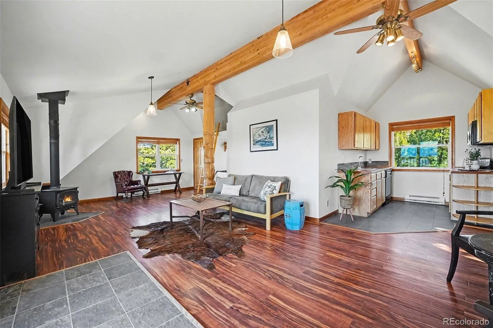 A walkway connects the main home to the legal ADU above the detached three car garage. This versatile space includes a kitchenette, living area, sleeping nook, and a three quarter bath, making it ideal for guests, a home office, or rental income potential including Airbnb. With two separate access points, the property offers potential for future development (buyer to verify). Located on a school bus route and just minutes from Highway 285, the road is maintained year round for easy access and commuting. Once you arrive, you may not want to leave.