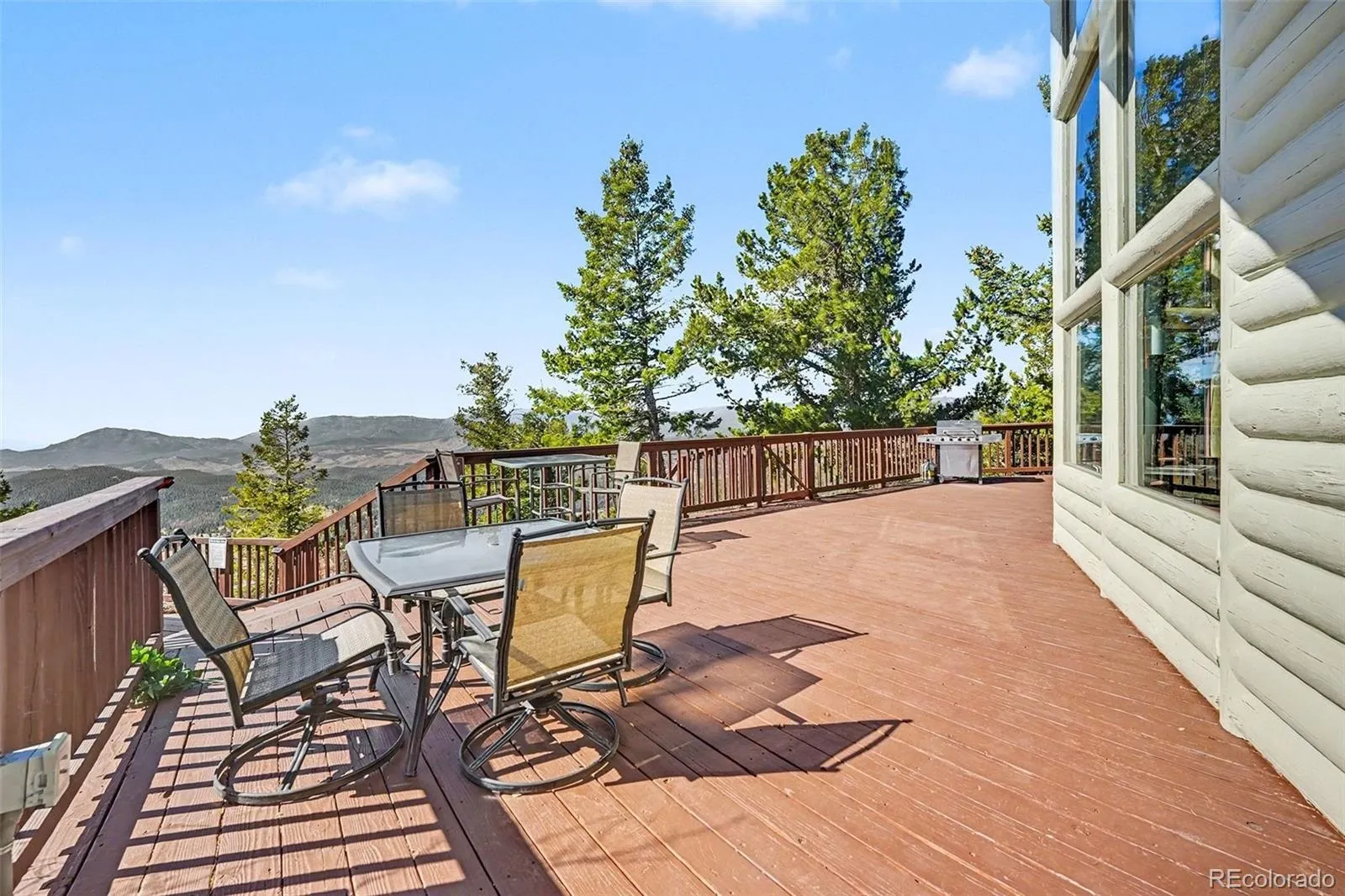 Stunning custom contemporary log retreat perched atop a dramatic rock outcropping on 40 private acres, offering truly breathtaking top-of-the-world views and a separate, private, legal ADU. Enjoy sweeping 360 degree views of the Rocky Mountains, including Pikes Peak and Mount Rosalie, from nearly every vantage point. The property is a rare blend of natural beauty and privacy, featuring aspen groves, striking rock formations, scenic overlooks, and private hiking trails.