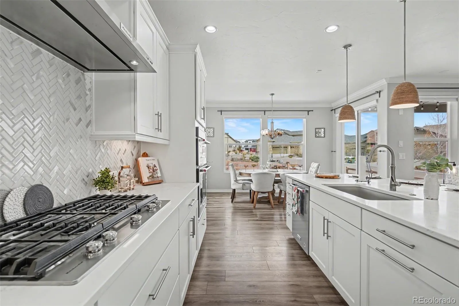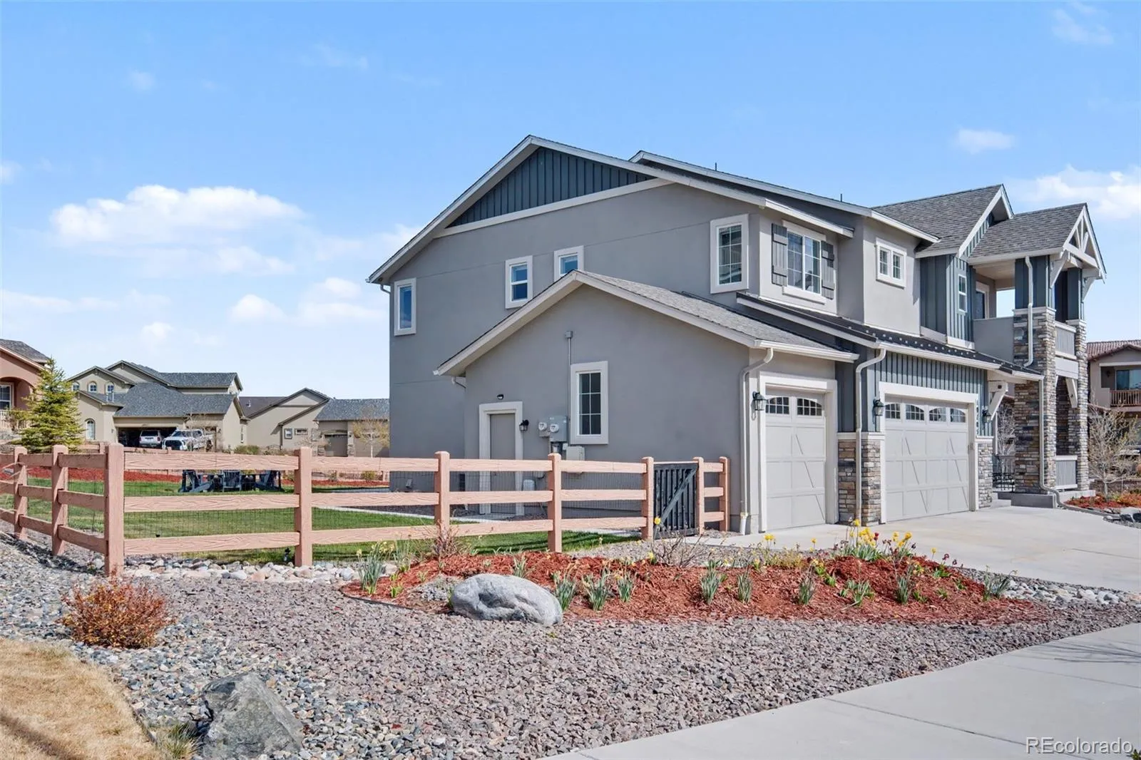 Positioned on a premium corner lot with spectacular Pikes Peak views, this exceptional home blends luxury, functionality, and modern design. Boasting 5 bedrooms, 4 bathrooms, 3.5-car garage, designer gourmet kitchen (with 42″ upper cabinets, soft-close drawers and hinges, walk-in pantry, KitchenAid appliance package inclusive of a gas range and double ovens), surround sound pre-wire, solar panels, AC, this home is ideal for entertaining and everyday living.