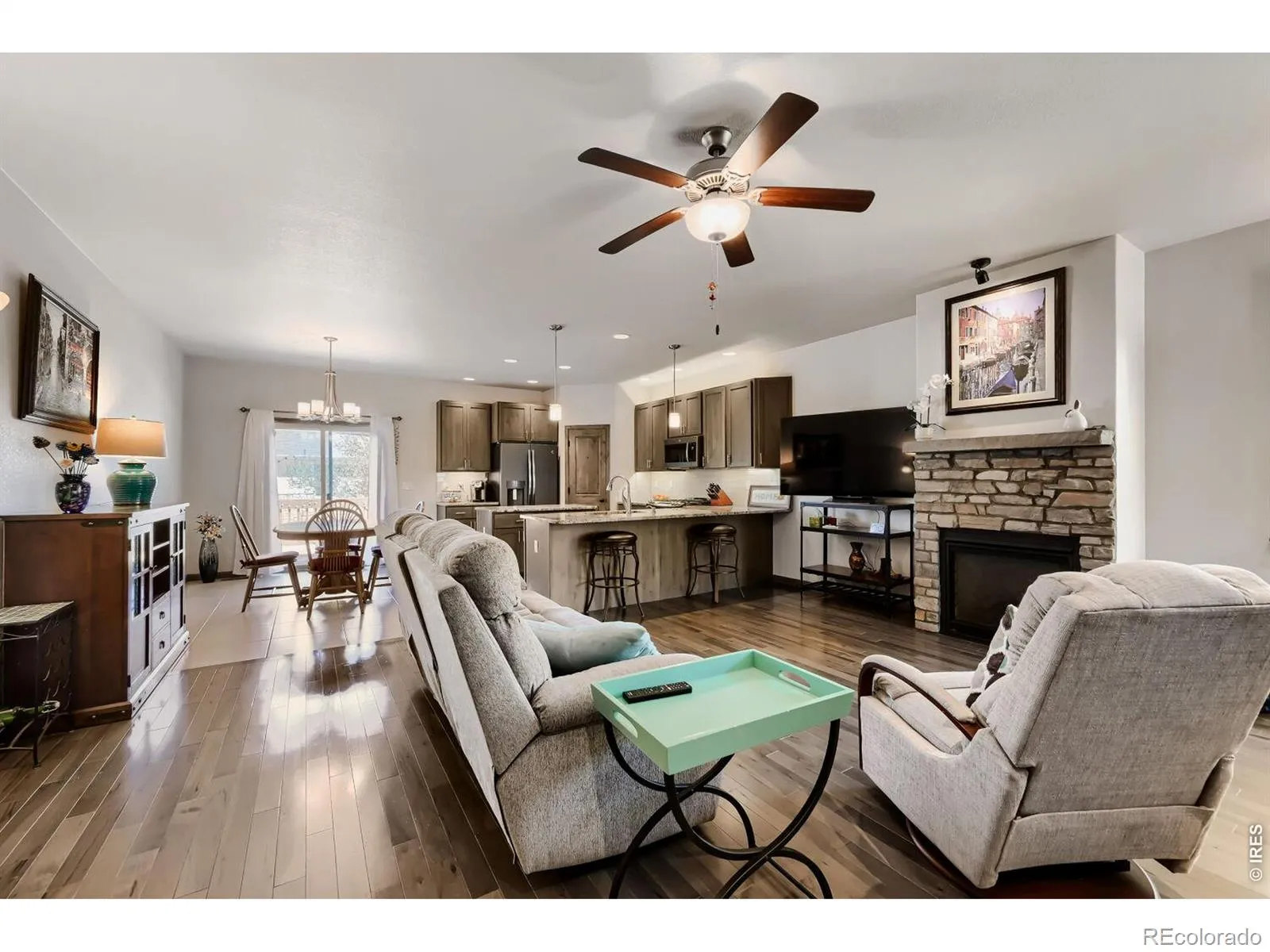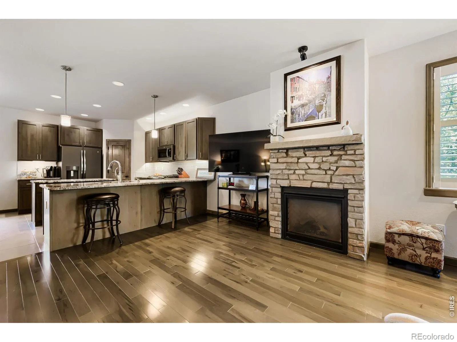 Welcome to this warm & inviting 2 bed, 2 bath duplex in Gateway Park! The open floor plan creates a seamless flow between the kitchen, living, and dining areas. The living room features a cozy fireplace that anchors the space and adds warmth and character. The well appointed kitchen features a gas range, island, pantry with custom shelving, and plenty of cabinet space. Don’t miss the roll out shelves in the lower kitchen cabinets! The backyard is off of the eating space and has a deck, patio, and small grass area. The laundry room features a sink, cabinets, and closet, with easy access to the garage. The primary suite is light and bright. The primary bathroom has 2 sinks and is attached to the walk in closet. The 2nd bedroom can also be used for an office and has a door directly to the 2nd bath. The unfinished basement awaits your personal touch and ideas. Don’t miss this exceptional opportunity to own a home in the sought-after Gateway Park community that rarely makes its way to the market. With a thoughtful layout and quality finishes throughout, this home delivers comfortable, single-level living at its finest.