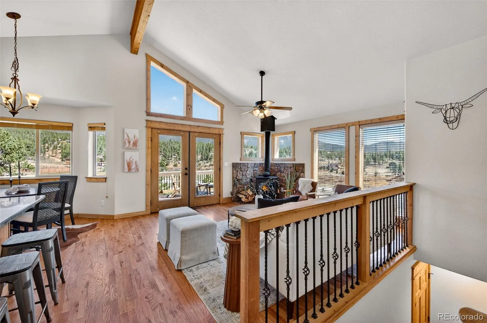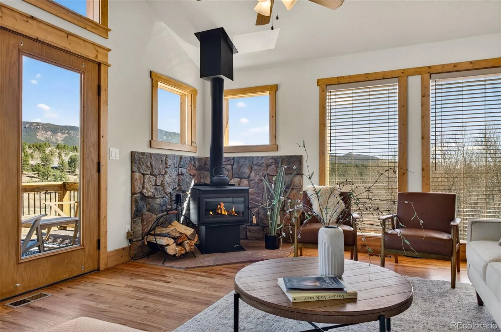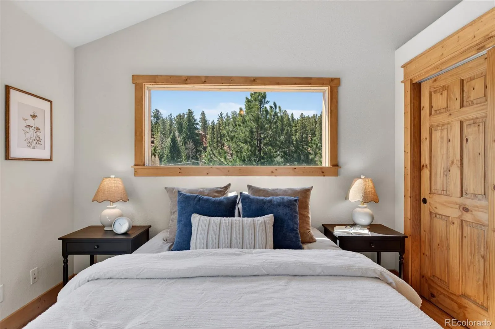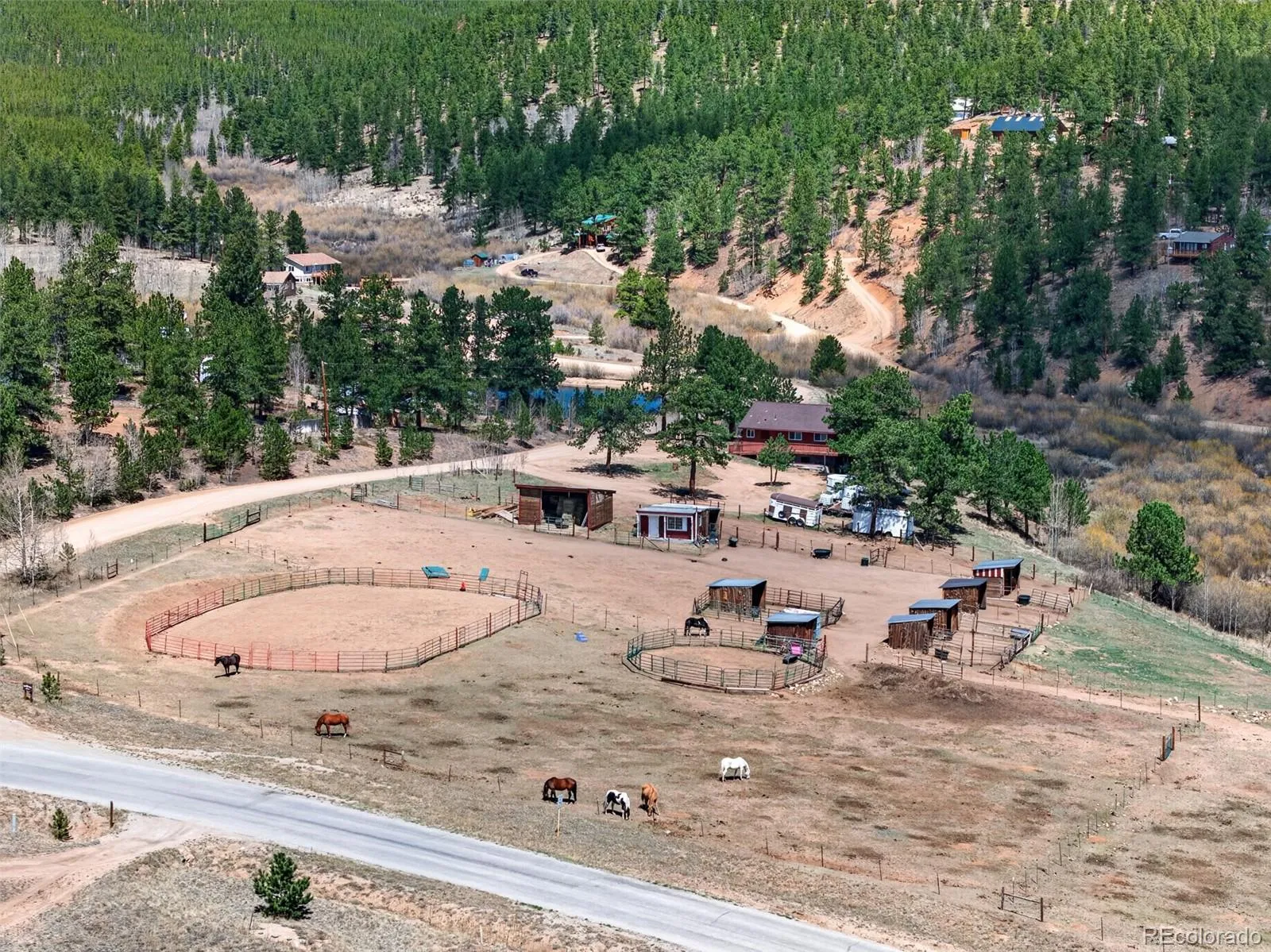 Like new, well-loved and simply spectacular, 1328 Clark Road has it all! Stunning views, privacy, a flat lot, and all the important features of a mountain home. Built in 2018, this cabin includes a standing-seam metal roof, high-producing well, new well draw-back tank, radon mitigation system, new Trex floor decking, and a professionally-cleaned wood-burning stove. Inside, vaulted ceilings and beautiful wood accents compliment the mountain scenery. The kitchen features SS appliances, at-sink water filter and new built-in microwave. Two upstairs bedrooms and a bathroom with dual sinks complete the upper level. Downstairs, the fully finished and permitted basement offers a large great room, third bedroom and luxurious spa bathroom. The newer washer and dryer are located in the utility room. Behind the house you will find a peaceful pine grove and seasonal stream frequented by wildlife. The flat 1-acre lot offers space to build a detached garage. The access road is paved and county-maintained. Across Clark Road sits 20 acres belonging to the Elk Creek Highlands Property Owners Association. Spend a lazy afternoon watching the horses graze or fishing at the stocked pond. Minutes from Pike National Forest and Meridian Campground. Mountain living just doesn’t get any better than this!