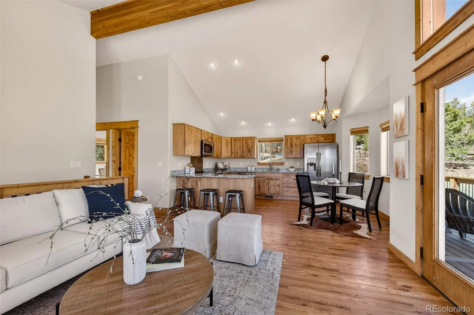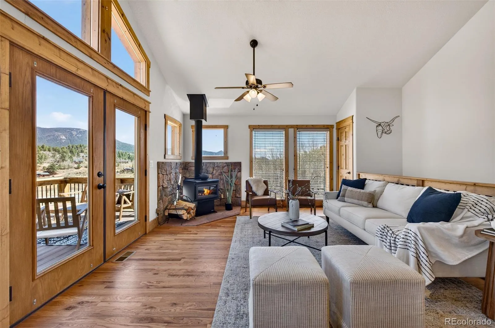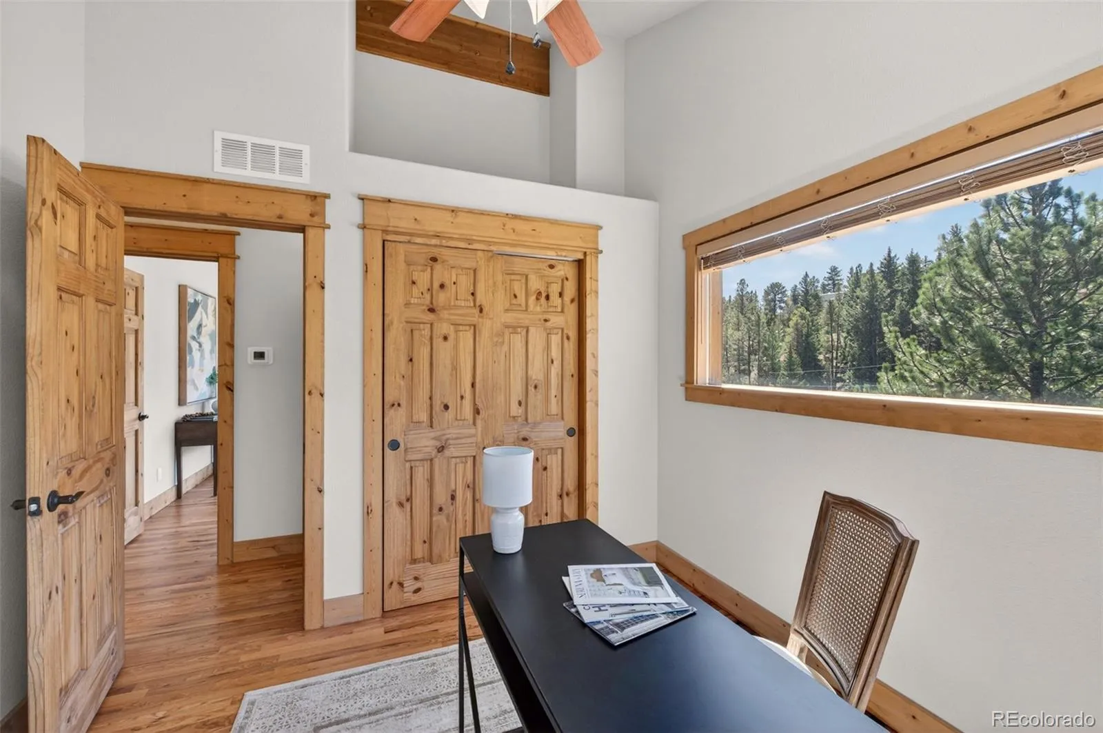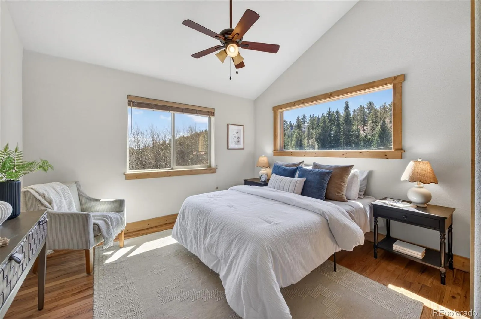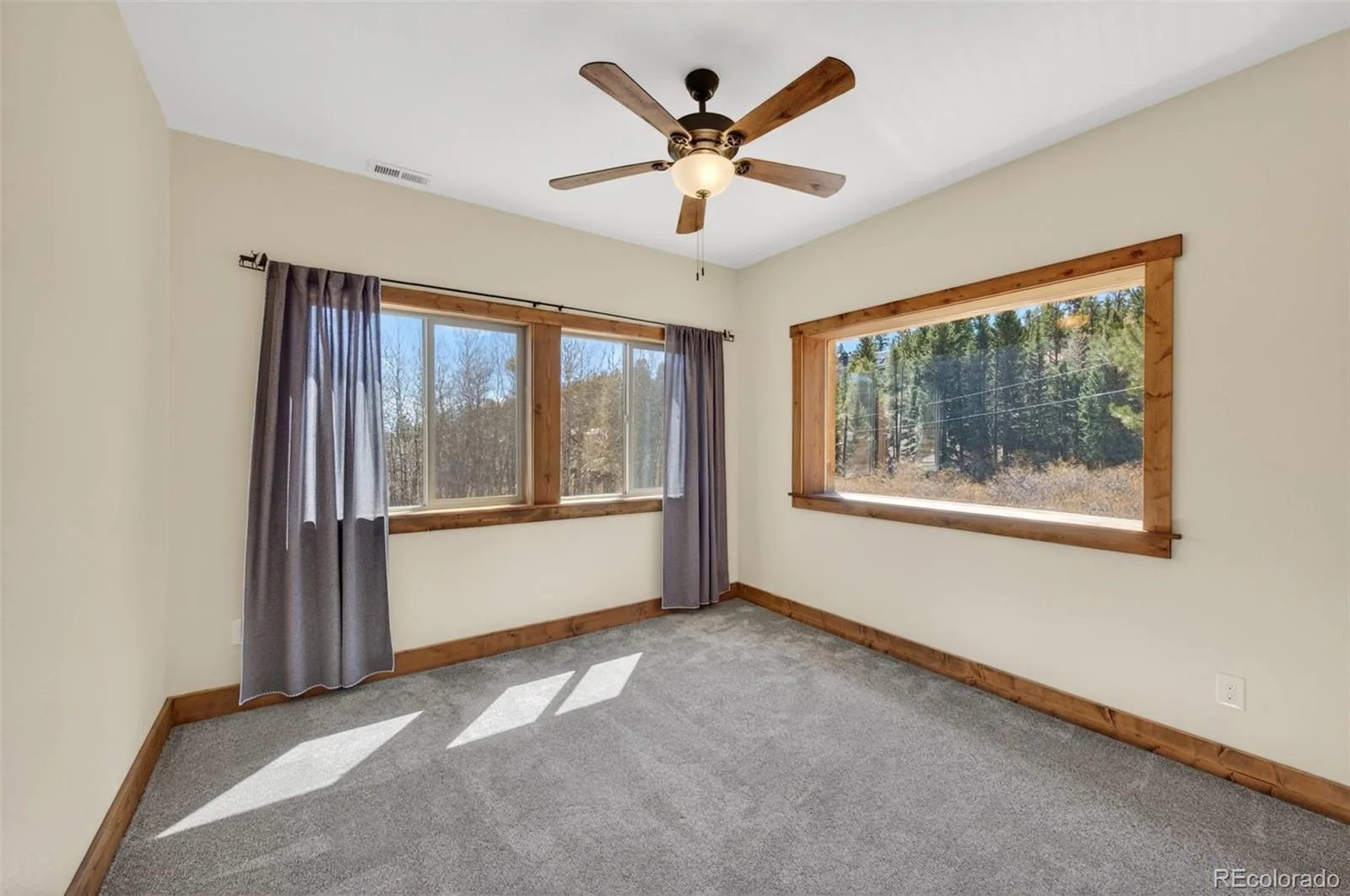 Like new, well-loved and simply spectacular, 1328 Clark Road has it all! Stunning views, privacy, a flat lot, and all the important features of a mountain home. Built in 2018, this cabin includes a standing-seam metal roof, high-producing well, new well draw-back tank, radon mitigation system, new Trex floor decking, and a professionally-cleaned wood-burning stove. Inside, vaulted ceilings and beautiful wood accents compliment the mountain scenery. The kitchen features SS appliances, at-sink water filter and new built-in microwave. Two upstairs bedrooms and a bathroom with dual sinks complete the upper level. Downstairs, the fully finished and permitted basement offers a large great room, third bedroom and luxurious spa bathroom. The newer washer and dryer are located in the utility room. Behind the house you will find a peaceful pine grove and seasonal stream frequented by wildlife. The flat 1-acre lot offers space to build a detached garage. The access road is paved and county-maintained. Across Clark Road sits 20 acres belonging to the Elk Creek Highlands Property Owners Association. Spend a lazy afternoon watching the horses graze or fishing at the stocked pond. Minutes from Pike National Forest and Meridian Campground. Mountain living just doesn’t get any better than this!