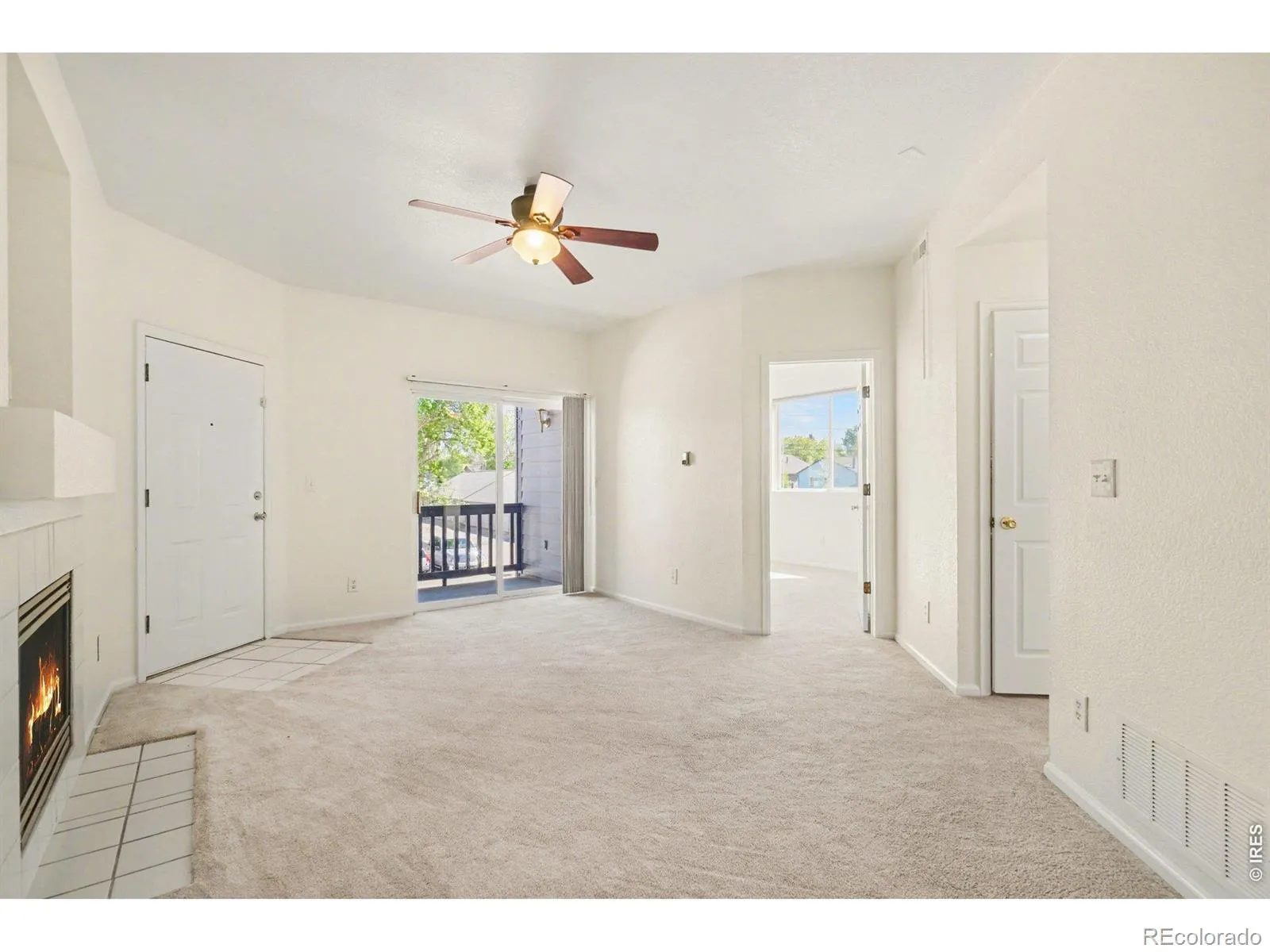 This well-maintained two-bedroom condo offers a clean, functional layout with brand-new paint throughout, making it truly move-in ready. Large windows fill the living space with natural light, while a cozy fireplace adds warmth and character.The floor plan is practical and easy to live in, with comfortable bedrooms and a seamless flow between the living, dining, and kitchen areas. Enjoy your private balcony that also has a storage closet. A one-car detached garage provides convenient parking and additional storage.Located near a park and a grocery store, this home offers everyday convenience in a comfortable setting. Affordable and well-kept, it’s a solid option for buyers looking for a low-maintenance property. Very new roof and newer exterior paint.