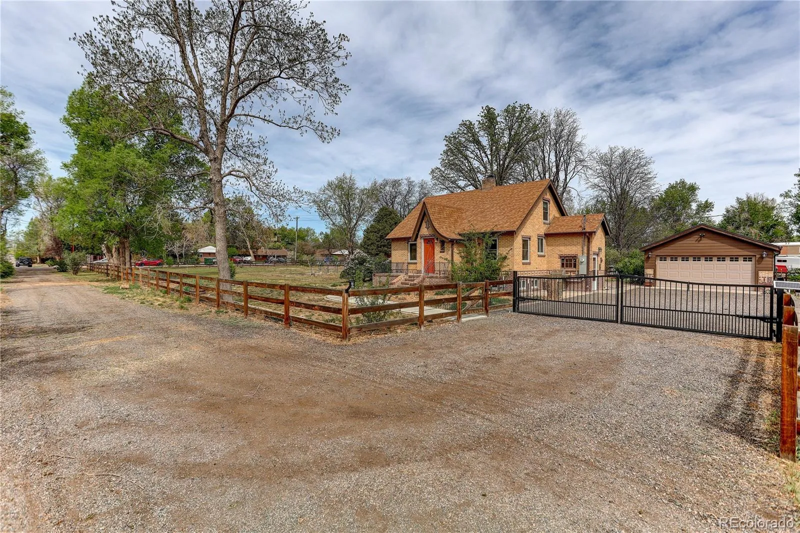 Want to balance a yearning for more space with the convenience of centrally-located living? This unique & beautifully tended property marries the two perfectly. Meticulously upgraded brick Tudor home is situated on 0.83 acres where Lakewood meets Edgewater, just minutes from restaurants, grocery, home improvement stores, & the bustling shops at Belmar. The outdoor space has been meticulously tended to with carefully selected Colorado native plants and low-water species for a stunning yard with low maintenance requirements. The space will only grow more beautiful year after year thanks to the recently planted shade trees and the young fruit trees adding to the established trees on the property. An electronic gate & fully fenced yard keep the property secure. The yard is a city homesteader’s dream w/raised garden beds behind a protective fence, a drip irrigation system & smart sprinklers, state of the art coop for ducks or chickens, and extra acreage for beekeeping or raising livestock like sheep or goats. Host outdoor gatherings under the dreamy pergola or around the fire pit. The newly installed concrete slab & abundant shade make the area outside the kitchen an ideal spot for garden parties. Inside, the updated home maintains its original charm while bringing in contemporary touches of luxury. Upgraded appliances, quartz countertops, A/C, and custom closets blend with the exposed brick, vintage built-ins, and stunning woodburning fireplace, maintaining the cozy effects of the original build. The top level features a large primary bdrm with hardwood floors and a loft with a great view. On the main level, is the charming kitchen, huge pantry, cozy living space, full bath, & another bdrm or office. Plenty of storage space in the detached 2-car garage & the bsmt, or turn the bsmt into an extra bdrm! Full of character & well maintained, this home and property are like none other in the area. Don’t miss your chance to own a slice of heaven in Lakewood!