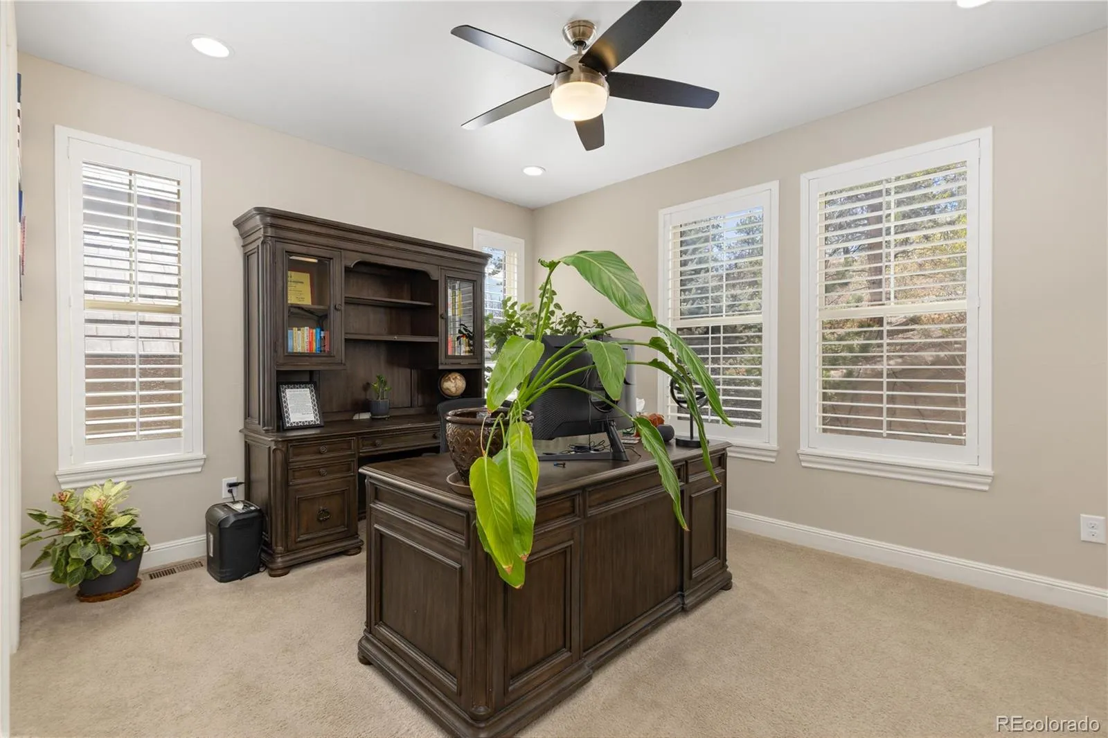 When it’s time to relax, the spacious primary suite is a true retreat, complete with cathedral ceilings, a large walk-in closet, and a beautiful five-piece bath. The fully finished basement adds even more living space to the home, offering a versatile area great for entertaining or a media room. But the real highlight just might be the backyard. It’s a fantastic outdoor living space equipped with an outdoor kitchen, a built-in stone fireplace, a cozy firepit, and a custom rock waterfall. The gentle sound of the water creates a perfectly relaxing atmosphere for enjoying cool Colorado evenings, giving you a private and peaceful retreat right in the heart of a premier gated community.