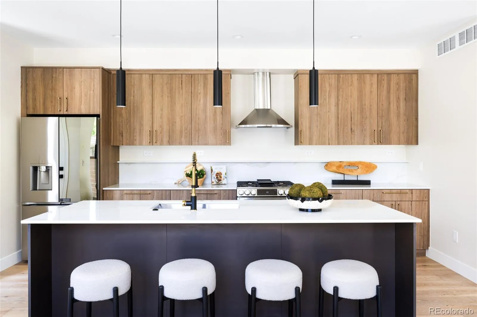 The finished basement has high ceilings, a large recreation room, fourth bedroom, and an additional bathroom. Outdoor living is equally appealing with a private backyard + two patio spaces, plus a two-car garage. Ideally located near some of Denver’s best restaurants, cafes, shopping, markets and more. Easy access to Downtown, DIA and sport venues + arenas. Make this duplex your new home.
