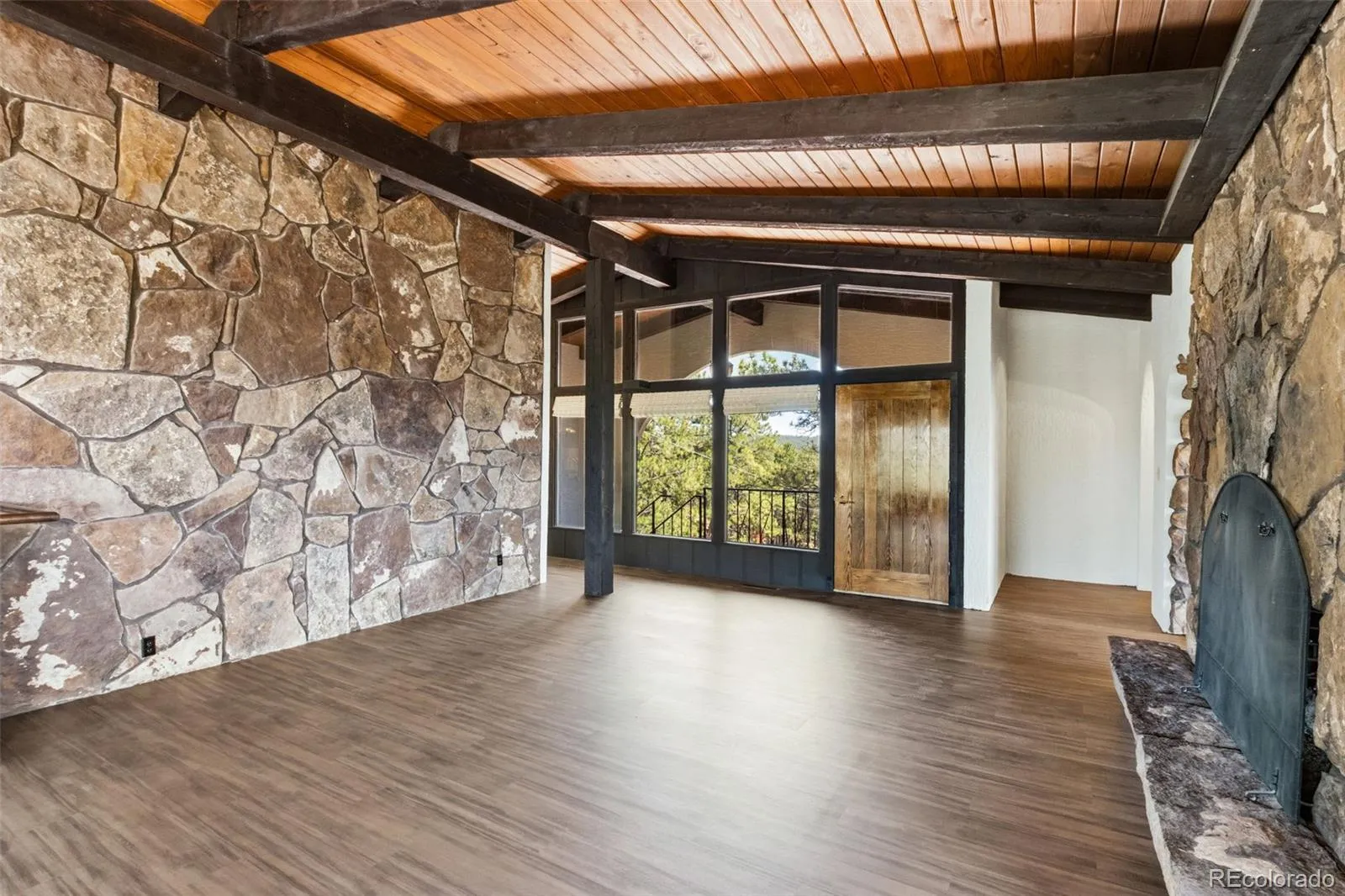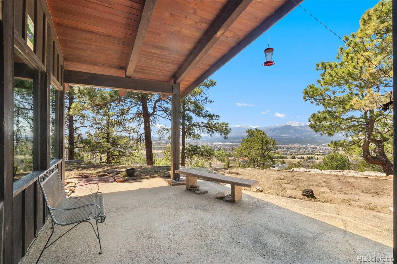 VIEWS, VIEWS, VIEWS! Perched at the top of the world, this stunning property offers spectacular, unobstructed views of Pikes Peak, the Air Force Academy, and the Sangre de Cristo Mountains. The main level opens directly to a huge, covered patio—perfect for relaxing or entertaining—with no rear neighbors and incredible privacy from this elevated hilltop setting. Inside, you’ll find a unique contemporary design featuring wood-beamed vaulted ceilings, dramatic floor-to-ceiling windows and striking stone fireplace and accent walls. Recent updates include New luxury vinyl flooring, refinished hardwoods, and New carpet, blending modern comfort with timeless character. Expansive great room connecting the living, dining, and kitchen areas, two large, cozy family rooms for flexible living and a primary suite with private bath and generous sitting area. The kitchen is equipped with granite countertops, and all appliances are included. Additional highlights include an oversized 2-car garage and bonus lower-level storage space. This home is move-in ready and offers the perfect opportunity to add your personal touch. Prime location with easy access to I-25, Colorado Springs, and Denver.
