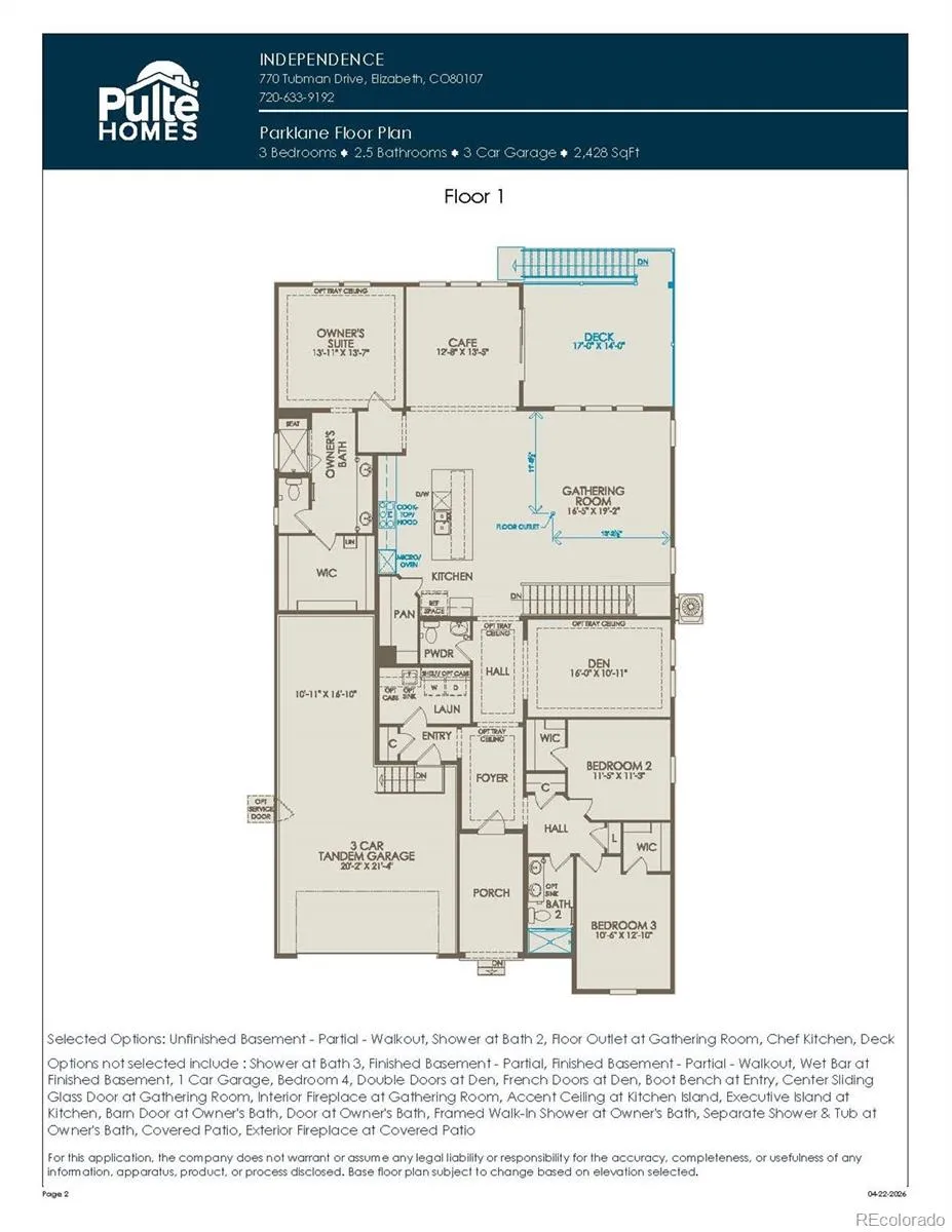 We are proud to present this lovely Pulte Homes ranch style home nestled in the lush rolling hills of Elizabeth in our community, Independence. This is a stunning suburban area with ample green space & amenities. The Parklane floor plan is one of Pulte’s favorite house plans! 3-bedrooms and 2.5-bathroom layout with a practical main floor Den offers the perfect work from home setup or craft space. The spacious kitchen with kitchen island flows perfectly into the Cafe and Gathering Room – great entertaining space! This NEW BUILD home offers an open floor plan with exceptional finishes throughout. The Chef’s Kitchen features beautiful cabinets, Stainless Steel appliances, spacious pantry, and large island. Main floor laundry offers great convenience! The home is complete with a 4-car garage! Front landscaping is included. Enjoy the oversized, private yard with walkout basement! The Unfinished walk-out basement offers a large open storage room and ample space for future finish if desired. Everything is NEW, enjoy our complete builder home warranty that brings your tremendous peace of mind. Live close to shopping, dining, outstanding schools, trails & easy access to Denver/DIA. Community offers a pool, clubhouse, dog park, ponds, trails throughout this thriving part of town. Don’t miss this amazing home in an amazing community! Call or text Kristin at 303.324.0885 or email [email protected] today.