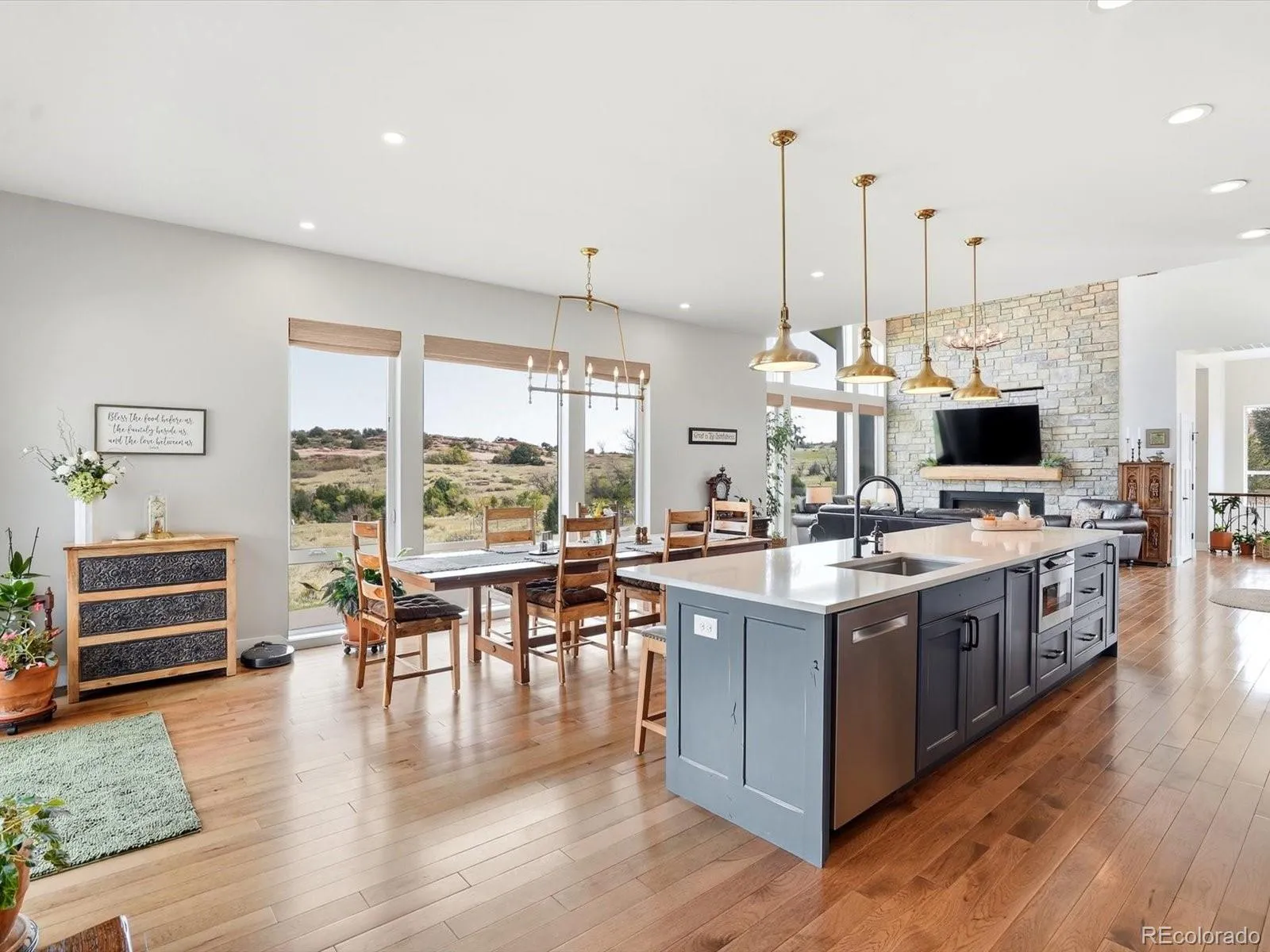 Inside, this beautifully curated home showcases soaring vaulted ceilings, gorgeous hardwood floors throughout the main level, and a stunning great room anchored by a tall stone gas fireplace with panoramic views. The gourmet kitchen features exquisite custom cabinetry, stone countertops, a walk-in pantry, and a butler’s kitchen for added functionality.