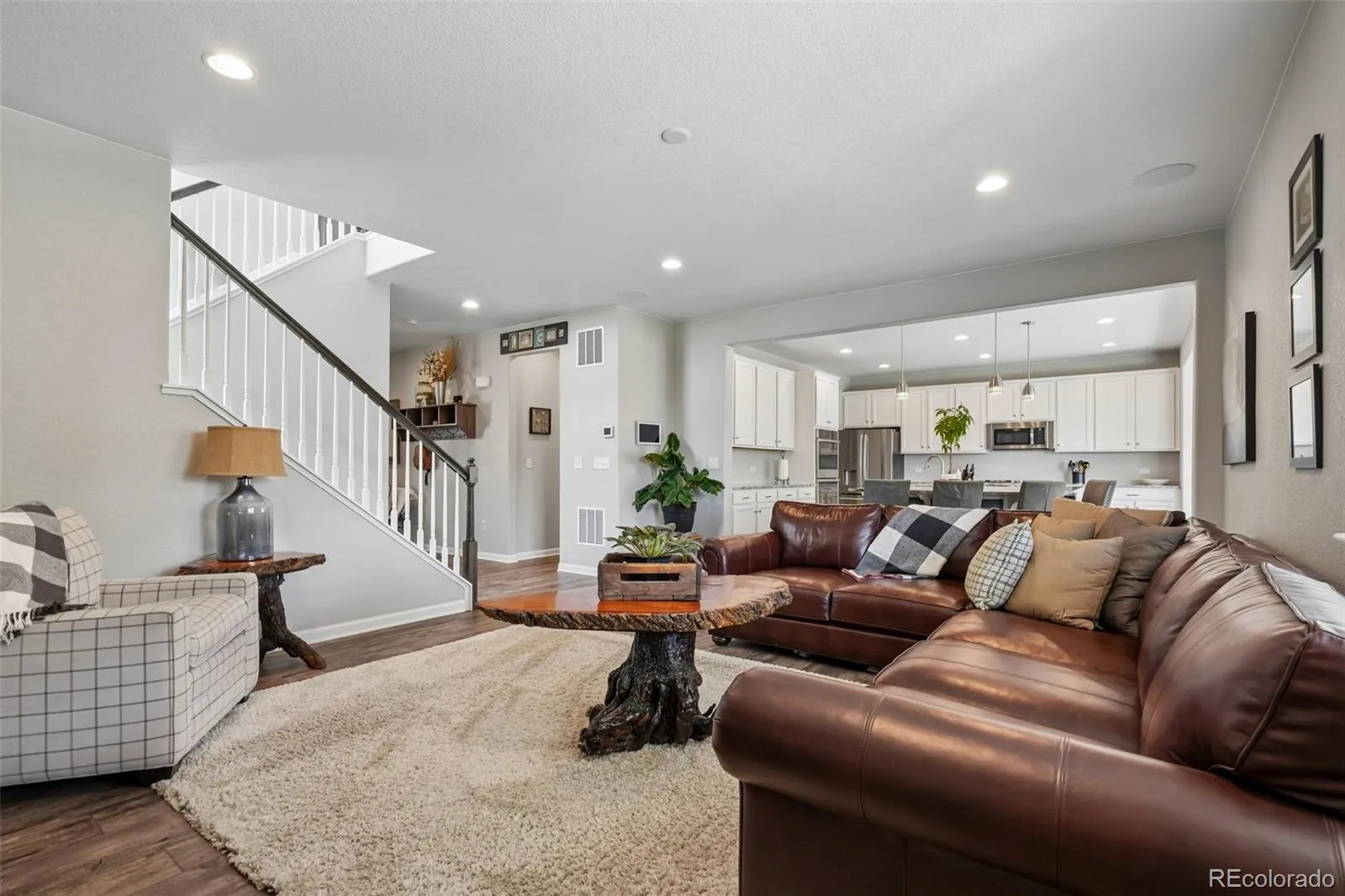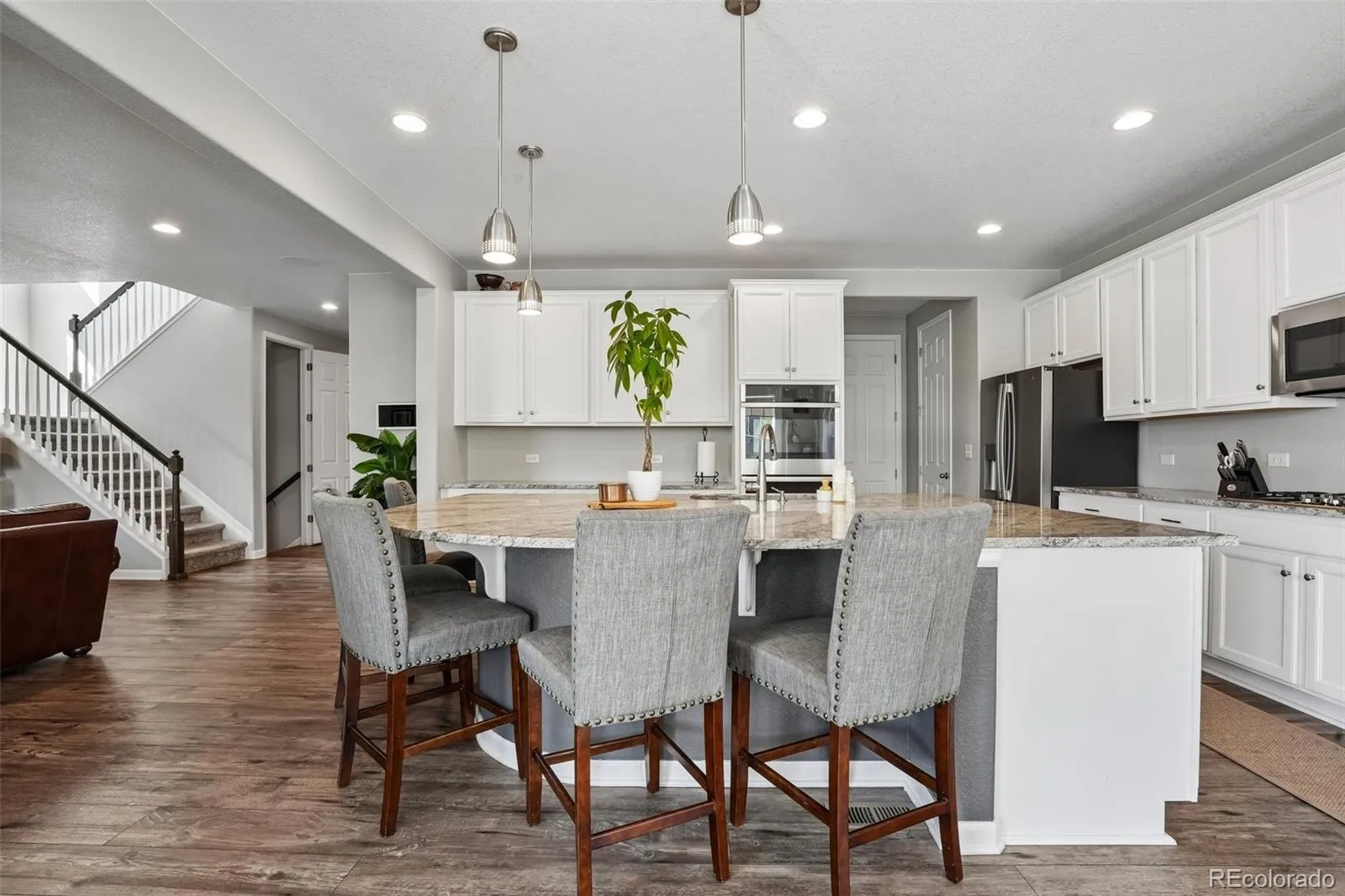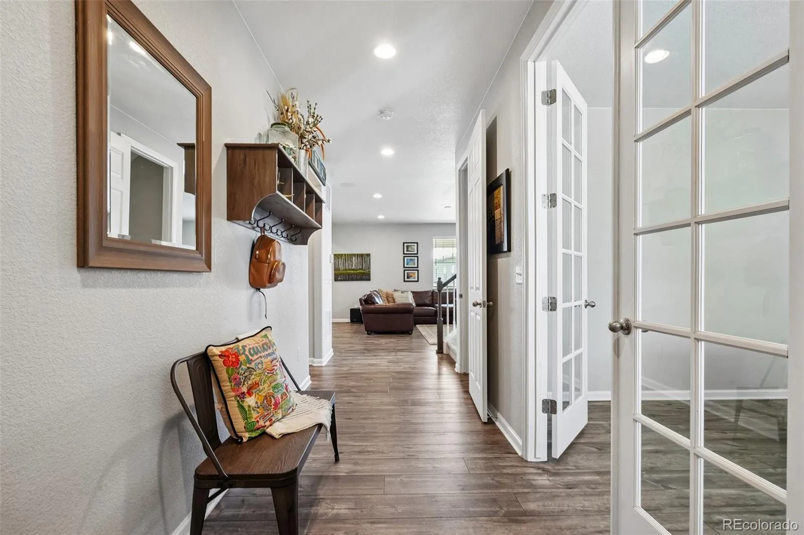 Stunning 5bd/4ba in Barefoot Lakes situated on a premier cul-de-sac lake view lot! Built new in 2019, this home features a modern open floor plan w/sought after designer finishes & hand scraped solid surface floors on main level. Home cooks will love the well appointed kitchen w/white 42″ cabinetry, granite cntrs, double oven/stainless apps, & large center island that opens into spacious extended dining area & great room. Main floor also boasts study w/french doors plenty of closet space to keep life organized. 4bds + loft upstairs including primary suite w/walk in & luxurious spa-like bathroom w/enormous walk in shower. Finished bsmnt adds extra living space w/bedroom, family room, 3/4 bath plus unfinished storage. 3 car attached garage makes parking a breeze! Enjoy relaxing on the expanded covered back patio or soaking in the hot tub (included) while taking in the lake view sunsets! Plenty of room to play or entertain in the private manicured lot siding to walking trails & open space. Quiet country living just minutes to grocery, shopping, dining & close proximity to I-25 makes for easy commute in all directions. Big Sky (Brand new Pre-K – 8th school) opens fall 2026!