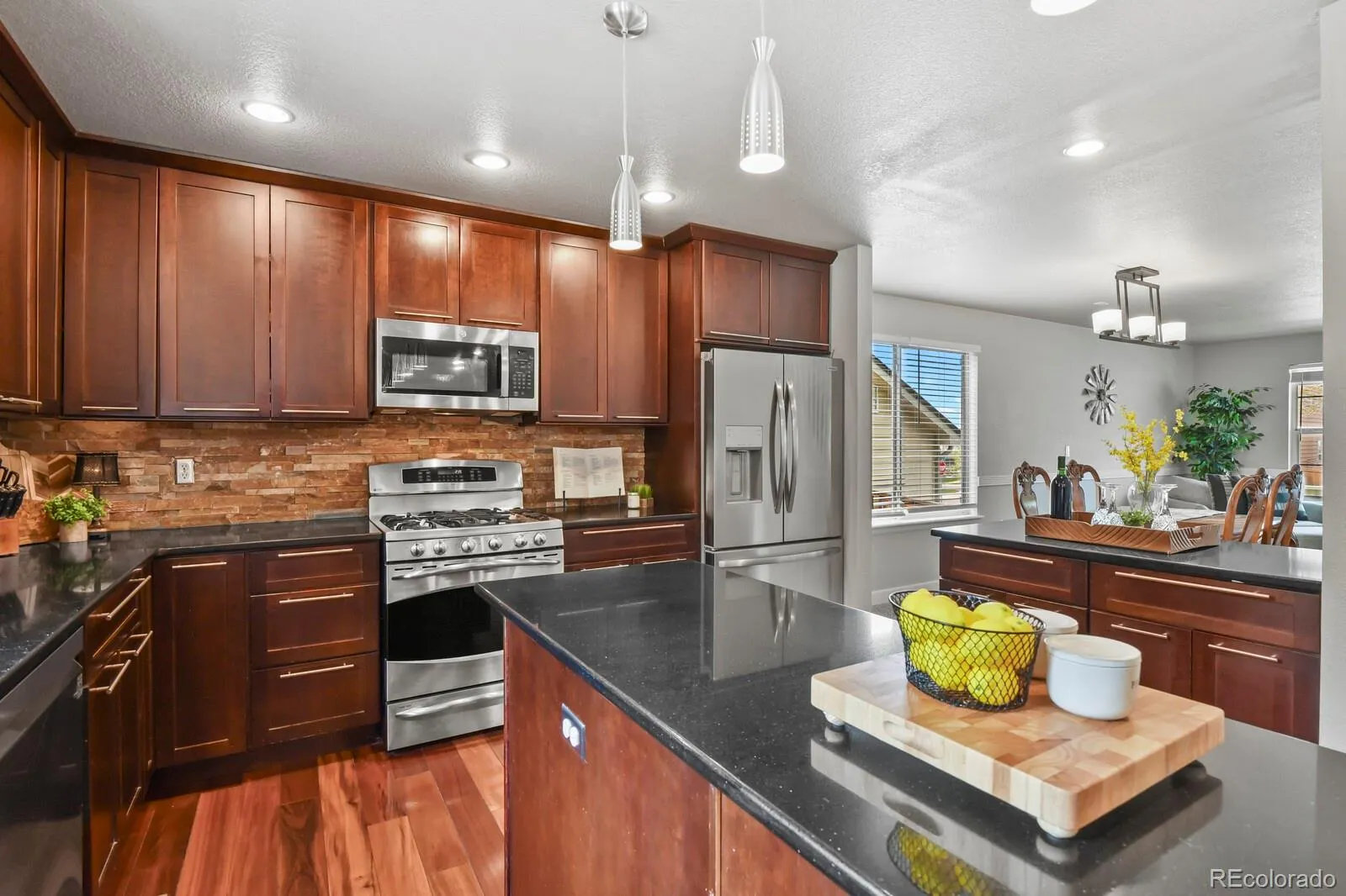 Welcome to this beautiful Highlands Ranch beauty on a quiet, interior cul-de-sac in sought-after Northridge, which is minutes from all the shopping and dining that Highlands Ranch has to offer! Full of abundant natural light, this home has an enviable flow built for entertaining. The kitchen has stainless, granite tops, and TWO islands, one with a beverage fridge. There is a gorgeous custom stone backsplash and a large area for your kitchen table, all of which is open to the inviting, cozy family room, which boasts even more custom stone. Of course there is a lovely half bathroom on the main level for your guests. Upstairs has all the living space you need, including all 4 bedrooms on that level as well as a sunny, peaceful loft area. There is new designer lighting throughout the home, new paint inside and out, and a new furnace. The kitchen’s sliding door opens to a peaceful, private back yard with abundant mature trees. The roomy deck and trellis-covered patio give you ample room for all of your outdoor furniture. There is a full basement, that while mostly unfinished, does have a small full bathroom for functionality until you decide to finish it fully to your own tastes. Highlands Ranch Northridge residents have access to 4 different recreation centers, with indoor and outdoor pools, clubhouses, fitness centers, tennis and pickleball courts, parks, and trails. Welcome home…
