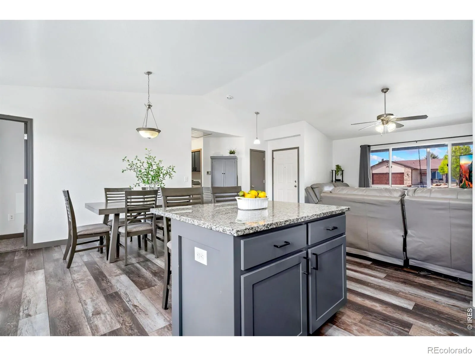 Major updates with modern finishes, a clean open layout and a backyard that’s ready to use from day one come together in this move-in ready ranch set on a quiet cul-de-sac.The main living area features vaulted ceilings and great natural light, anchored by a fireplace and flowing directly into the kitchen and dining area. The kitchen has been renovated with new cabinet fronts and drawers, granite countertops, undermount sinks, updated fixtures, a modern backsplash and a dedicated filtered water faucet. A large island adds seating and function, making the space easy to live in and gather.The primary suite features a remodeled bathroom with a custom tile shower, full glass enclosure and dual shower heads. The hallway bathroom has also been refreshed with granite countertops, sink, vanity drawers and fixtures. Two additional bedrooms are located on the main level, with a fourth non-conforming bedroom in the unfinished basement offering flexibility for your future expansion. Other improvements completed in 2024 include LVP flooring, carpet, baseboards and interior paint, creating a consistent feel throughout. Outside, enjoy a well-maintained fenced backyard with custom garden boxes and refreshed landscaping, perfect for relaxing or entertaining, plus nearby open space and a park just minutes away featuring a playground, splash pad, batting cages and a dog park. Schedule your private showing today!