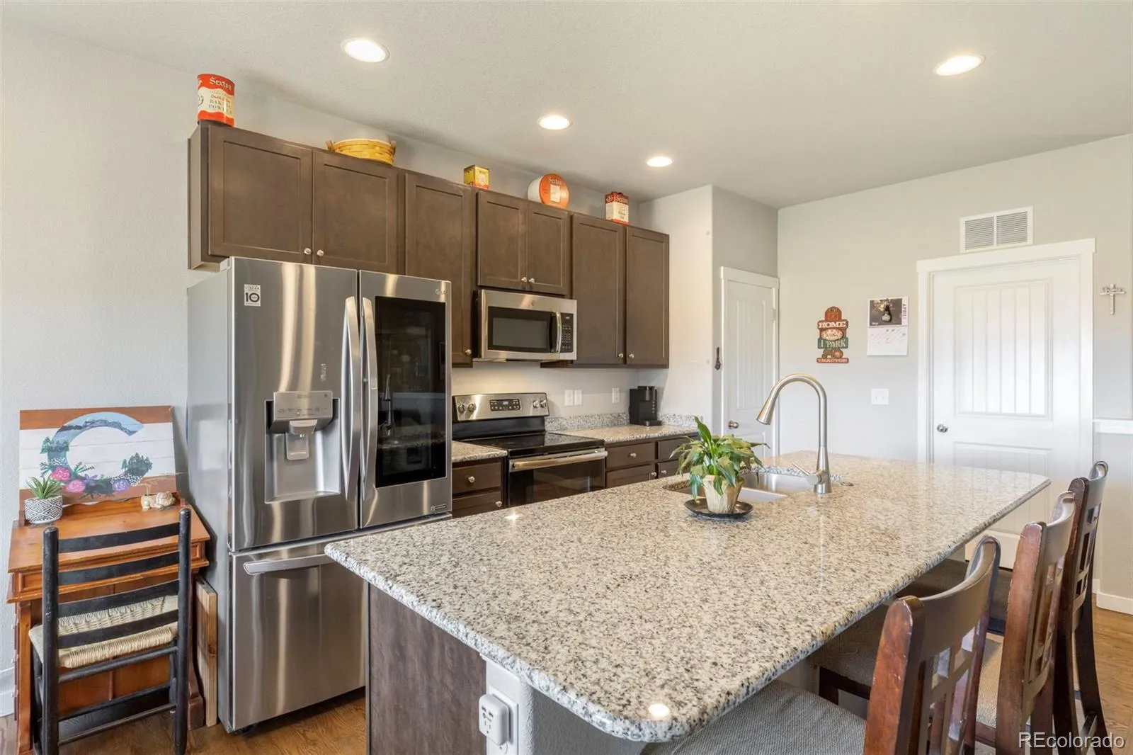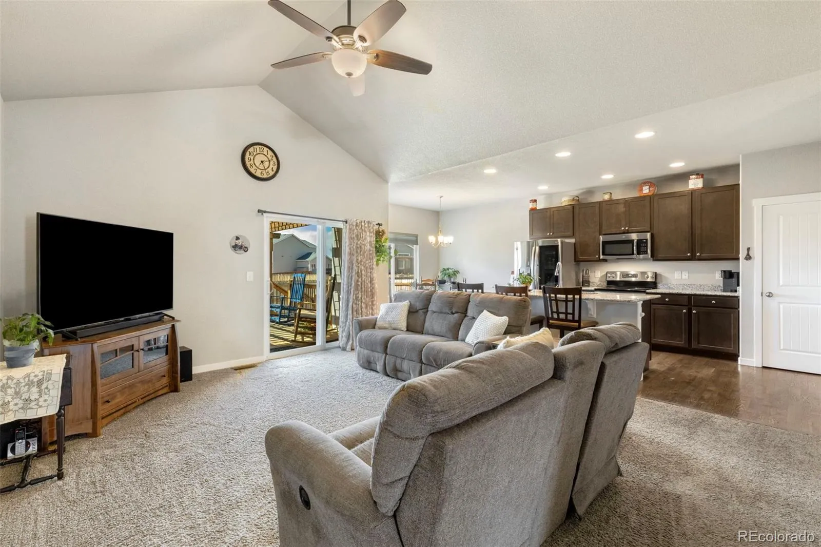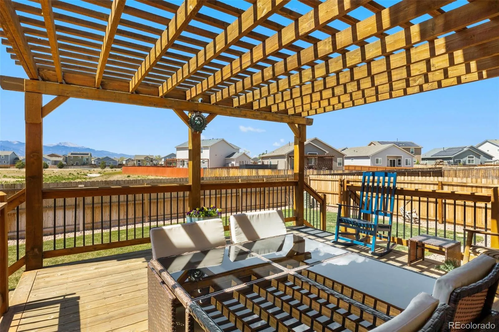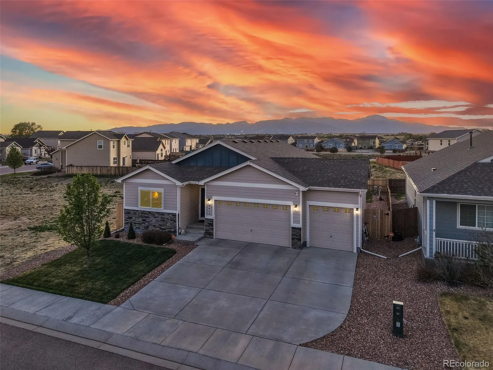 Welcome to this beautiful ranch-style home in sought-after Lorson Ranch! This meticulously cared-for home backs to open space, providing breathtaking views of Pikes Peak and the Front Range. Step inside to the open concept living room, kitchen, and dining area. A vaulted ceiling and large windows provide lots of natural light and stunning mountain views. The well-equipped kitchen features a spacious granite island with breakfast bar, 42” cabinets, stainless steel appliances, and hardwood floors. Walk-out to the wood deck with pergola and enjoy gorgeous mountain sunsets every night! The fully fenced yard is perfect for quiet evenings or entertaining with a view. Retreat to the primary suite, featuring more mountain views, a 5-piece ensuite bath, and huge walk-in closet. The spacious laundry room features ceramic tile and convenient access to the 3-car garage. Another bedroom and full bathroom round out the main level. Head downstairs to relax or entertain in the family room. Two more bedrooms plus a full bathroom and large storage area provide flexibility for guests or family, a home office, craft space and more. A new furnace gives peace of mind. Located just minutes from Fort Carson, Peterson, and Schriever, this community also provides easy access to outdoor recreation, shopping, and schools. Don’t miss the chance to make this gorgeous home yours- schedule your showing today!