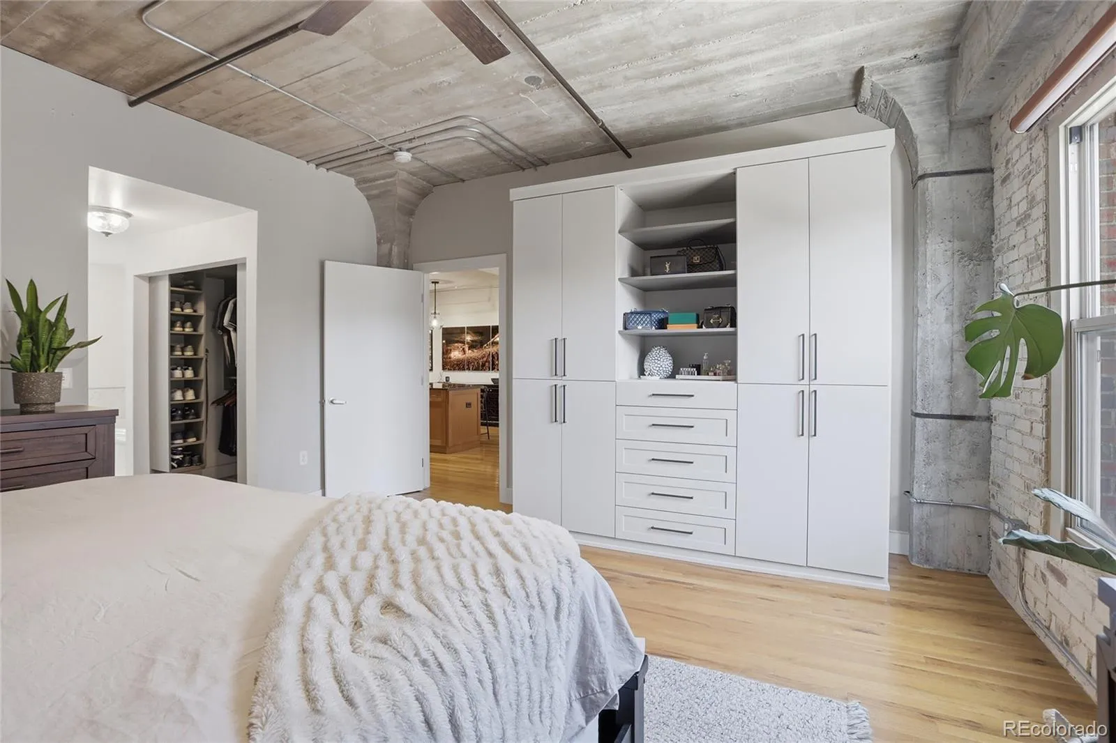 Step into elevated city living with this stunning 2 bed, 2 bath, luxury loft in the heart of Downtown Denver. Blending modern sophistication with industrial charm, this home features exposed brick and concrete, custom accent walls with built ins, and hardwood flooring throughout. The open layout is filled with natural light, creating a warm environment perfect for entertaining and relaxing. The spacious kitchen is equipped with high end stainless steel appliances, sleek opaque cabinetry, granite counter tops, and a large kitchen island, ideal for casual dining or hosting friends. The primary suite offers a serene retreat with a gorgeous 5-piece bath with heated tile flooring and a steam shower. The closet features custom California Closets built-ins for your storage needs. The included murphy bed in bedroom 2 allows for a quick change between a high-powered office and spacious guest suite in just minutes. Step outside to the rooftop deck for beautiful city views, or enjoy the buildings unique atrium for a peaceful escape. There are two deeded parking spots and a personal storage unit in the heated garage. The location is unbeatable in Denver – within walking distance of Ball Arena, Coors Field, and Empower Stadium, and only a block to Denver’s best dining and nightlife in both directions. In this rare cul de sac of Denver, enjoy quick access to the Cherry Creek trail to hike or bike or easy access to popular areas like Union Station, 16th Street Mall, Larimer Square, Dairy Block, and Commons Park. The upcoming River Mile development, with the first phase adjacent to Ball Arena, will bring much higher prices to this section of downtown soon! Get in now before the jump. Whether you’re looking for a blue-chip location for your primary residence or a high-performing addition to your investment portfolio, this is what you’ve been waiting for!