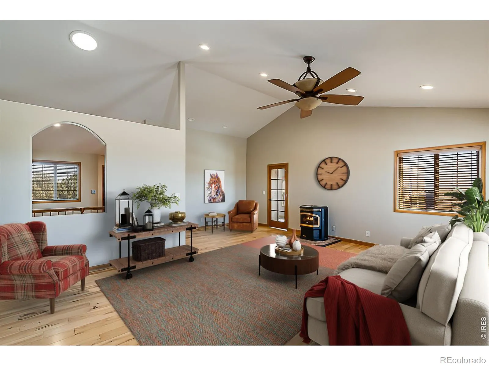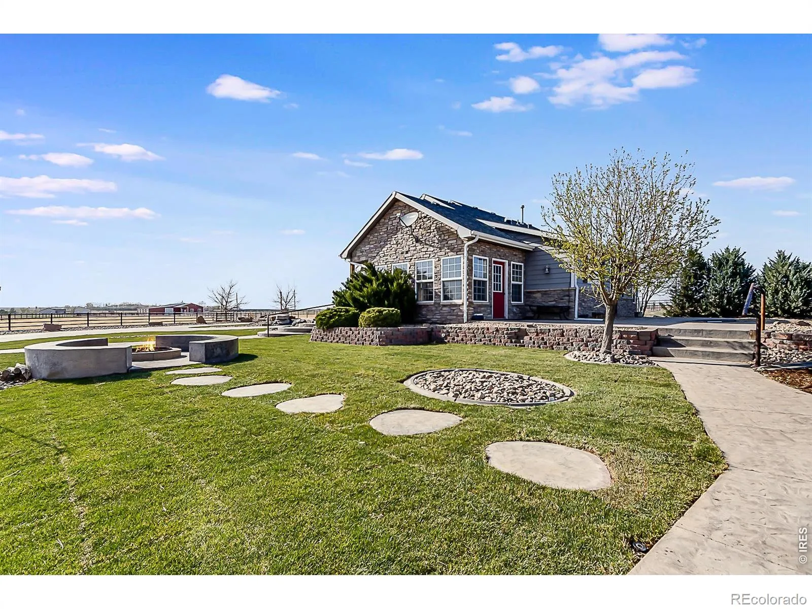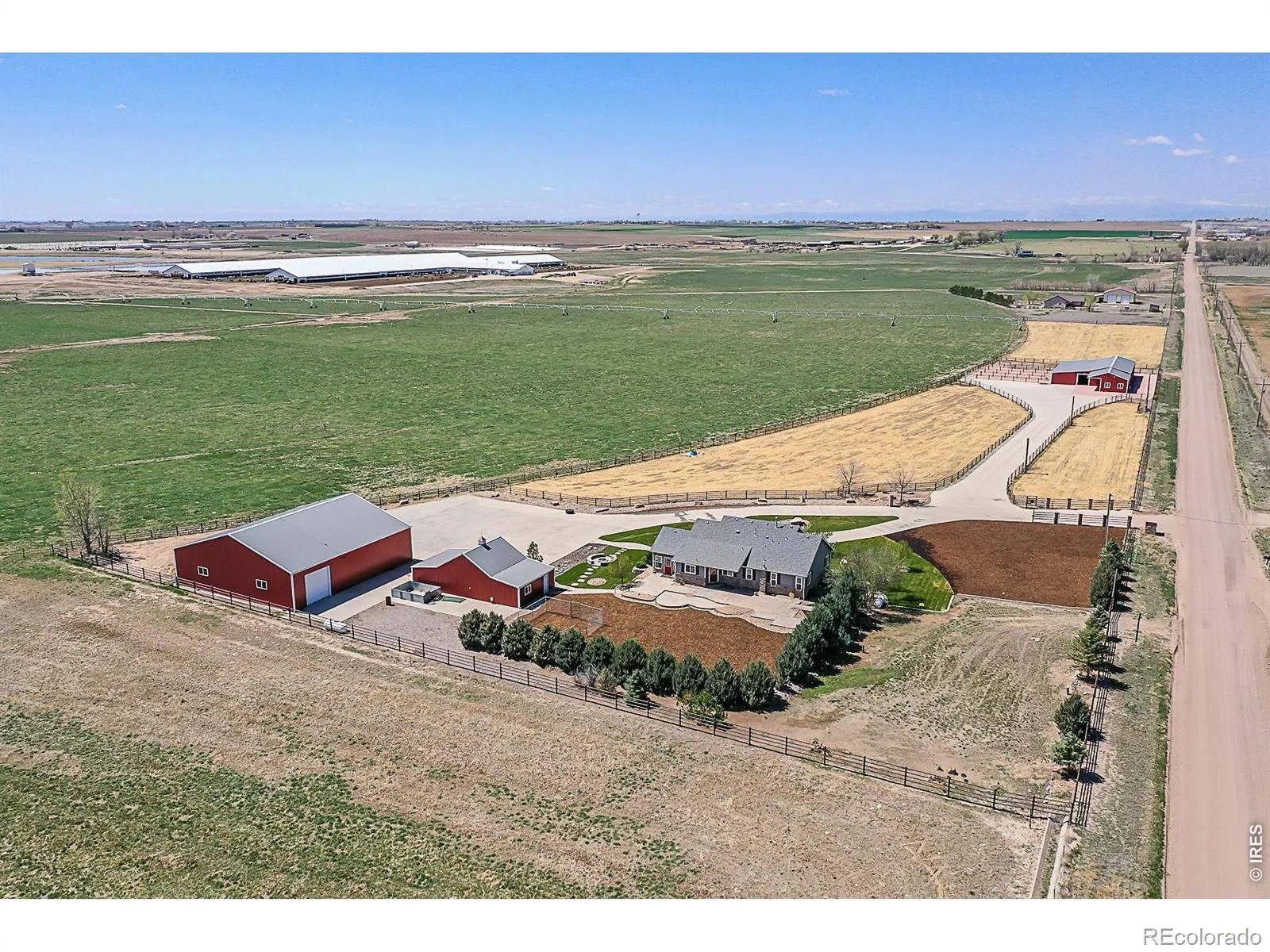 With over $100,000 in recent improvements, 29720 County Road 78 is a rare 4.4-acre estate offering upgraded country living with exceptional versatility for livestock and horses. Originally purchased for $1,164,000, the seller is offering this extensively upgraded property at a loss-creating a unique opportunity to capture significant built-in value.The ranch-style home features five bedrooms, including two spacious primary suites on separate levels, three updated bathrooms, and a luxurious stone walk-in shower.The main floor showcases pine hardwood flooring throughout the living and dining areas, anchored by a pellet stove. A tiled sunroom/mudroom just off the kitchen opens to both the east-facing patio and the west-facing front porch with mountain views and stunning sunsets. Main-floor laundry is complemented by an oversized laundry/utility room in the finished basement, which also features new luxury vinyl plank flooring, a second pellet stove, and two additional bedrooms, one with a private en suite.A converted 3,800-sq-ft barn now serves as a multi-use shop with a bathroom and a heated, insulated 58′ x 23′ bay, ideal for RV or trailer storage or workspace. A 1,152-sq-ft detached garage and additional storage building are connected by a fully concreted driveway.For professional cattle operations or horse enthusiasts, the 5,440-sq-ft cattle barn includes a wide rubber-matted aisle, wash rack, vetting chute, cooler room, blower room, and a climate-controlled office. Pasture to west of cattle barn may be able to have use argeement w/ dairy. Four oversized pipe-panel stalls are designed for prepping or boarding livestock, with a layout equally suited for horses.The entire property is enclosed with clean pipe fencing (no wire) and secured by a private automated gate with two additional access points. Additional features include two septic systems, two backup generators, and two reclaimed, reseeded pastures with functional cross-fencing. Property is occupied.