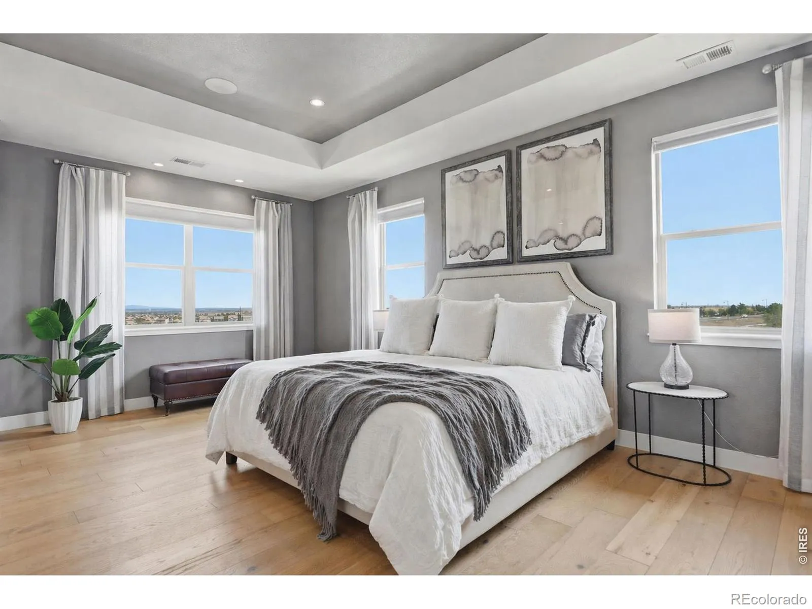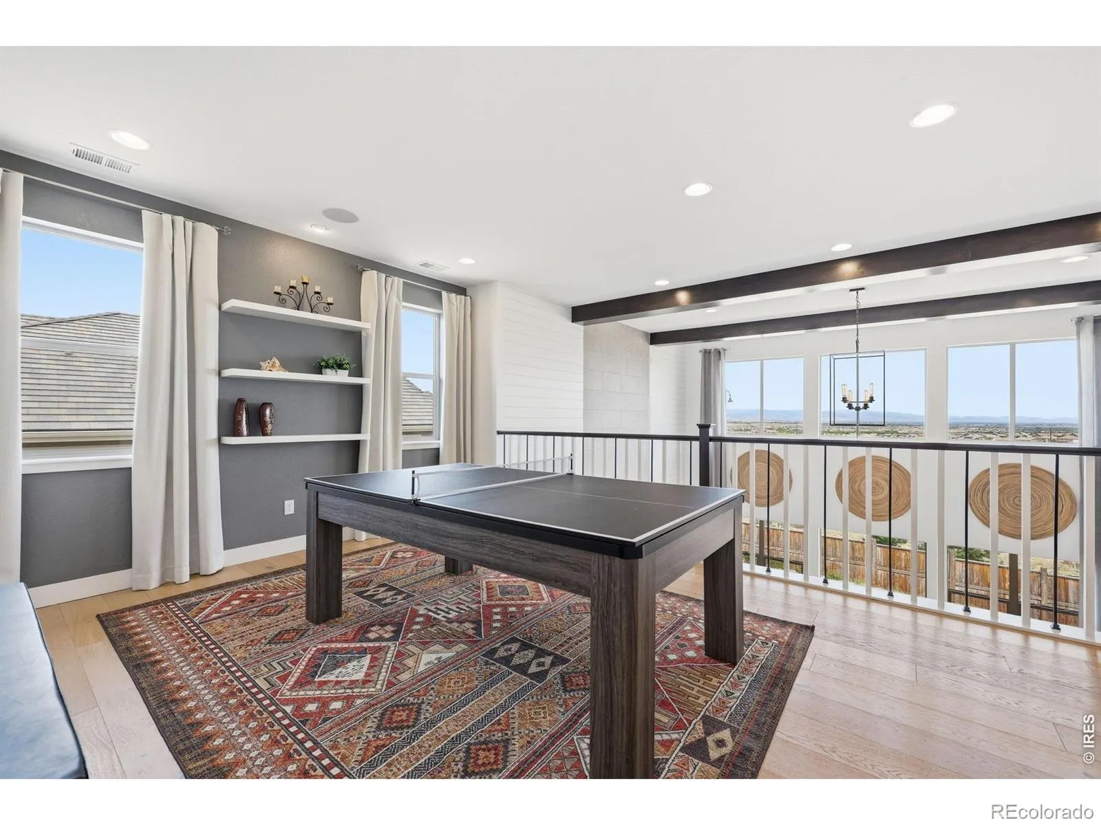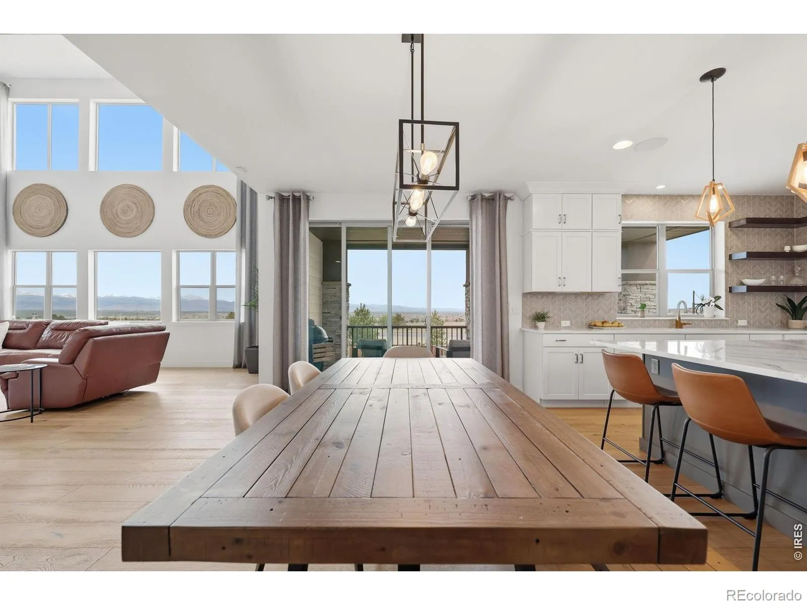 Where luxury meets nature-this former builder’s model is ideally positioned on one of the largest premium corner lots, capturing sweeping views of Longs Peak, the Flatirons, and Sienna Reservoir. Every inch of this property showcases thoughtful craftsmanship, premium finishes, & intentional design that celebrates Colorado’s natural splendor. Step into a soaring entryway that immediately impresses, leading into a sun-drenched great room with massive windows framing postcard-worthy vistas. The chef’s kitchen is an entertainer’s dream, anchored by a generous island & equipped with Sub-Zero & Wolf appliances, a beverage fridge, & a walk-in pantry. Wide-plank wood floors flow throughout the main level, where you’ll also find a private office with built-ins & open views, & a main-level bedroom with an en-suite bath & walk-in closet. Retreat to the secluded primary suite upstairs-your personal sanctuary with a cozy gas fireplace, private terrace, & stunning mountain & water views. A spa-worthy five-piece bath features a soaking tub, oversized shower, & a walk-in closet. Three additional upstairs bedrooms & a spacious loft offer flexibility for family or guests. The lower level is designed for relaxation & entertainment, featuring a large rec room with a wet bar & fridge, a guest bedroom, & full bath. Modern conveniences include a wired security system, Tesla charger, solar-ready wiring, & epoxy-coated 3-car garage. Step outside to a peaceful covered deck & a backyard that opens to endless skies, walking trails, & the ever-changing natural beauty of Colorado. Watch hot air balloons in the fall, fireworks on holidays, & moonlight dance across the lake-all from the comfort of home. Residents enjoy access to the Anthem Rec Center, nearby charter schools, & effortless proximity to Boulder, Denver, & DIA. This is more than a home-it’s a front-row seat to Colorado’s most inspiring views.