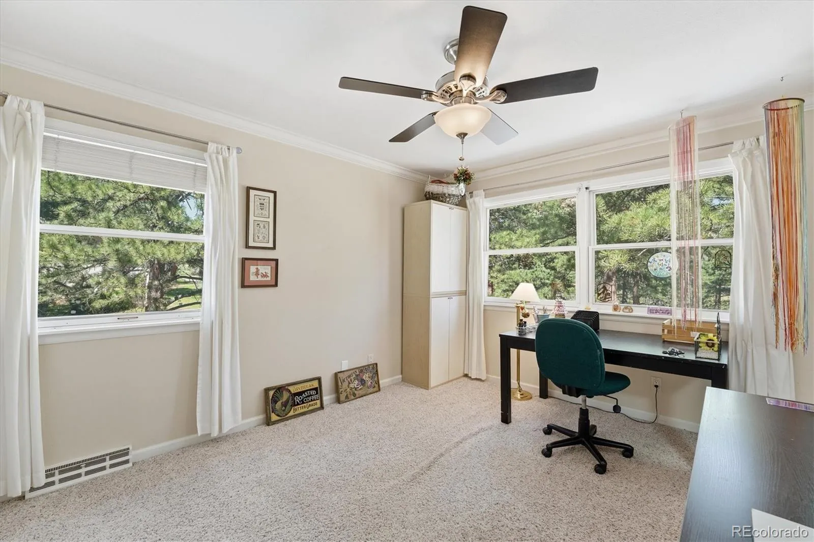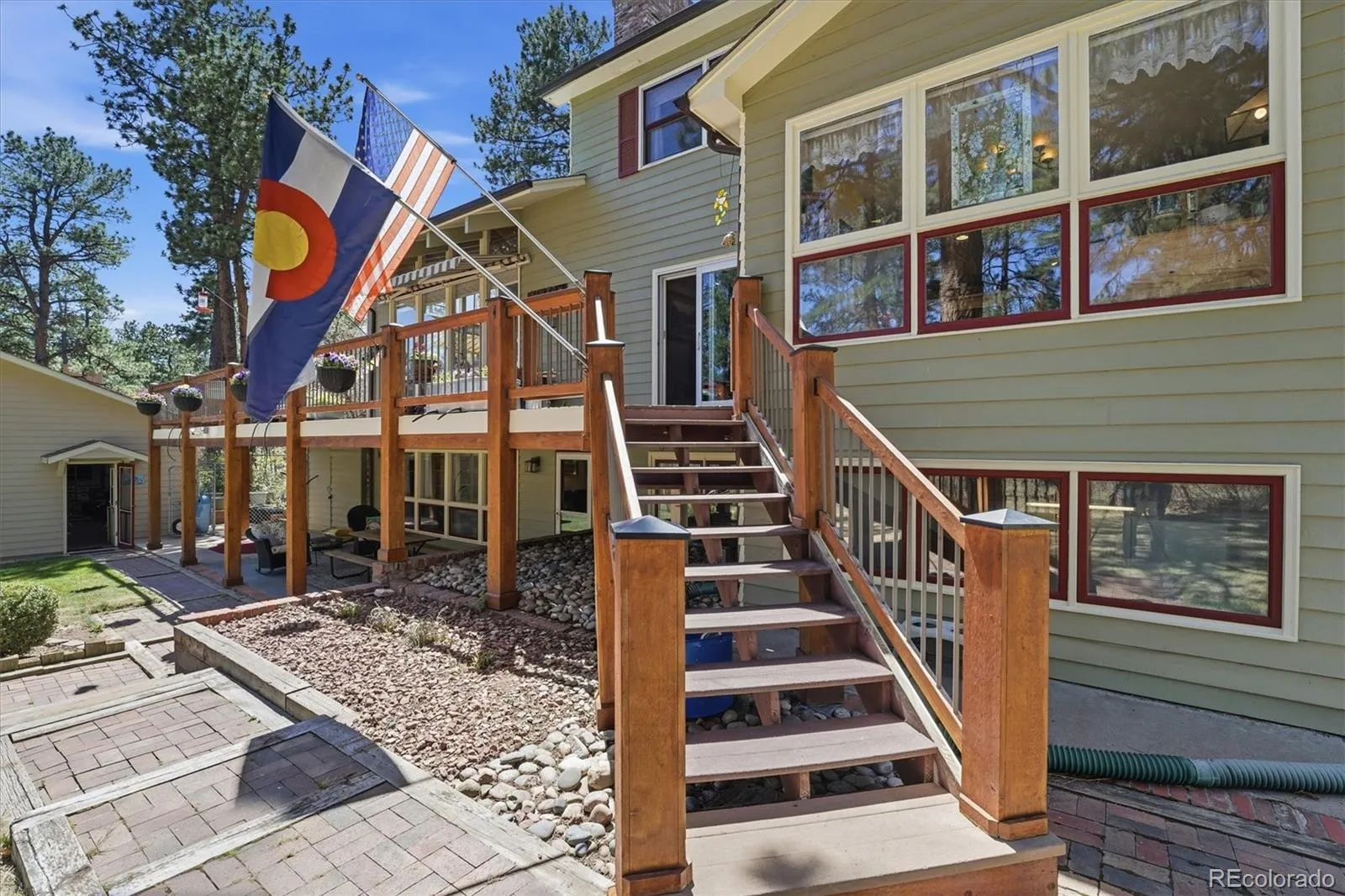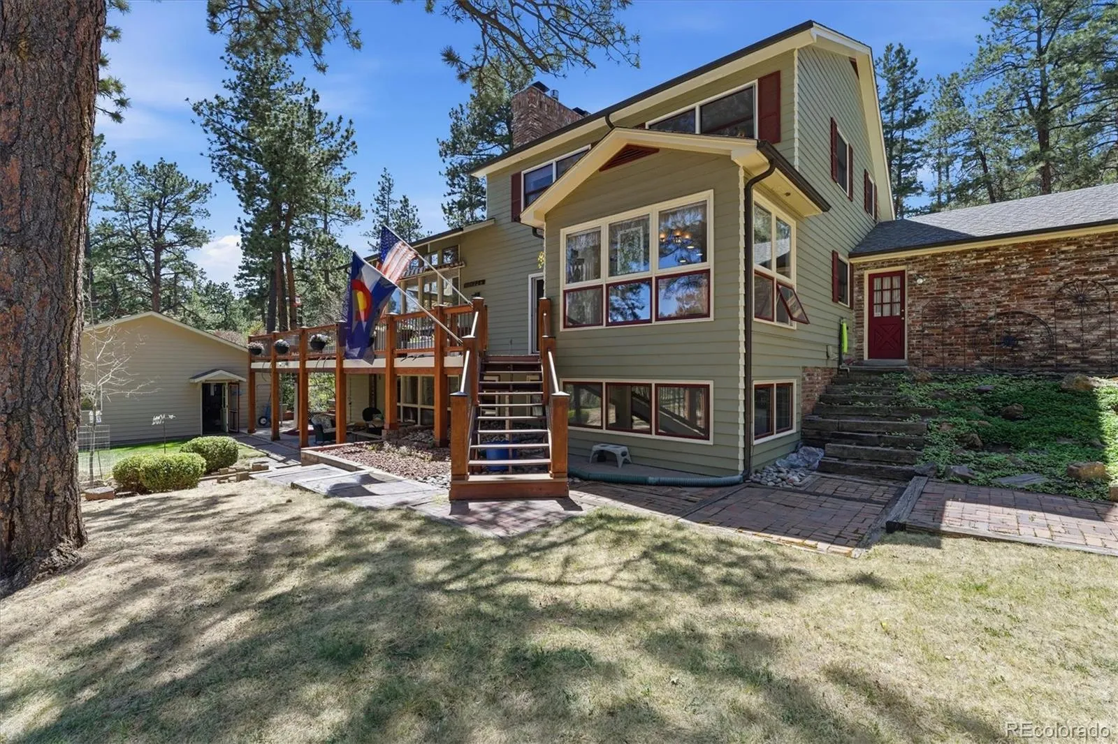 The back of the home features expansive windows and a generous oversized wraparound deck that will invite you to enjoy morning coffee, sunset dinners, effortless entertaining, and stargazing under wide Colorado skies.