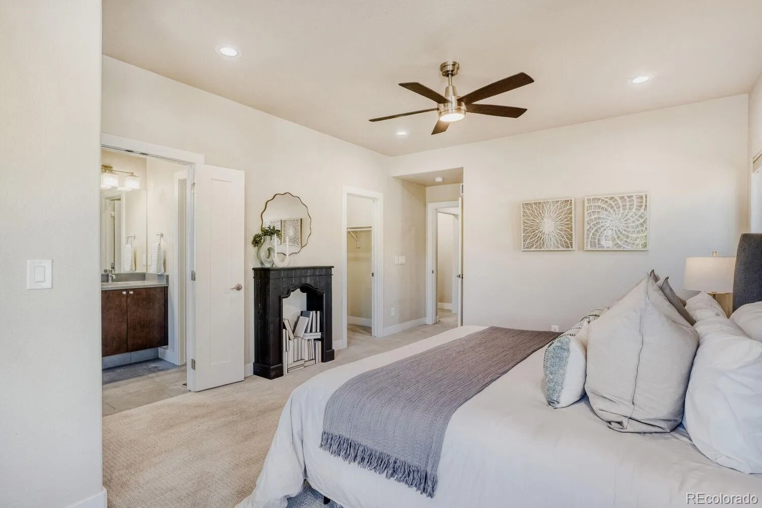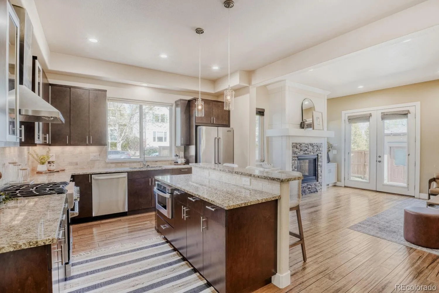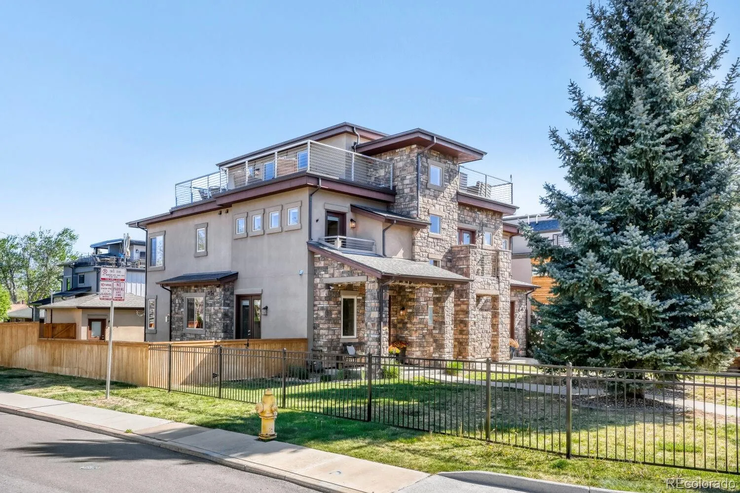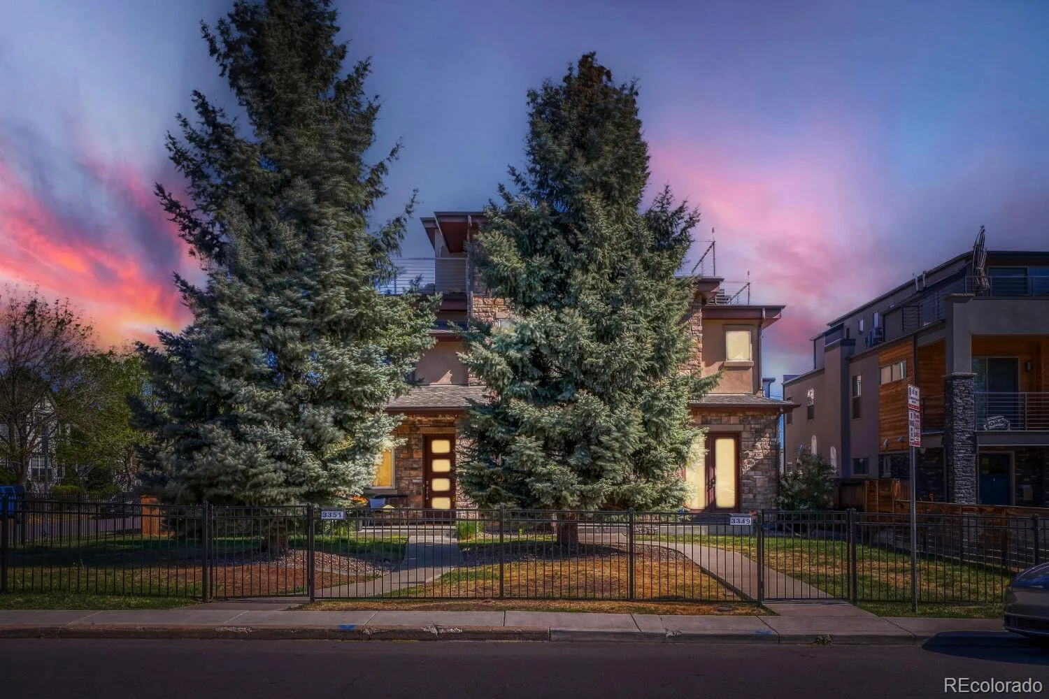 Stunning mountain contemporary ideally positioned on a premium corner lot in the highly sought-after Sloan’s Lake neighborhood. Directly across from Hallack Park and just a short stroll to Sloan’s Lake, this home offers an unbeatable blend of location, privacy, and lifestyle—minutes from Downtown Denver while surrounded by open space. This residence truly lives like a single-family home, with no neighboring unit to one side and a coveted southwest orientation that floods the home with natural light throughout the day—an exceptional advantage that sets it apart. Thoughtfully designed with high-end finishes throughout, including a Viking appliance package, custom cabinetry, granite countertops, hardwood floors, Pella windows, and a striking custom fireplace. The open-concept main level is ideal for both everyday living and entertaining. Upstairs, the second level features a spacious primary suite and guest suite, complete with a private balcony overlooking the park. The third-level sunroom and rooftop deck offer breathtaking park and West-facing mountain and Sloan’s Lake views—perfect for entertaining or unwinding at sunset.