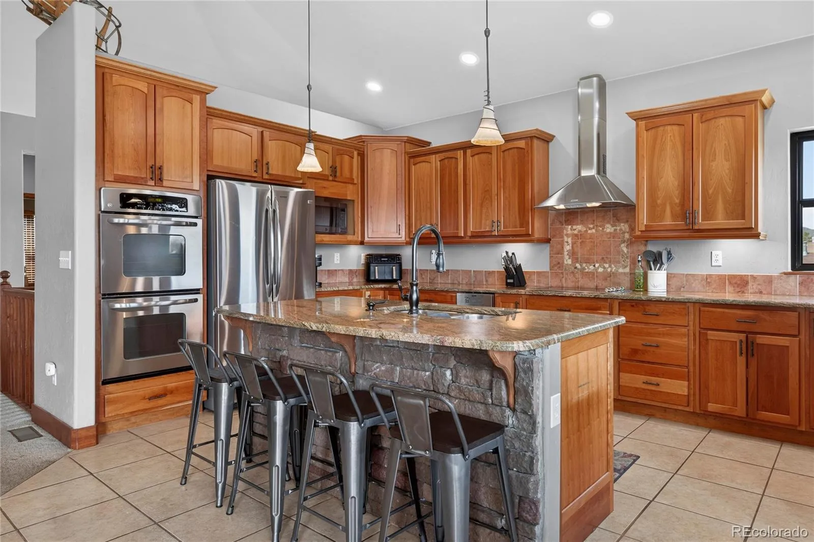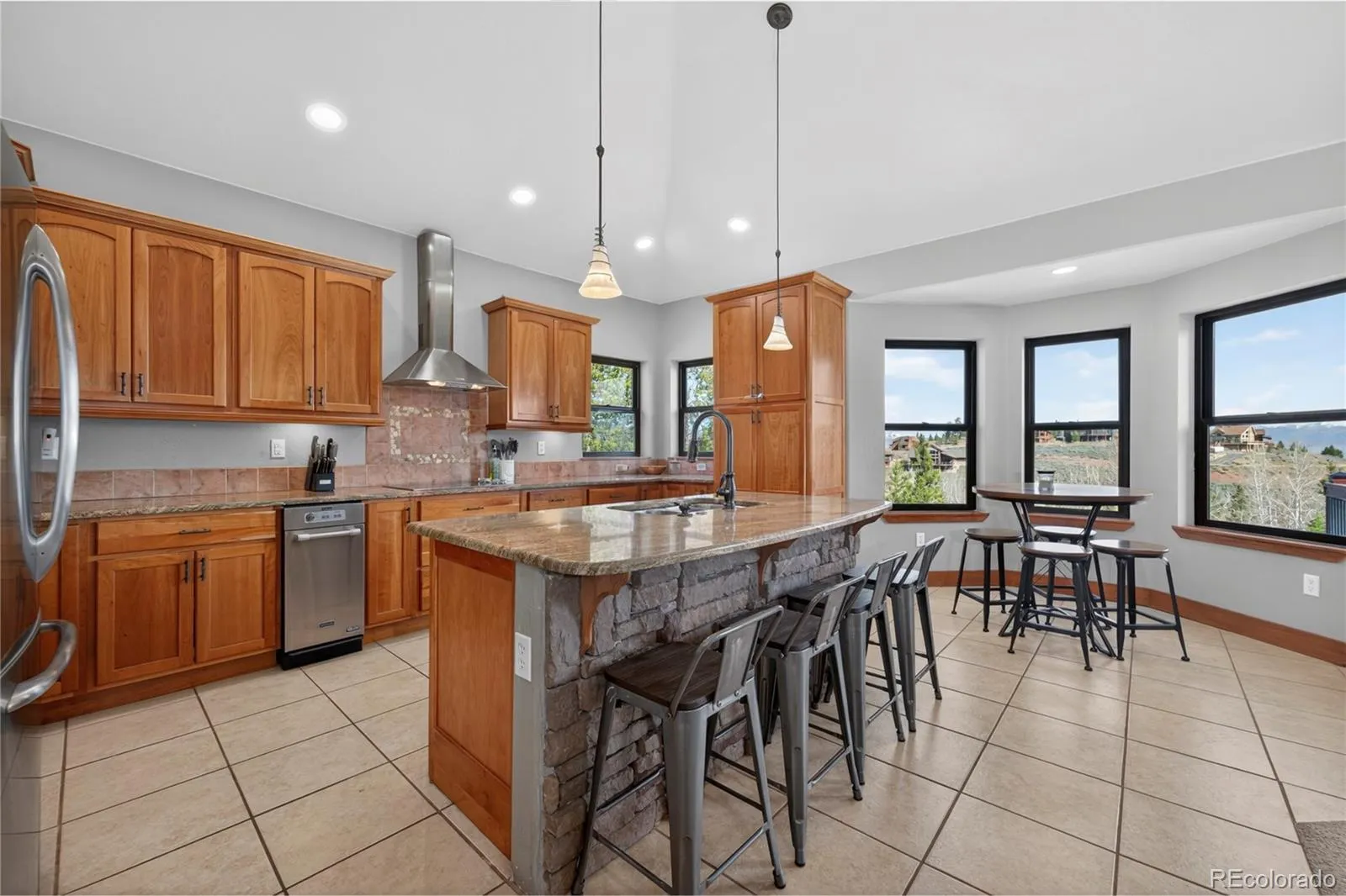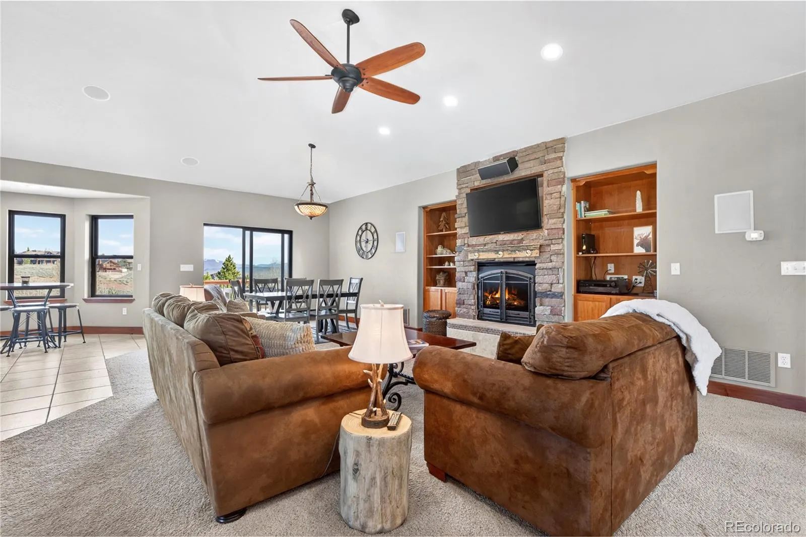 Imagine hosting friends and family in the eat-in cook’s kitchen, equipped with double ovens, an expansive island with counter seating, and a charming breakfast nook framed by wraparound mountain views. The main level features a luxurious primary suite with a lavish 5-piece bath and dual walk-in closets, ensuring a private sanctuary for relaxation.