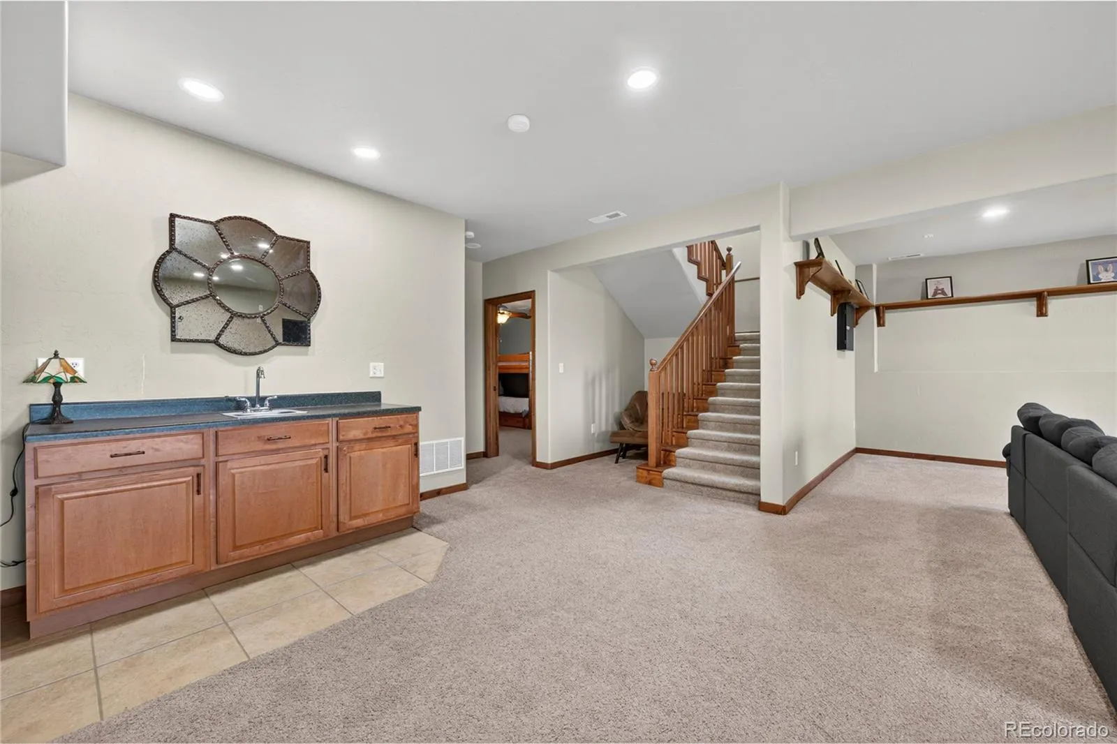 Venture downstairs to discover a spacious walkout entertainment zone, complete with a huge family room, 3 additional bedrooms, and a full bath featuring a dual vanity. A convenient wet bar and patio access make this space perfect for hosting guests or enjoying cozy movie nights.