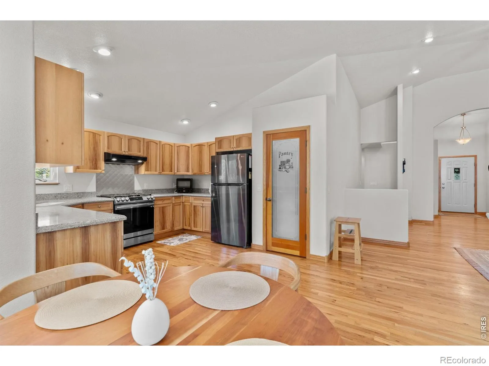 Well-Crafted Ranch Living in Sought-After Alford Meadows! Step through the front door of this beautifully maintained all-stucco ranch and immediately feel the warmth and openness this home has to offer. Built in 2004 and thoughtfully cared for, this 3,584 ttl sq ft home sits on a generous .22-acre lot with a large backyard and patio. Perfect for relaxing or entertaining.Rich hardwood floors flow throughout the main living areas, complemented by elegant architectural details including arches, niches, solid 6-panel doors, and custom milled trim that give this home a truly distinctive character. The kitchen is a standout, featuring beautiful hickory cabinets, Silestone quartz countertops, a walk-in pantry, and ample counter and cabinet space. A gas range/oven, refrigerator, dishwasher, and washer and dryer are all included – move-in ready from day one.The spacious primary suite is a true retreat, offering a luxurious 5-piece bath with jetted tub, separate shower, dual sinks, and a walk-in closet. Two additional bedrooms, one with a walk-in closet, provide flexibility for guests, family, or a dedicated home office.Have peace of mind and long-term value including the new Class 4 shingle roof, maintenance free vinyl soffit and fascia, low maintenance stucco exterior, radon mitigation system, SimpliSafe security system and a new high-efficiency HVAC system to be installed prior to closing. The full unfinished basement mirrors the main floor footprint at 1,792 sq ft, offering tremendous potential for future expansion. Enjoy the vibrant Alford Meadows community with the pool, park, playground, and common areas. Minutes to bike and trail system, shopping, dining, and quick access to I-25.This is Northern Colorado living at its finest – don’t miss it!
