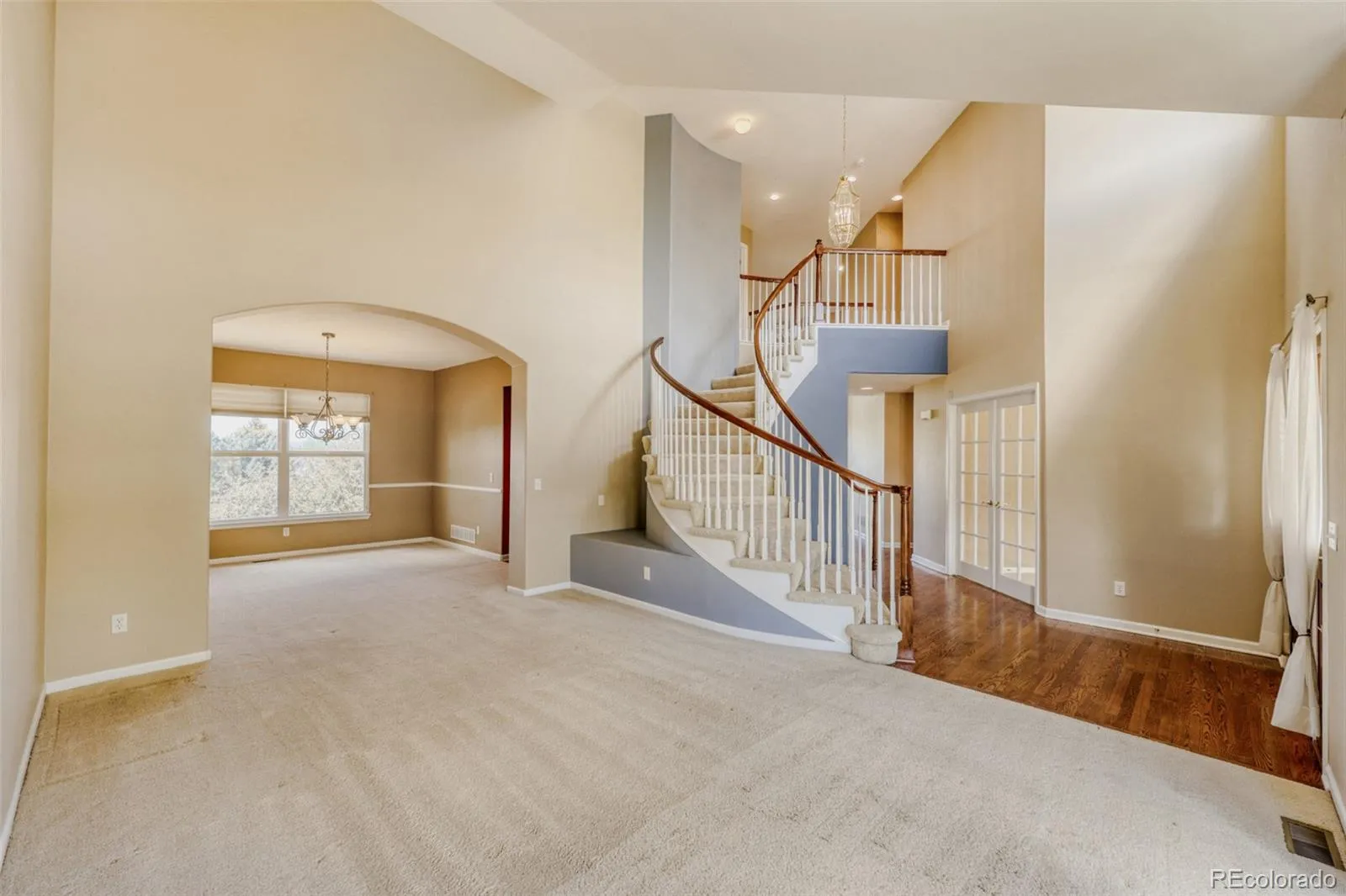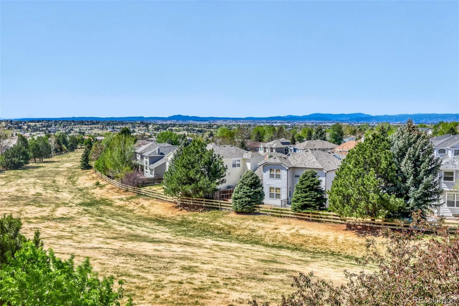 One of a kind setting with outstanding views of front range, Pikes Peak, Sleeping Indian and greenbelt location. Enjoy peaceful setting and views from large custom deck with wrought iron balusters and overhead fan. This popular Richmond Chardonnay model features dramatic entry with grand spiral staircase, large main floor study that could serve as 5th bedroom and features built in bookshelves and double French doors. Vaulted primary suite with 5 piece bath and 2 large walk in closets. Ensuite bedroom with rare private full bath. Vaulted Livingroom with sunny bay window. Large covered front entry with double sidelight windows. Formal dining room with chair rail and newer light fixture. Spacious open kitchen features gas cooktop, stainless steel double oven, dishwasher and refrigerator. Enjoy kitchen planning desk, center island, bar stool eating counter and abundance of oak cabinets with under cabinet lighting. Two story family room offers built in entertainment center, floor to ceiling windows and gas fireplace. Large main floor laundry offers sink, plenty of counterspace and additional cabinets. Large walk out basement allows you to customize to your own desires. Prime location with easy walk to award winning Rolling Hills Elementary school, as well as easy access to Grandview HS and Regis HS.
