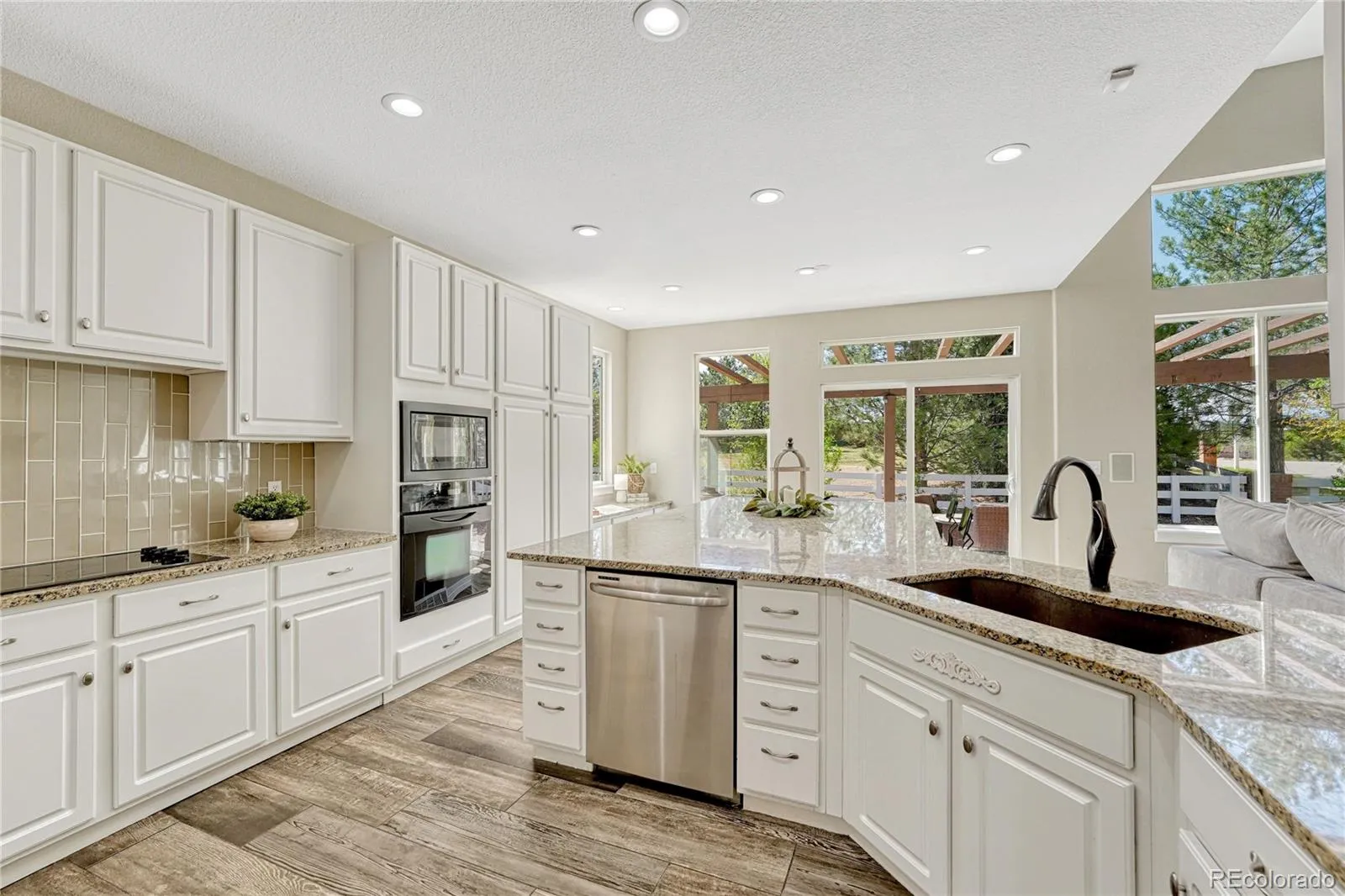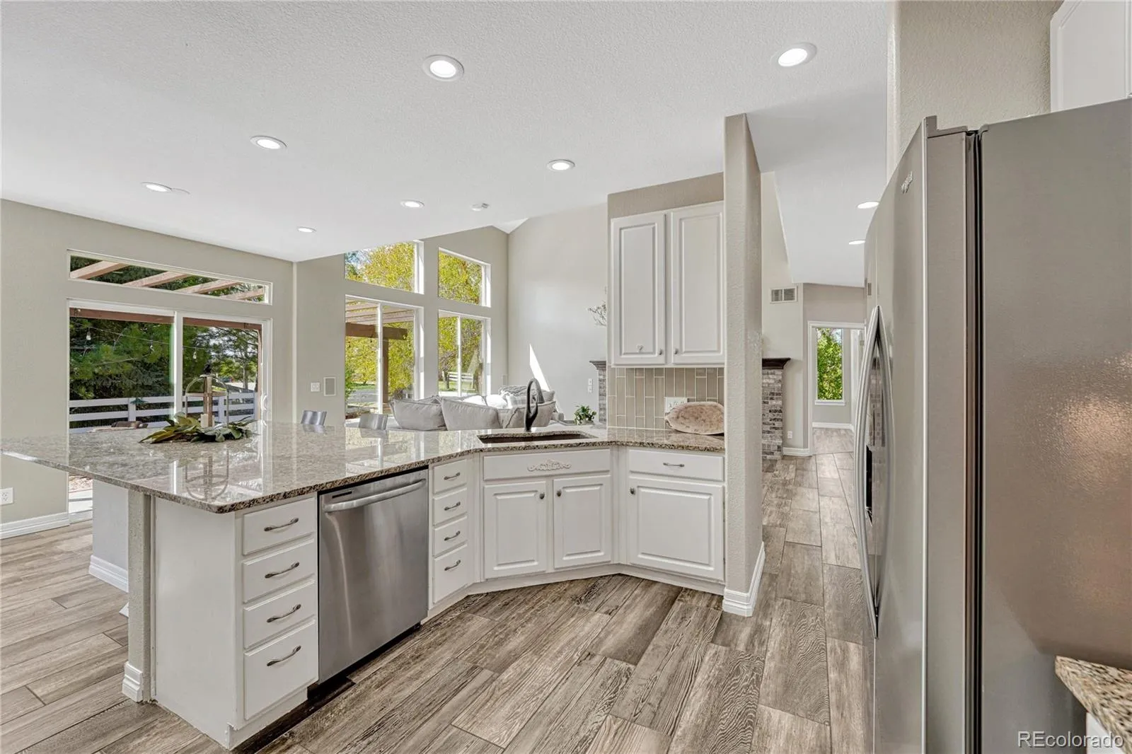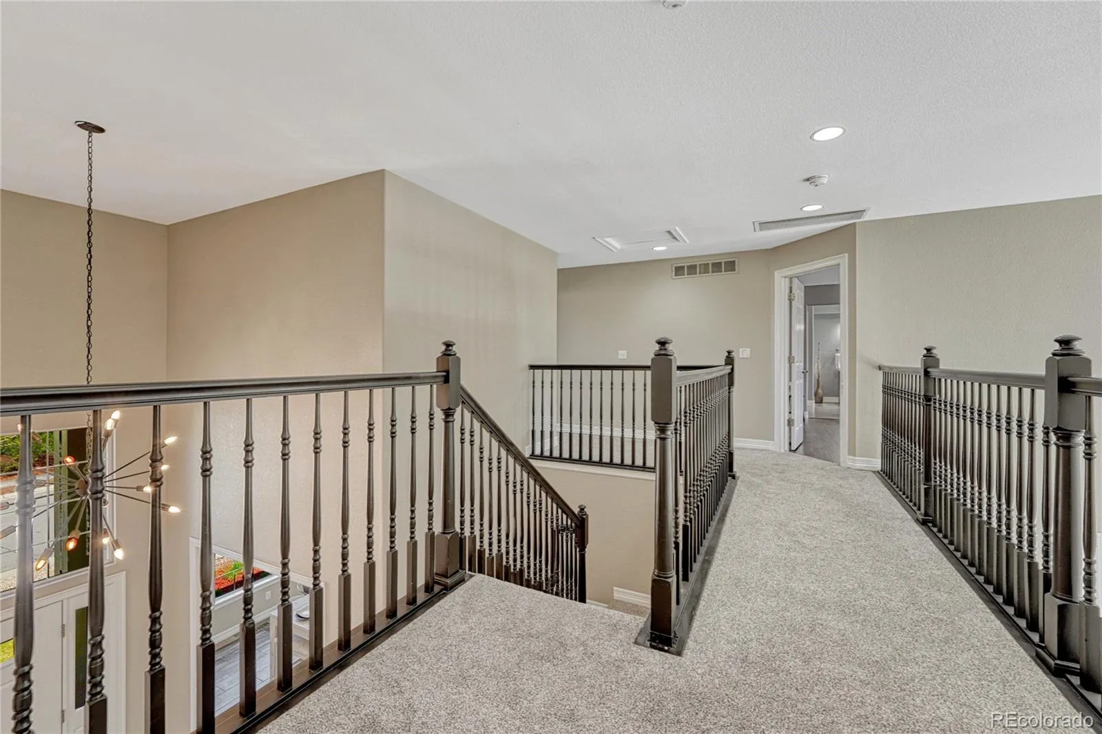 Stunning home in Greenfield Estates with a rare 4 CAR GARAGE, finished basement and 5 BEDROOMS – 4 ENSUITE – a layout that just makes sense. KITCHEN: White cabinetry, HUGE granite center island with seating all around – truly where everyone gathers – stainless steel appliances, custom backsplash, butler’s pantry and easy flow to the FAMILY ROOM with gas fireplace and soaring ceilings, plus quick access to the backyard. PRIMARY SUITE: Private retreat with vaulted ceilings and UPDATED BATH featuring large walk-in shower with custom tile, double sinks and organized walk-in closet with CUSTOM BUILT-IN ORGANIZERS. SECONDARY BEDROOMS: Upstairs includes a SECOND PRIMARY SUITE with oversized bedroom, full bath, double sinks and large closet, plus an additional ENSUITE BEDROOM with full bath. Two additional bedrooms provide great options for guests, office or whatever you need. DINING/LIVING: Formal dining room connects to kitchen through butler’s pantry, ideal for entertaining. OFFICE: Oversized main floor office with French doors. LAUNDRY: Updated with new sink and counter. BASEMENT: Finished for additional living or recreation space. OUTDOOR: Backyard set up for entertaining with oversized concrete patio, pergola, 220V-ready hot tub pad, dog run and generous side yards. COMMUNITY: Greenfield Estates offers pool, clubhouse, tennis and pickleball courts with LOW HOA covering trash and recycling. HOME EXTRAS: New interior and exterior paint, carpet, roof, updated lighting, Cherry Creek School District in Grandview feeder, unincorporated Arapahoe County with lower taxes.