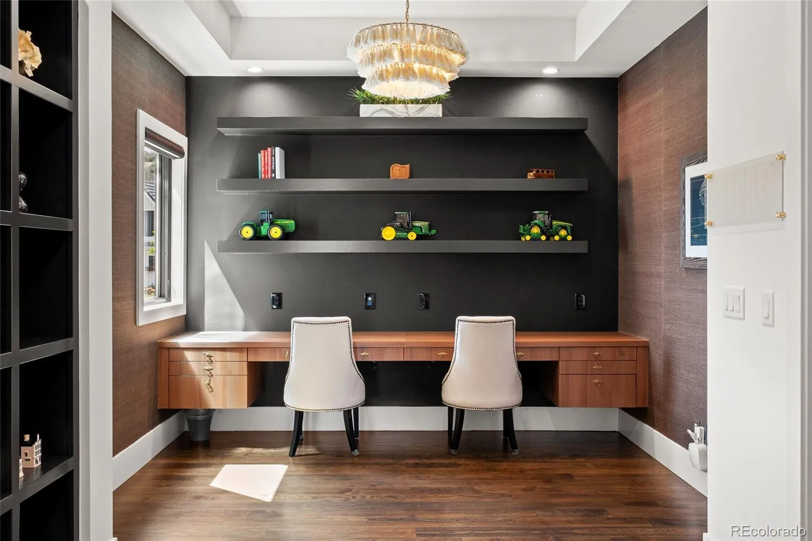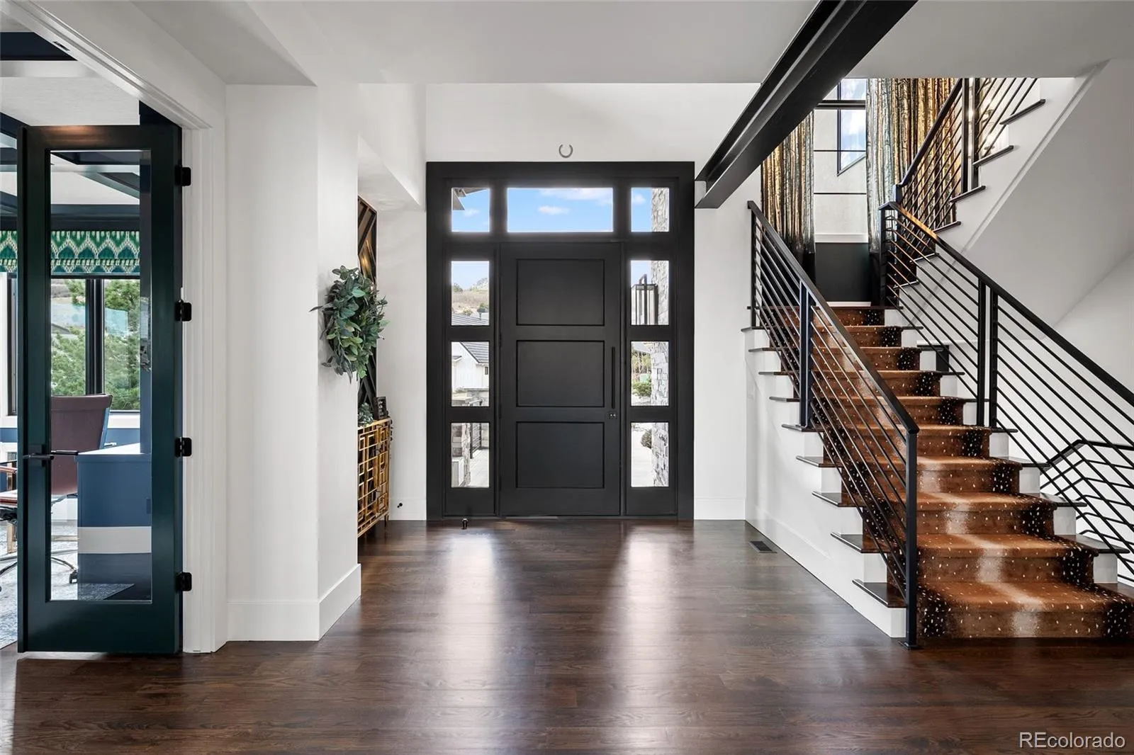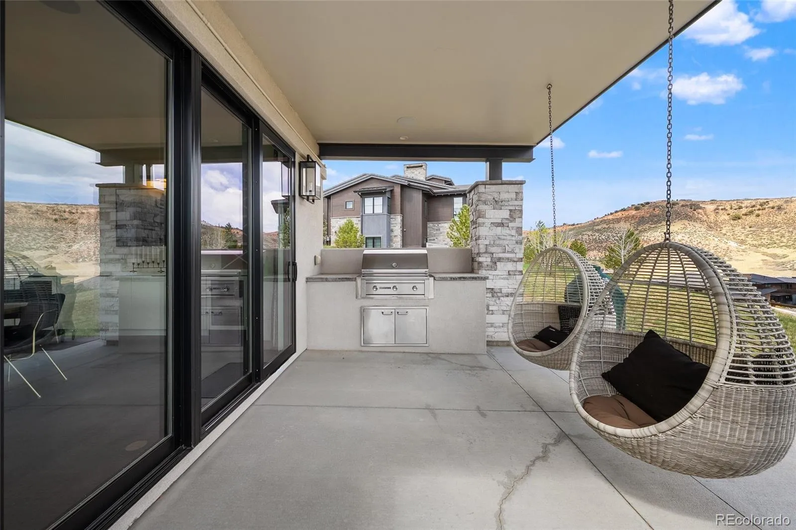 A rare collaboration between custom builder Ades Design and acclaimed interior designer Andrea Schumacher, this Colorado foothills estate is as much a work of art as it is a home. Every room tells its own story — unexpected textures, curated color palettes, and bespoke details that elevate each space beyond the ordinary. Soaring 20′ tongue-and-groove ceilings, a sculptural steel fireplace, and walls of glass framing the Rocky Mountains set the tone from the moment you enter. The gourmet kitchen and dining room — complete with high end appliances, a custom built-in buffet and dual wine refrigerators — were made for the kind of slow Sunday mornings and effortless dinner parties that define Colorado living at its best. The primary suite is pure indulgence: a fireplace, a spa bath with oversized shower and soaking tub, and a private balcony where the mountains are yours alone. Three additional ensuite bedrooms, each with their own distinct character, plus a loft and sitting area complete the upper level. The walkout basement shifts the mood entirely — a recreation room with fireplace, a second guest suite, and behind custom barn doors, a dreamy gym with rubber floors and a mirrored wall. A lofted kids’ playroom with custom ladder adds a touch of whimsy. Step outside and the Colorado lifestyle continues — neighborhood trails, a park, and a playground are right at your doorstep, perfect for morning runs, weekend rides, or afternoons with kids. Everyday conveniences including shopping, dining, and restaurants are just minutes away, making this the rare property where you never have to choose between serenity and convenience. Set just 25 minutes from Denver and 15 from downtown Littleton, with optional membership to Red Rocks Country Club for golf, pool, and year-round programming — this is Colorado lifestyle living, fully realized and beautifully designed.