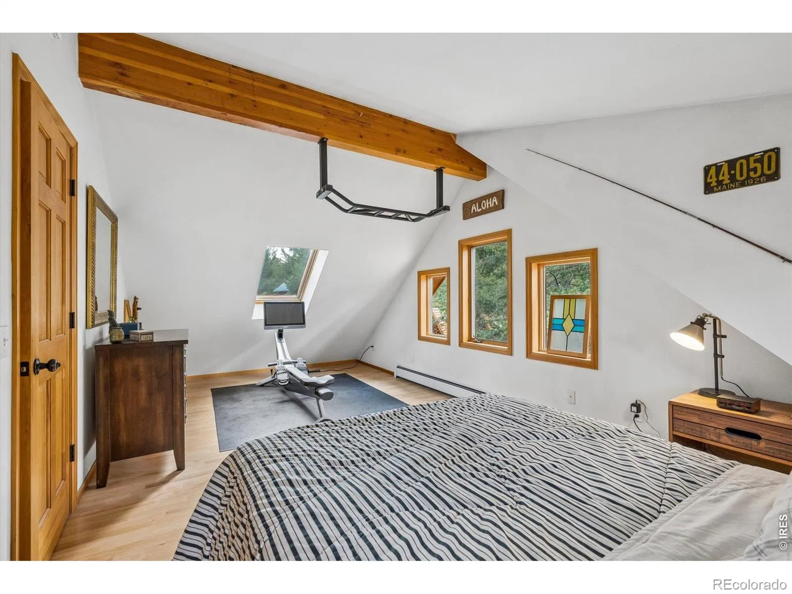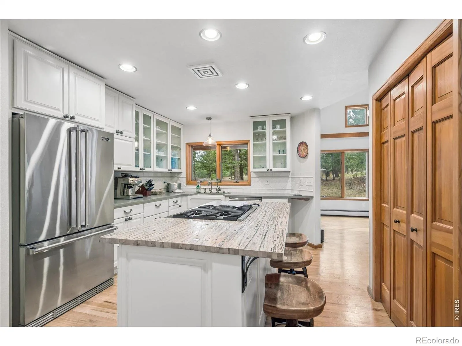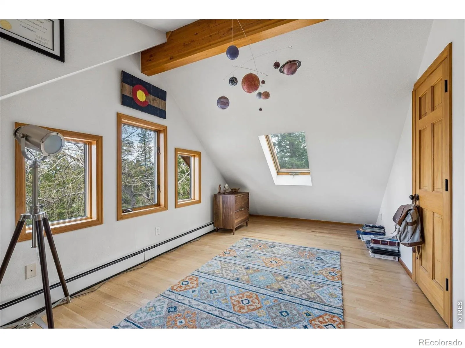 Nestled in one of Boulder’s most desirable neighborhoods, this beautifully updated home combines rare lakeside proximity, mountain views, & modern upgrades in a location that rarely becomes available. This home combines rare lakeside proximity, tranquility, mountain views, an outdoor lifestyle coupled with modern upgrades & comfort. Whether you’re looking for a primary residence or a serene retreat, this property offers exceptional value & lifestyle just moments from scenic walking trails & open space, this property delivers the Colorado living experience at its finest. Step inside to a light-filled, open-concept layout with expansive windows that frame stunning mountain views. The spacious living area features cathedral ceilings, hard wood floors, a cozy fireplace with pizza oven & seamless flow into the dining space & kitchen. The gourmet kitchen is equipped with Quartz countertops, SS Viking appliances, custom cabinetry, & a large center reclaimed wood island perfect for entertaining. The master suite offers a private retreat with a gas fireplace, attached office/reading/yoga room, a spa inspired steam shower & soaking tub, & walk-in closet. Enjoy your greenhouse/sunroom, heated attached 2-car garage, fully enclosed dog run (~1,400 sq ft), clean & well-lit crawlspace of 1,000 square feet for additional storage, & your own weather station as some of the extras this home offers