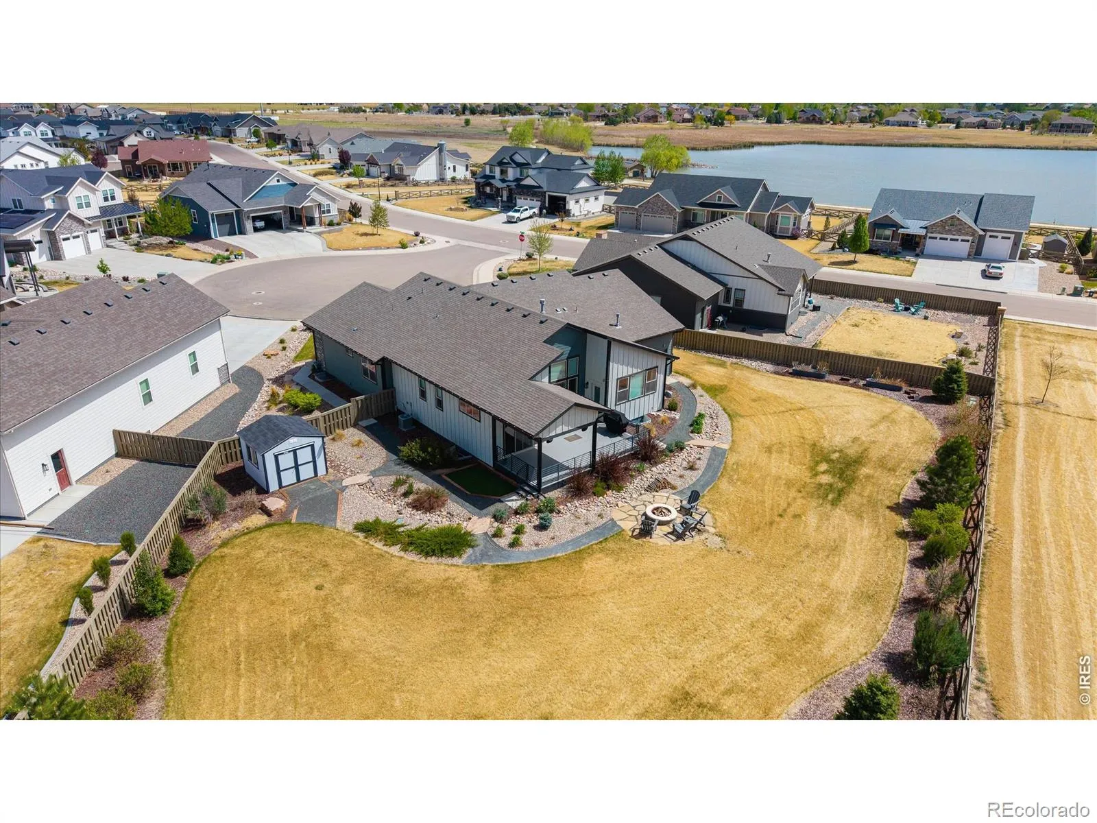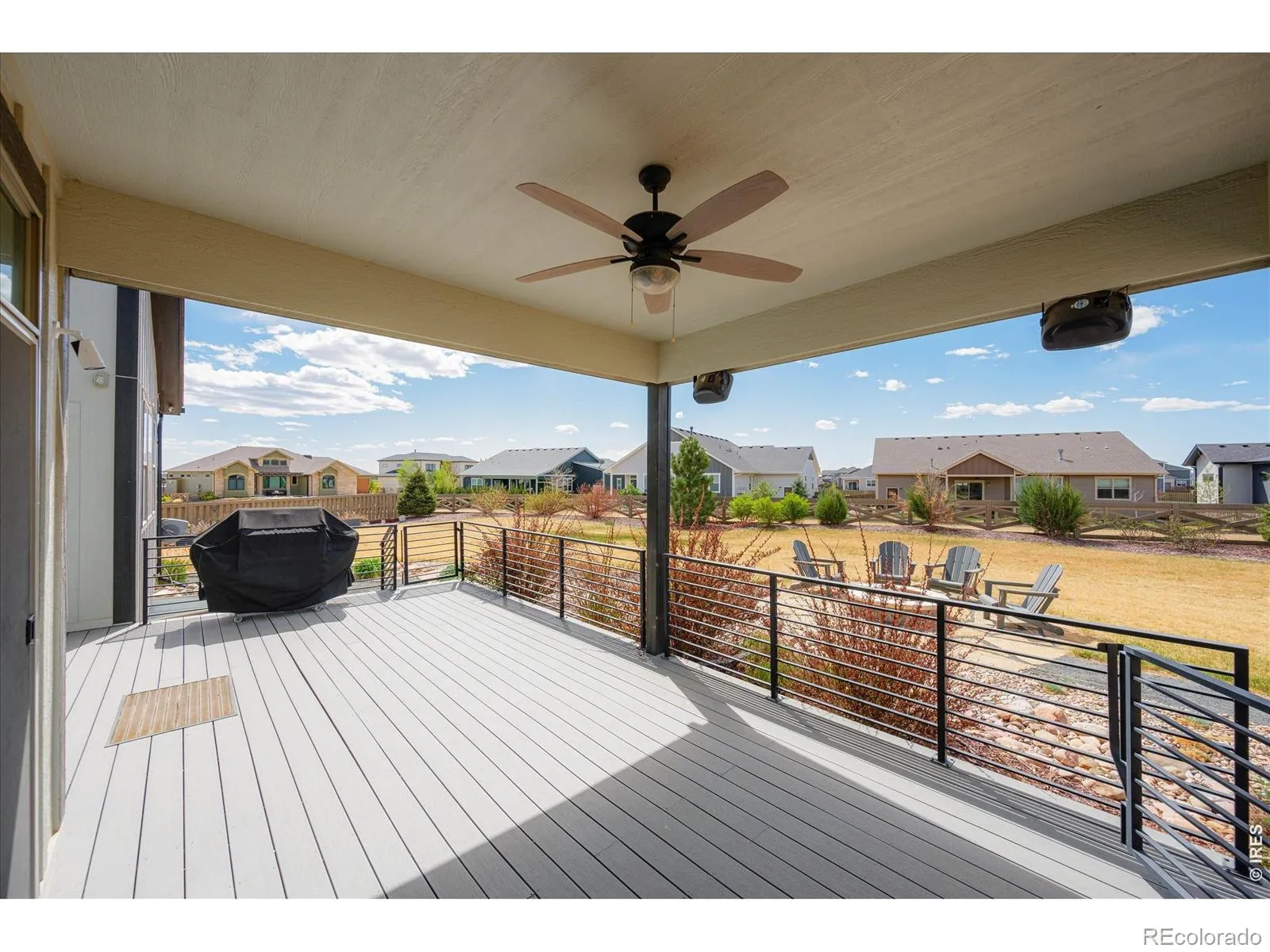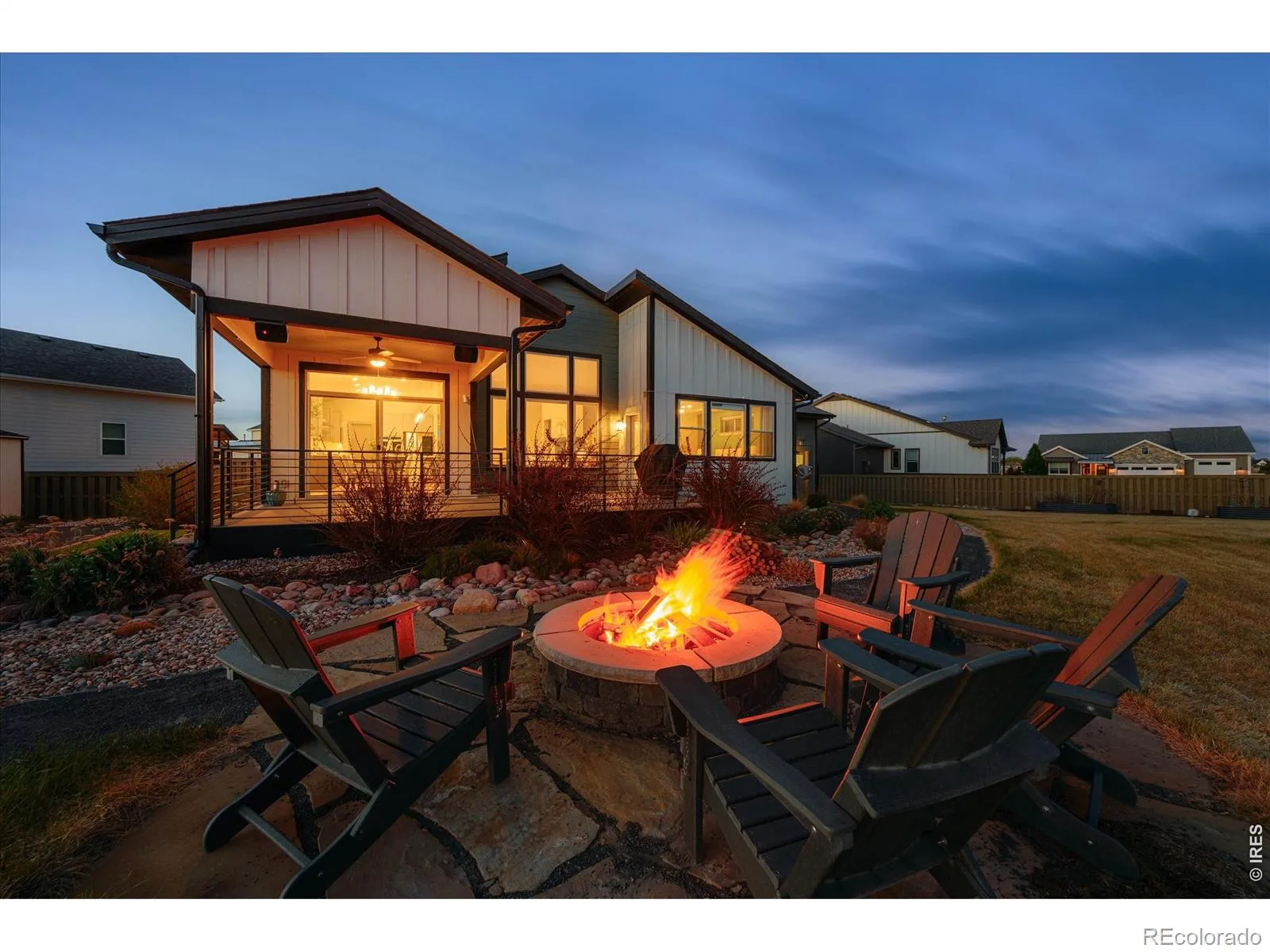 Half-acre luxury with mountain views, a 39′ RV garage, and over 4,100 sq ft of refined ranch-style living-this is the one that stands apart. Offering 5 bedrooms, 3 bathrooms, & 3,207 square feet finished space, this home delivers a rare combination of sophistication, functionality, & Colorado lifestyle appeal. The main level impresses with vaulted ceilings, designer lighting, & a beautifully appointed great room anchored by a gas fireplace. The chef’s kitchen is thoughtfully curated with a walk-in pantry, LG stainless refrigerator, Kitchen Aid gas range, Bosch dishwasher, & Whirlpool double ovens-blending performance & style for effortless entertaining. A custom mudroom with built-in cubbies, bench seating, & storage adds everyday convenience. The primary suite is a private retreat, featuring direct access to the composite deck, a spacious walk-in closet, & a spa-caliber bathroom with a multi-head shower, dual fixtures, rain head, & integrated bench seating. Two secondary main-level bedrooms, one that is ideally positioned for use as a private office, are situated between a full bathroom. The basement extends the home’s livability with two additional bedrooms, a 3/4 bath, a sleek wet bar with mini fridge, & a dedicated storage room-offering space and flexibility to accommodate a variety of living arrangements. Outdoor living is equally elevated, with a partially covered composite deck, built-in speakers, gas line for grilling, & a fire pit area designed for year-round enjoyment. The backyard also includes an AstroTurf pet area & storage shed for added utility. Car collectors & hobbyists will appreciate the oversized 4-car insulated garage, complete with a 39′ RV/toy bay (10′ door), 240V outlet, workbench, hot & cold water spigot, & gas line for future heat. Additional highlights include a tankless water heater, spacious laundry room with utility sink. Enjoy small-town charm & convenient access to I-25 in a home that blends luxury, space, & lifestyle.