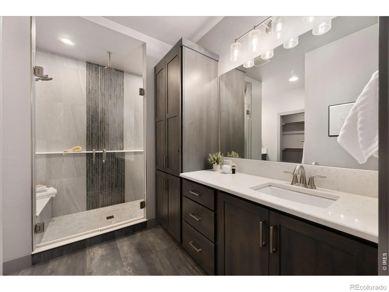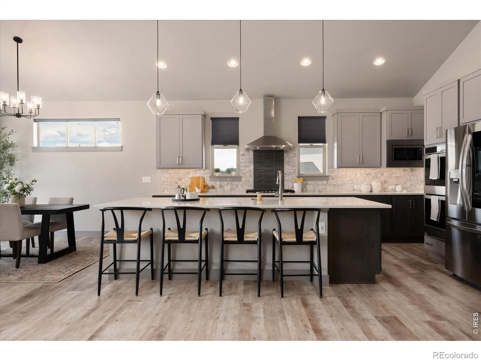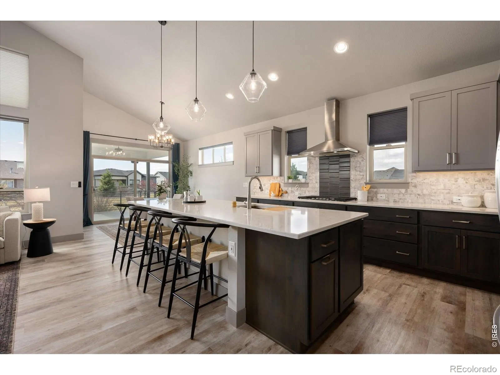 Half-acre luxury with mountain views, a 39′ RV garage, and over 4,100 sq ft of refined ranch-style living-this is the one that stands apart. Offering 5 bedrooms, 3 bathrooms, & 3,207 square feet finished space, this home delivers a rare combination of sophistication, functionality, & Colorado lifestyle appeal. The main level impresses with vaulted ceilings, designer lighting, & a beautifully appointed great room anchored by a gas fireplace. The chef’s kitchen is thoughtfully curated with a walk-in pantry, LG stainless refrigerator, Kitchen Aid gas range, Bosch dishwasher, & Whirlpool double ovens-blending performance & style for effortless entertaining. A custom mudroom with built-in cubbies, bench seating, & storage adds everyday convenience. The primary suite is a private retreat, featuring direct access to the composite deck, a spacious walk-in closet, & a spa-caliber bathroom with a multi-head shower, dual fixtures, rain head, & integrated bench seating. Two secondary main-level bedrooms, one that is ideally positioned for use as a private office, are situated between a full bathroom. The basement extends the home’s livability with two additional bedrooms, a 3/4 bath, a sleek wet bar with mini fridge, & a dedicated storage room-offering space and flexibility to accommodate a variety of living arrangements. Outdoor living is equally elevated, with a partially covered composite deck, built-in speakers, gas line for grilling, & a fire pit area designed for year-round enjoyment. The backyard also includes an AstroTurf pet area & storage shed for added utility. Car collectors & hobbyists will appreciate the oversized 4-car insulated garage, complete with a 39′ RV/toy bay (10′ door), 240V outlet, workbench, hot & cold water spigot, & gas line for future heat. Additional highlights include a tankless water heater, spacious laundry room with utility sink. Enjoy small-town charm & convenient access to I-25 in a home that blends luxury, space, & lifestyle.