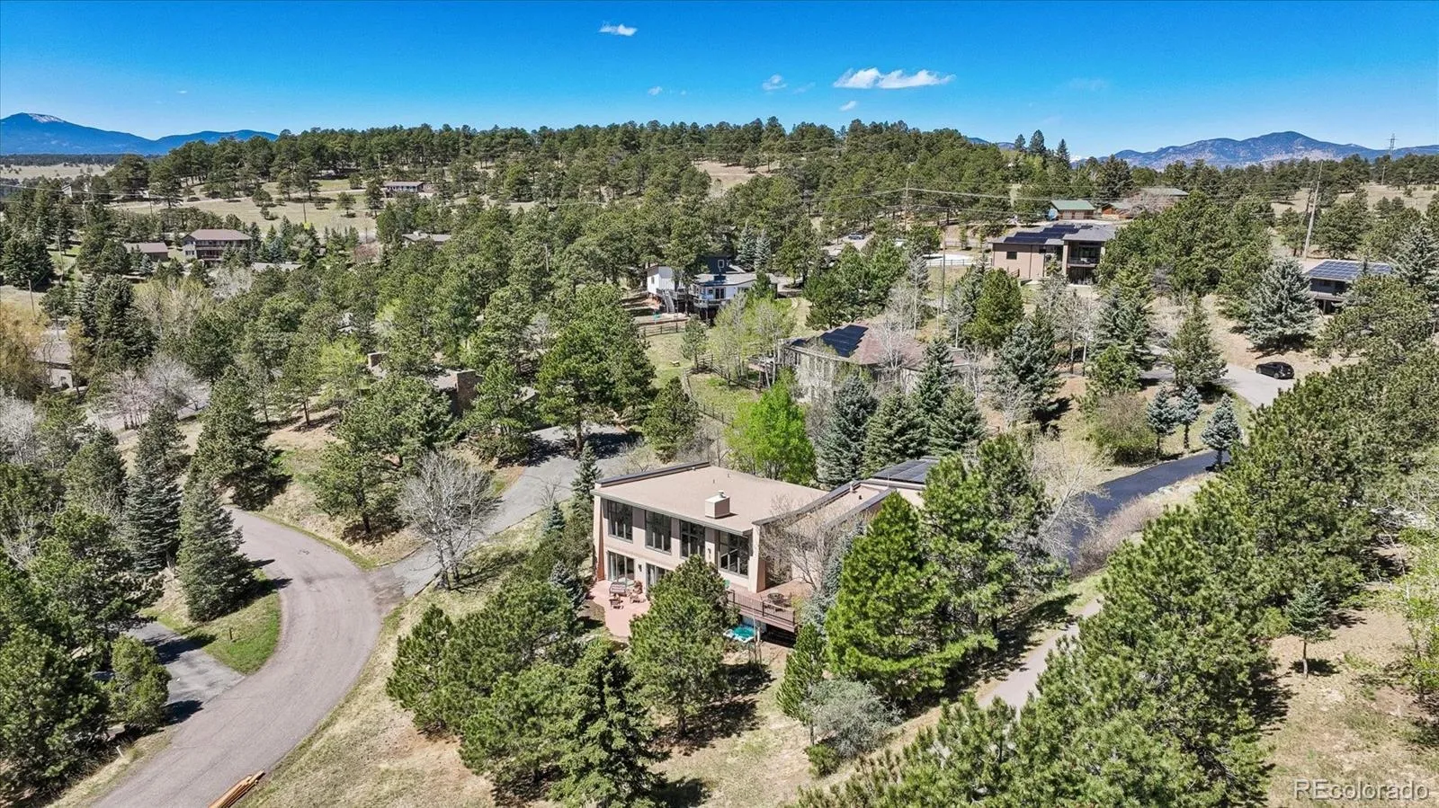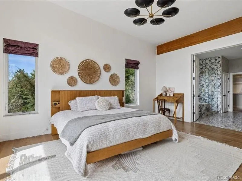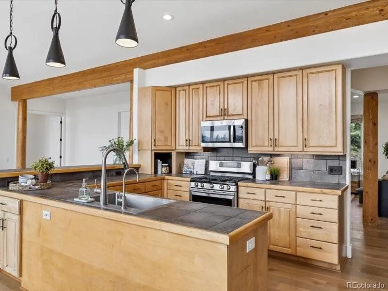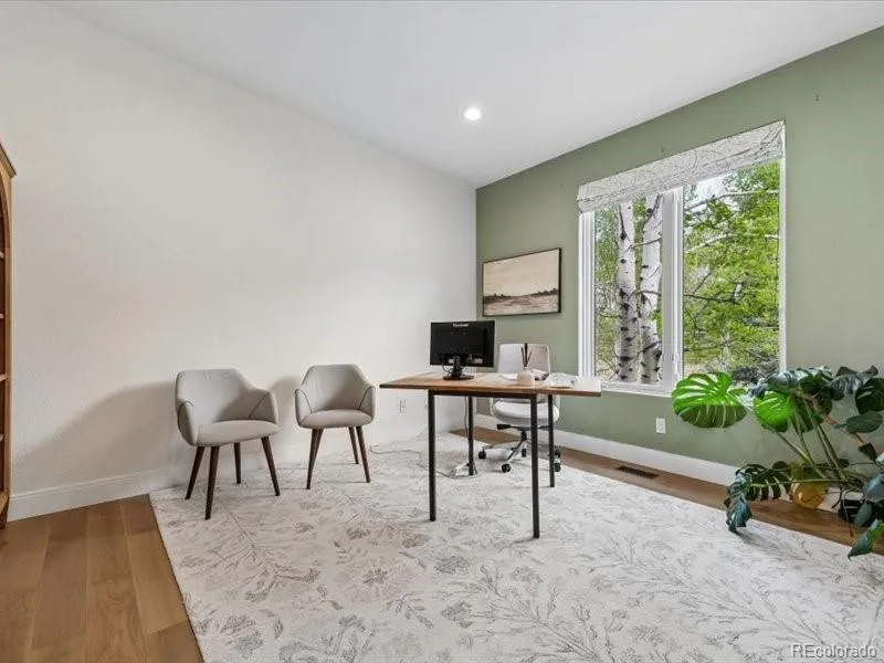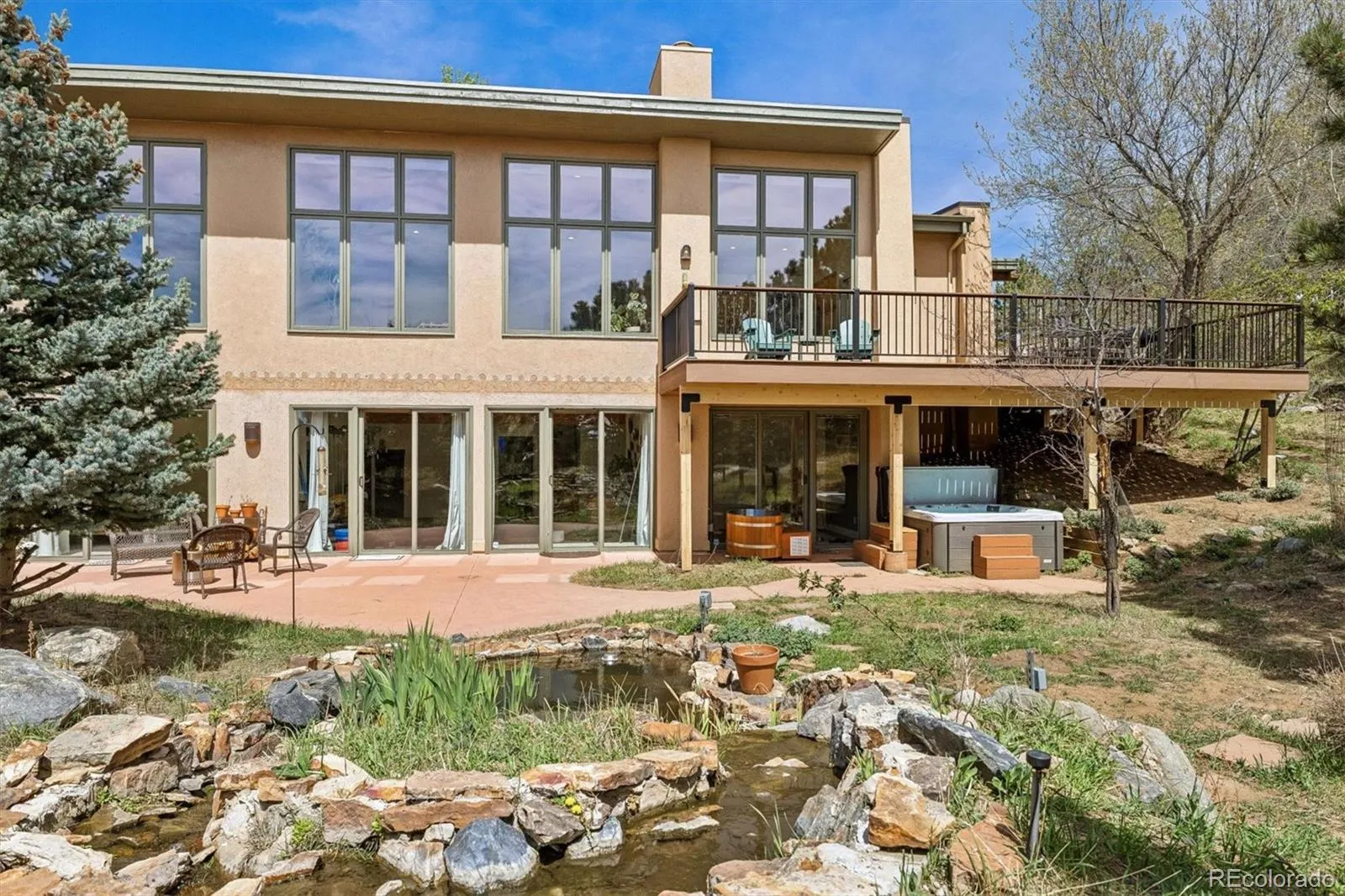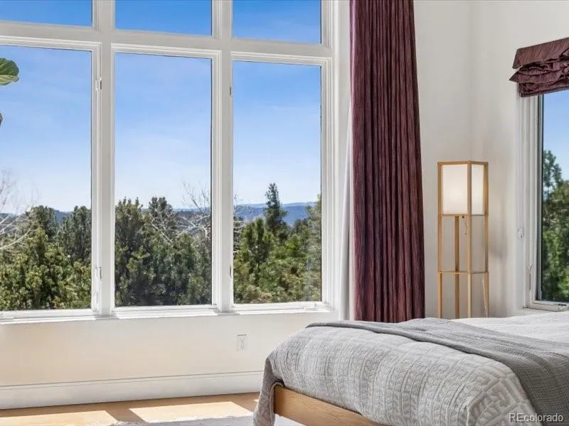 A True Colorado Treasure – beautifully updated foothills property, on large, naturally landscaped corner lot. STUNNING VIEWS. Conveniently located a short drive from I-70 & C-470 with easy commute to Denver. Natural light pours in thru many large windows. Unique design ensures that spectacular natural mountain setting is on display in every room. Attractive hardwood floors, wood columns & beams + vaulted ceilings grace main level. Open floor plan ideal for entertaining & everyday living. Amazing Great Room is designed to be the Heart of the Home with abundance of sunlight & expansive windows capturing mountain views, including Pikes Peak. Remote controlled shades + several windows open allowing you to enjoy fresh mountain air. 3-sided gas fireplace. Sun-filled adjoining Dining Room with sliding door to brand new low maintenance deck where you can take in scenery, colorful sunsets & wildlife viewing. Cooking will be a pleasure in open Gourmet Kitchen which features lots of maple cabinetry & counter space, stainless appliances, stylish pendant lighting, pantry & breakfast bar. French doors open to spacious Primary Suite. Luxurious 5-piece bath has gorgeous custom tile, complemented by marble countertops. Separate vanities, deep soaking tub & large walk-in closet. Convenient Home Office is perfect for today’s remote work. Extensive living space in fully finished Walk-out Basement – Rec Room, Home Theater (all equipment + TV included), 2 bedrooms share Jack & Jill bath + 3rd bedroom served by another full bath. You will love spending time on private concrete patio which faces enchanting water feature + pond with fish. New hot tub. Freshly painted exterior. 3 car garage with storage shelves. Owned solar panels, newer (2022) double furnace & AC units, hot water heater. Easy access to Red Rocks, Lookout Mountain Nature Center & Preserve, Apex Park + many other nearby hiking trails, offering a lifestyle that focuses on quality of life. This is Colorado Living at its Best!