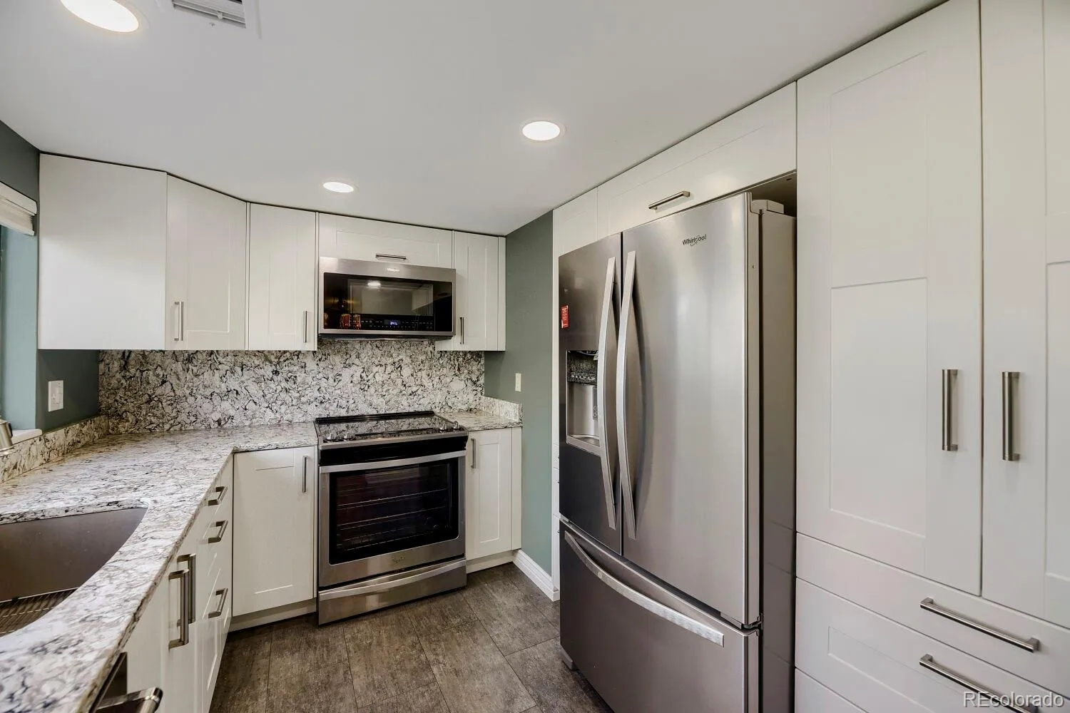 Exceptional end-unit residence backing to a serene, park-like open space. This spacious floor plan showcases a beautiful design with tall painted cabinetry, granite countertops, recessed lighting, and stainless steel appliances. The home features a rare and wonderful wood-burning fireplace, bathrooms, durable laminate plank flooring, and lots of space to make your own. The elegant primary suite offers a private deck/balcony, creating a perfect retreat. Abundant closet space and storage options are found throughout the home.