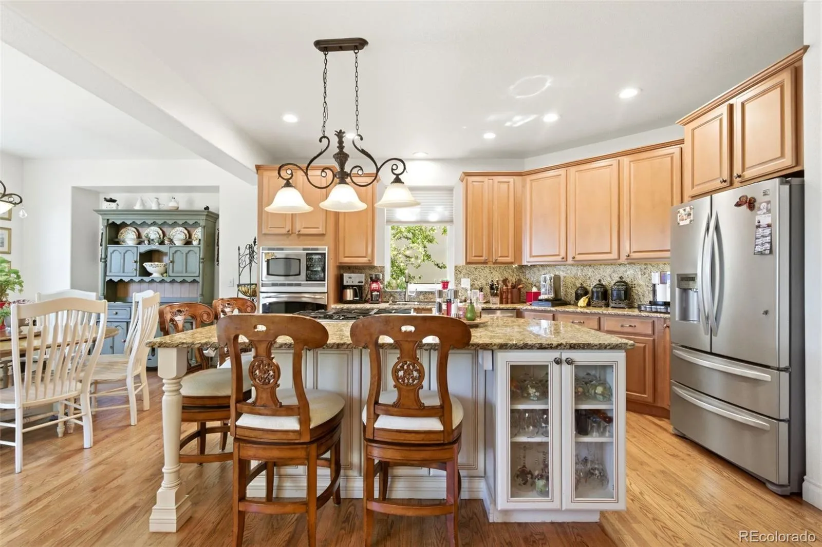 Original Owner, First time on the market as a resale! Rare opportunity to own a custom home in the hidden gem of Woodhaven in Arvada. This property has been lovingly cared for, meticulously maintained and thoughtfully decorated! Inviting front porch welcomes you to this beautiful home. 3 CAR TANDEM GARAGE! Open entry with main floor office, large airy feeling for entertaining and lounging in a spacious family room with gas fireplace and open to kitchen perfect for entertaining and family gatherings. Large island with plenty of seating plus additional dining area off the kitchen. Step out to to a serene back yard with stamped concrete patio, mature trees, coy pond and NO HOMEs BEHIND YOU! Upper level features a spacious primary suite, 5 piece bath with soaking tub and walk in closet. 2 additional bedrooms share a Jack and Jill bath. Large laundry room completes the upper level. Venture downstairs to an additional family room retreat with wet bar, additional bedroom and full bathroom! Woodhaven is a hidden gem located in Arvada with easy access to the Colorado Rocky Mountain Front Range, Olde Town Arvada, downtown Denver, Golden and Boulder. Mature landscaping sets the tone for an idyllic lifestyle and leads to the well-developed Arvada trail system for plenty of recreational opportunities.