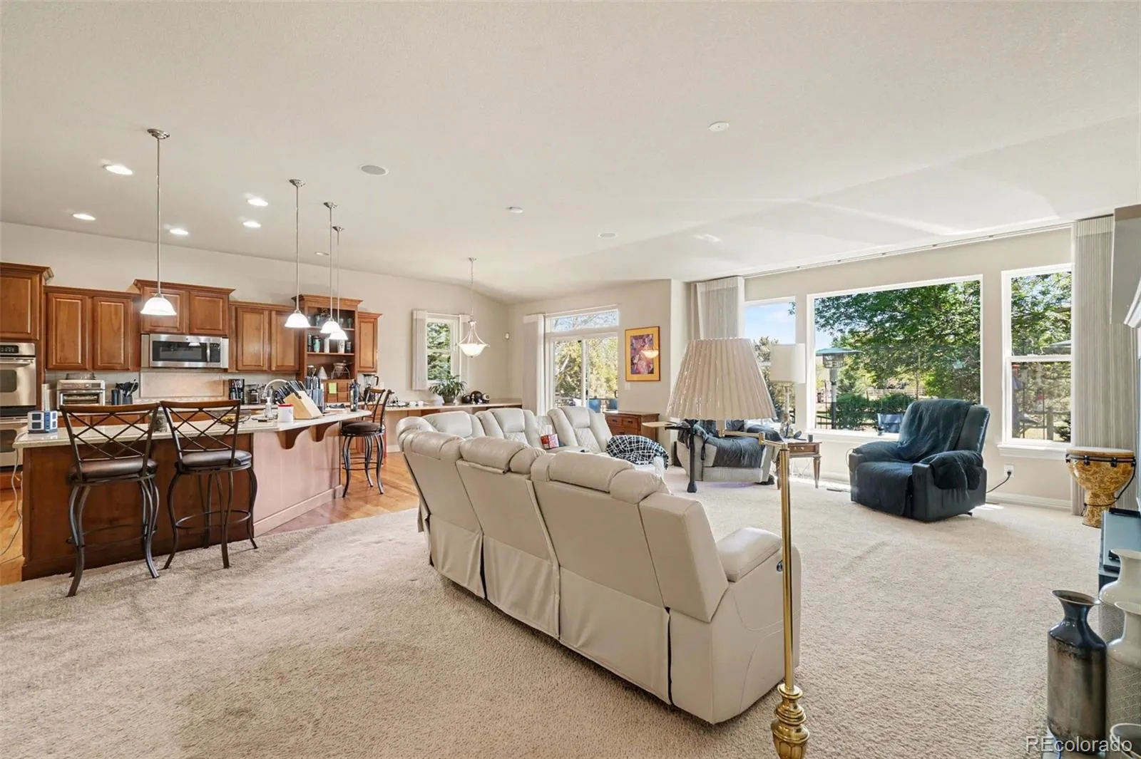 Tucked into one of Longmont’s most desirable, established neighborhoods, this expansive and beautiful ranch makes an immediate impression with fresh exterior paint, mature landscaping, and a setting that offers a rare sense of privacy and calm. Inside, high ceilings, art niches, neutral paint, and abundant windows create a bright, open feel throughout. The kitchen is elegant and expansive, featuring high-end stainless steel appliances including a double oven, a generously sized island with seating, slab granite countertops, and high-end cabinetry. The sunny breakfast nook overlooks the back patio and sits adjacent to a new sliding glass door, creating an easy connection to outdoor living and everyday dining. The kitchen flows seamlessly into the spacious family room, anchored by a gas fireplace with custom built-ins and a flexible seating area ideal for relaxing or gathering. The oversized primary suite is a true retreat, featuring a large bay window overlooking the backyard, dual walk-in closets, and a spacious five-piece bath. Formal living and dining rooms offer inviting spaces for both entertaining and everyday living, with coffered ceilings and architectural columns adding character and depth. The main level is completed by two additional bedrooms, a generously sized office with French doors, a full bath, a powder bath, and a well-designed laundry room with added storage. The full unfinished basement offers excellent potential for future expansion, with egress windows for natural light and rough-in plumbing already in place for added flexibility. The backyard offers a private, peaceful setting with mature landscaping, a large patio, multiple seating areas, a hot tub, and open space behind, creating a seamless extension of the home’s living space. A rare opportunity to own a spacious, well-maintained home in a peaceful, private setting that offers an exceptional balance of comfort and livability.