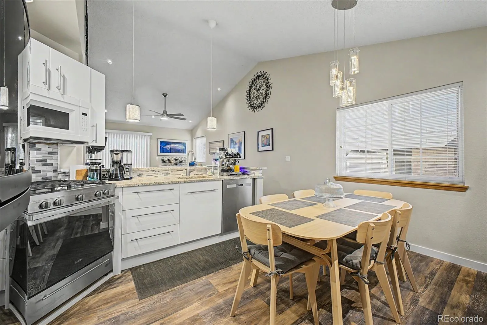 Welcome to you new home in Spring Creek Meadows. Situated on a premium corner lot, this home features a charming facade, large yard, and a welcoming front entry. As you enter, you will notice attention to detail coupled with clean and updated features. The front entry features high end luxury vinyl flooring, and wrought iron railings. Along with the main-level primary bedroom, which is complete with ensuite bathroom and walk-in closet, the main level also has 2 additional bedrooms and a full updated bathroom. In the spacious living room, you will find a large high-end electric fireplace, which helps warm your toes on those cold winter nights, accentuated with a stone surround and built-in entertainment center and, and granite high top adjacent to the kitchen. It’s the perfect space to relax and entertain friends. The eat-in kitchen is equipped with updated, soft-close cabinetry, granite counters, tile backsplash, pendant lighting, and gas range. The 2-car garage has also been updated with an abundance cabinetry and work benches, and an EV charger. As you head downstairs, you will find 2 more, large bedrooms, an updated 3/4 bathroom, one extra room that could be used as a 6th bedroom (no closet), and ample storage. The massive backyard provides more storage with a large shed, and also provides plenty of space to spread out, relax with friends, or let your pets enjoy the space. Located in the highly acclaimed Cherry Creek School District, and just 7 minutes from the beautiful Southlands Shopping center, great restaurants, E-470, and DIA, his home combines sleek finishes with an ideal location.