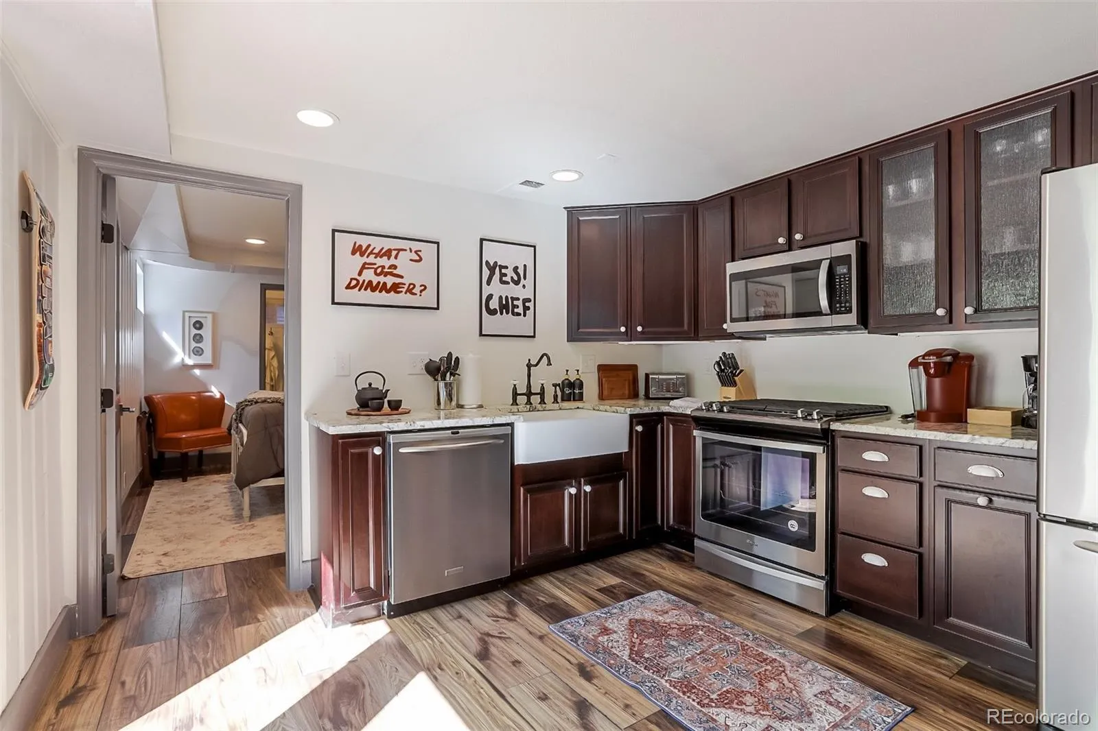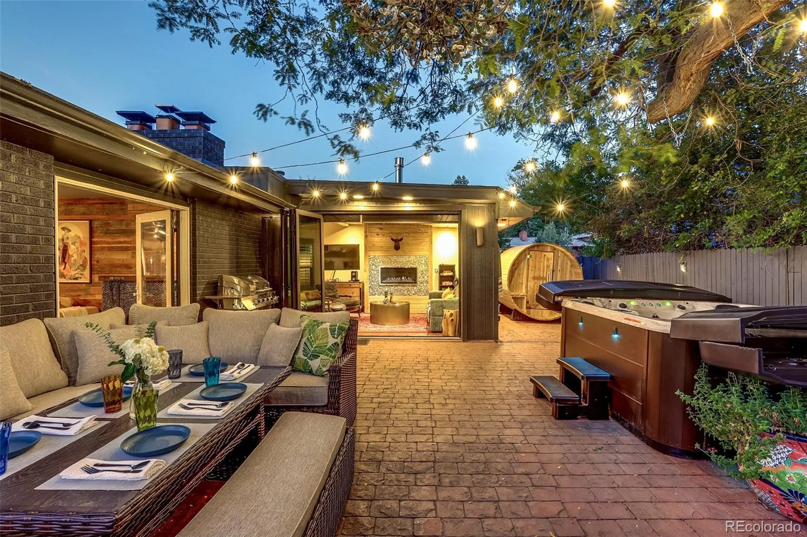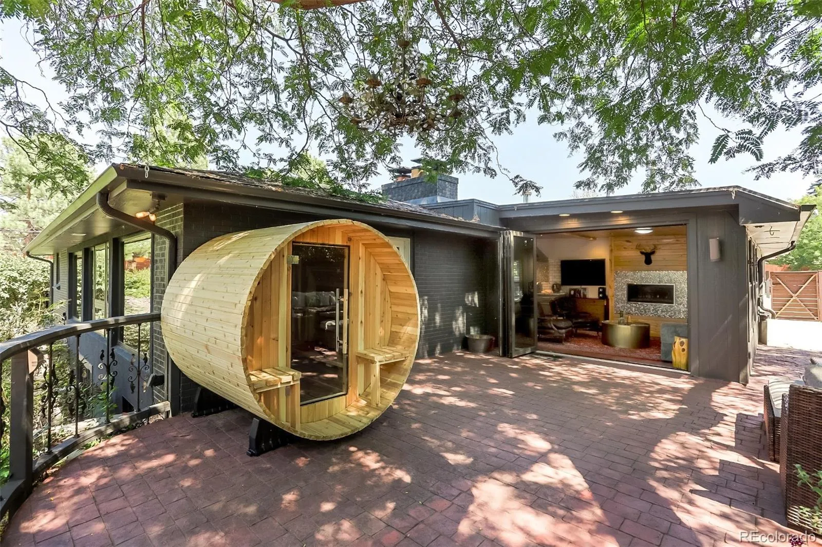Modern mid-century home on a private corner lot offering a rare turnkey investment or ideal primary residence. This active, high-performing short-term rental generated over $140,000 in 2025 revenue. Furnishings, curated design, décor, and premium amenities, including hot tub, sauna, fire pit, and outdoor entertaining spaces, are negotiable. The home features a bright, open layout thoughtfully designed with vaulted ceilings, wood accents, and seamless indoor/outdoor flow. The main level includes a stylish kitchen with updated finishes, multiple living spaces, a flexible space that can be used as an office or bedroom, and a well-appointed primary suite comfortable for full-time living. The lower level is set up as a separate apartment with its own kitchen, bedroom, bathroom, laundry, and private access, perfect for continued STR income, guests, or multi-generational living. Additional highlights include multiple outdoor gathering areas, mature landscaping, ample parking, and a garage with built-in storage. Ideally located 25 minutes to downtown Denver, under 15 minutes to Cherry Creek North and the Denver Tech Center, with easy access to the High Line Canal and Cherry Creek State Park, and within the Cherry Creek School District.
