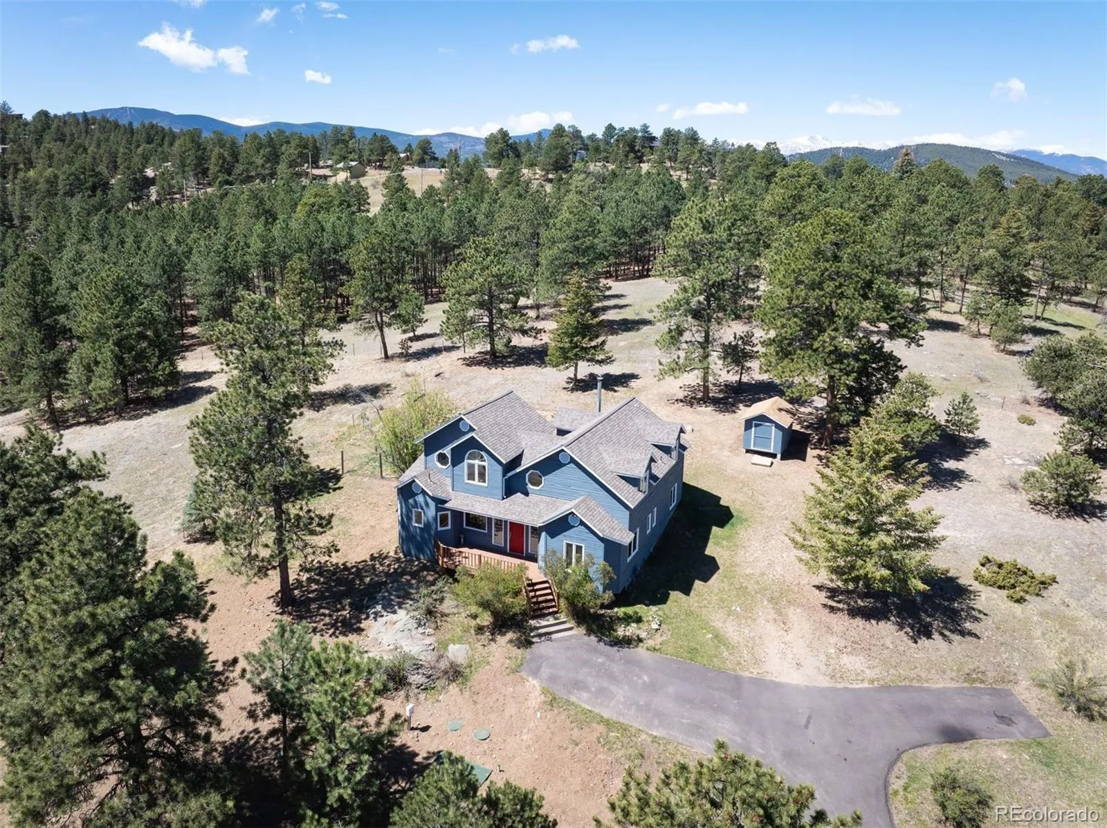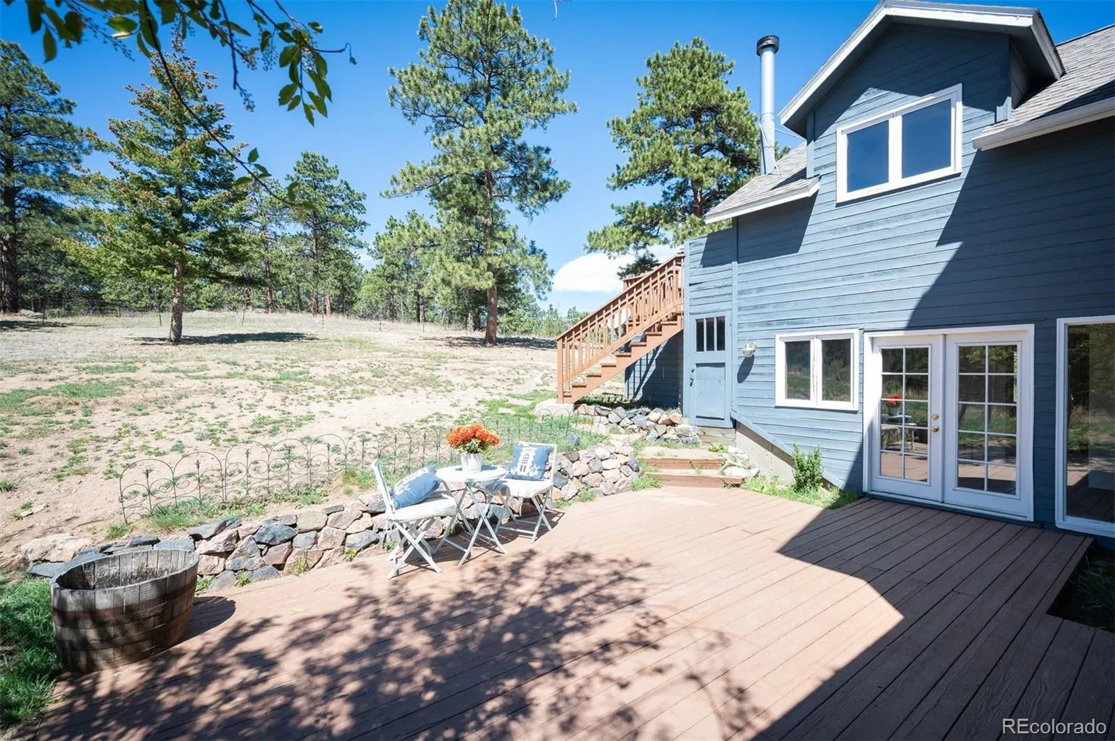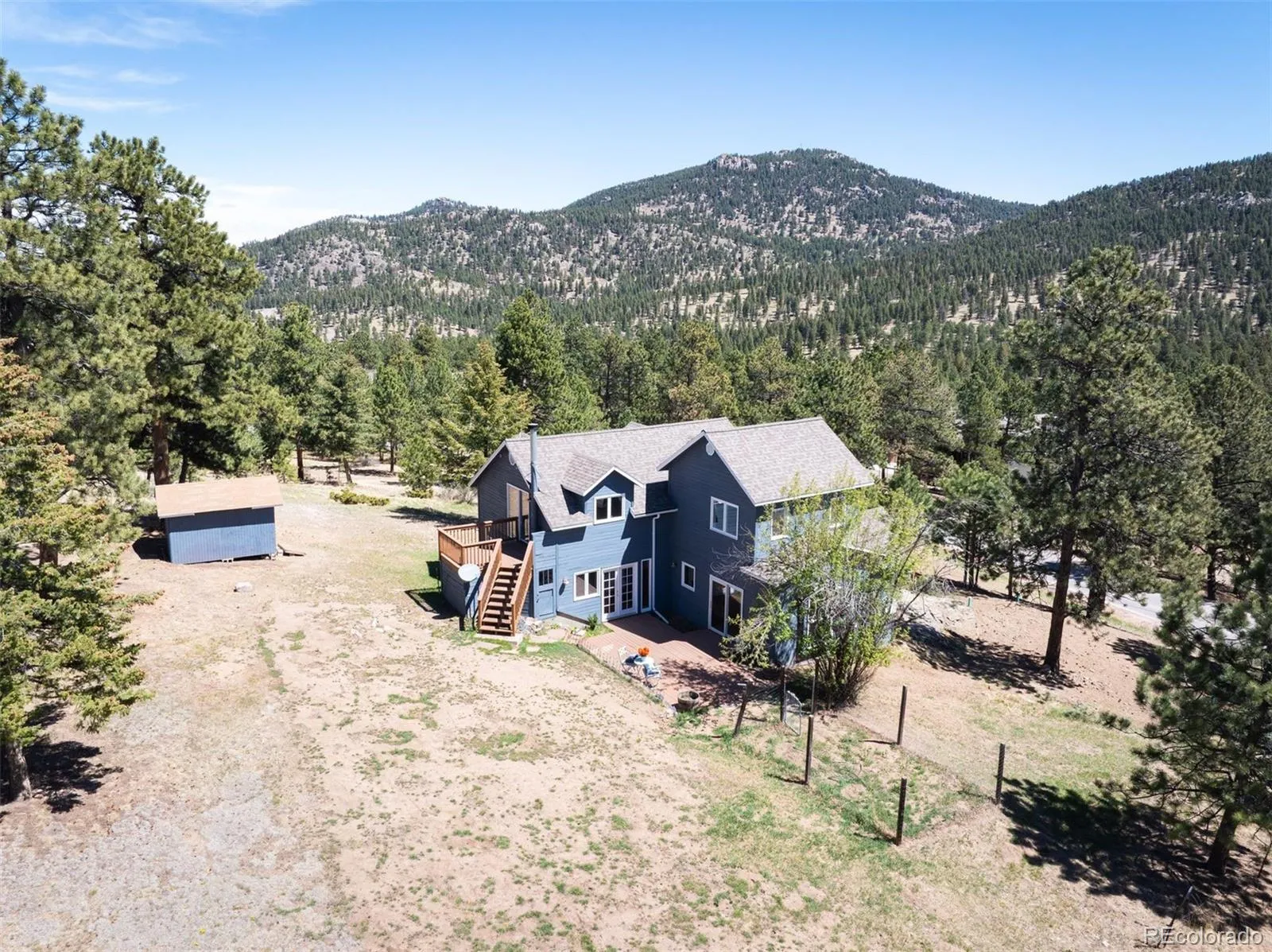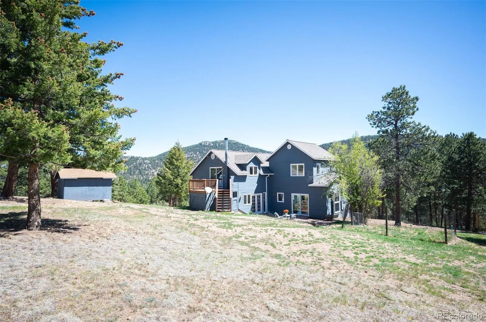 Nestled into the Foothills of The Rocky Mountains Your Shire Awaits! Very well care for turn key ready mountain contemporary home that is nestled in on 1.55 acres. Amazing mountain views from every room! The multiple decks and outdoors areas allow plenty of room for entertaining. Imagine sitting on the back deck watching the Elk, Moose & Deer roaming in the backyard. Exposed wood beams and an open floor plan captures the charm of mountain living at its finest. Updated kitchen to include newer stainless steel appliances, cabinets and granite counters. Imagine winter nights around the cozy wood stove fireplace watching the snow fall! The main level offers 2 bedrooms, full bathroom and laundry. Upper level private primary suite with plenty of room for a king size bed and additional furnishings. Imagine waking up in the morning and taking in the views from the private deck located off the primary suite. Private Primary bathroom with plenty of space and a luxury claw foot RED soaking tub! The upper level bonus room could be used as an additional bedroom, home office, gym, art studio, homeschool room or recreation room. The home is located within 5 minutes of downtown Evergreen and Evergreen Lake. Hiking and biking trails and open space are one of the many attributes of this location. The septic system has recently been updated to include and advanced treatment system. New paved driveway with plenty of room to add a garage if desired. The possibilities of this home and location are truly a rare find for this fantastic location. If you are looking for the perfect piece of mountain paradise to call your own, your search is over! Welcome Home