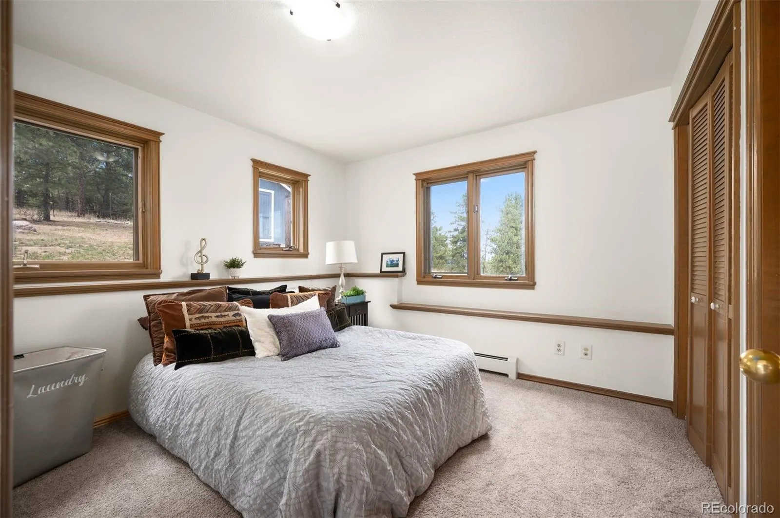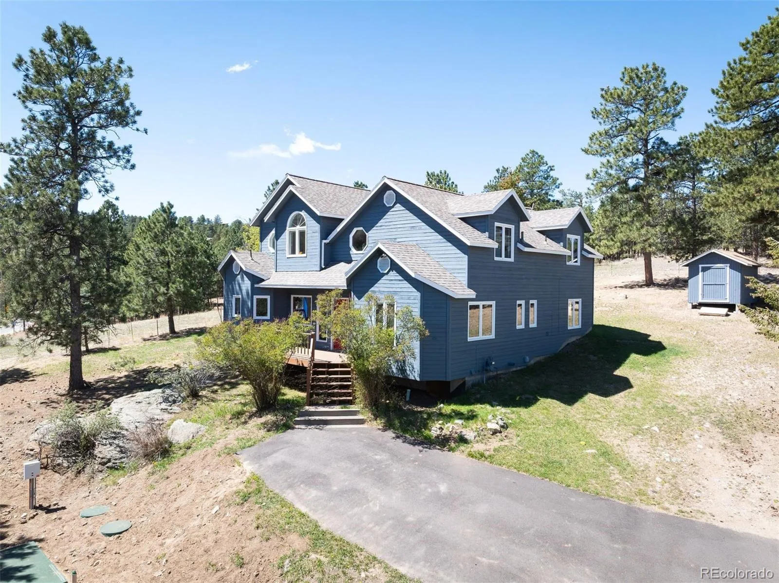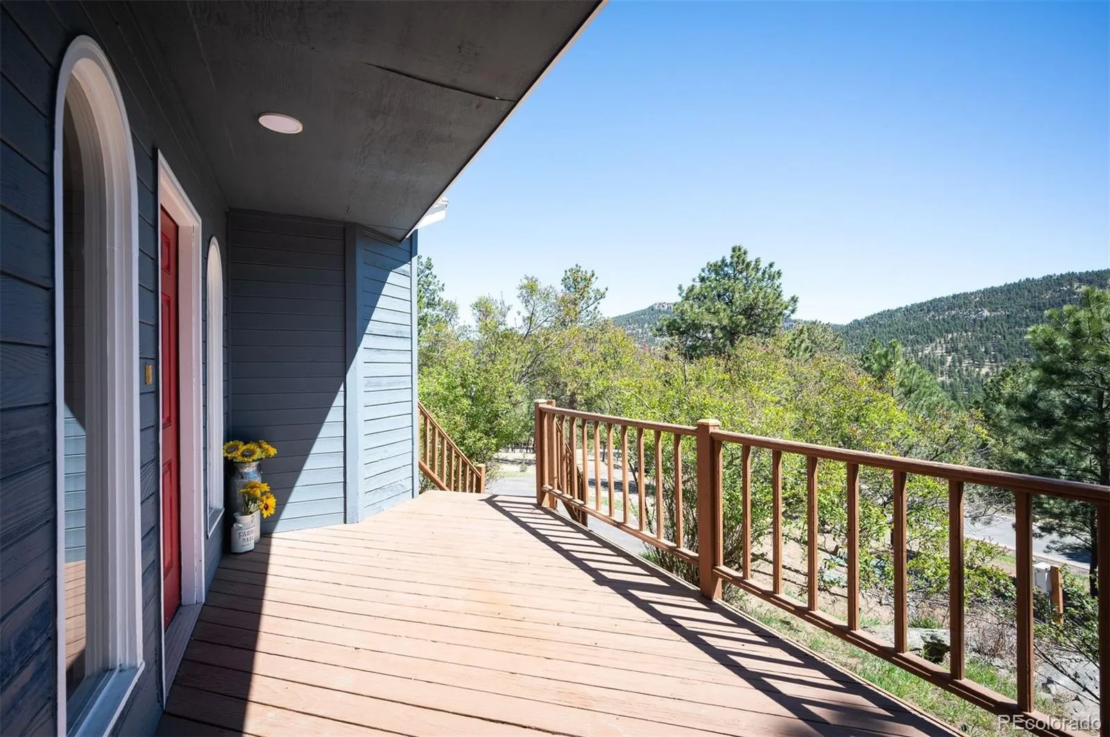 Nestled into the Foothills of The Rocky Mountains Your Shire Awaits! Very well care for turn key ready mountain contemporary home that is nestled in on 1.55 acres. Amazing mountain views from every room! The multiple decks and outdoors areas allow plenty of room for entertaining. Imagine sitting on the back deck watching the Elk, Moose & Deer roaming in the backyard. Exposed wood beams and an open floor plan captures the charm of mountain living at its finest. Updated kitchen to include newer stainless steel appliances, cabinets and granite counters. Imagine winter nights around the cozy wood stove fireplace watching the snow fall! The main level offers 2 bedrooms, full bathroom and laundry. Upper level private primary suite with plenty of room for a king size bed and additional furnishings. Imagine waking up in the morning and taking in the views from the private deck located off the primary suite. Private Primary bathroom with plenty of space and a luxury claw foot RED soaking tub! The upper level bonus room could be used as an additional bedroom, home office, gym, art studio, homeschool room or recreation room. The home is located within 5 minutes of downtown Evergreen and Evergreen Lake. Hiking and biking trails and open space are one of the many attributes of this location. The septic system has recently been updated to include and advanced treatment system. New paved driveway with plenty of room to add a garage if desired. The possibilities of this home and location are truly a rare find for this fantastic location. If you are looking for the perfect piece of mountain paradise to call your own, your search is over! Welcome Home