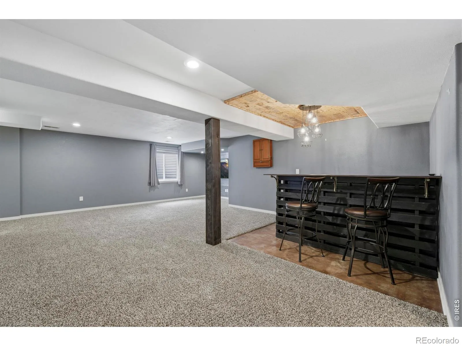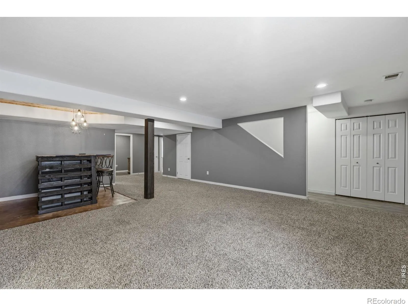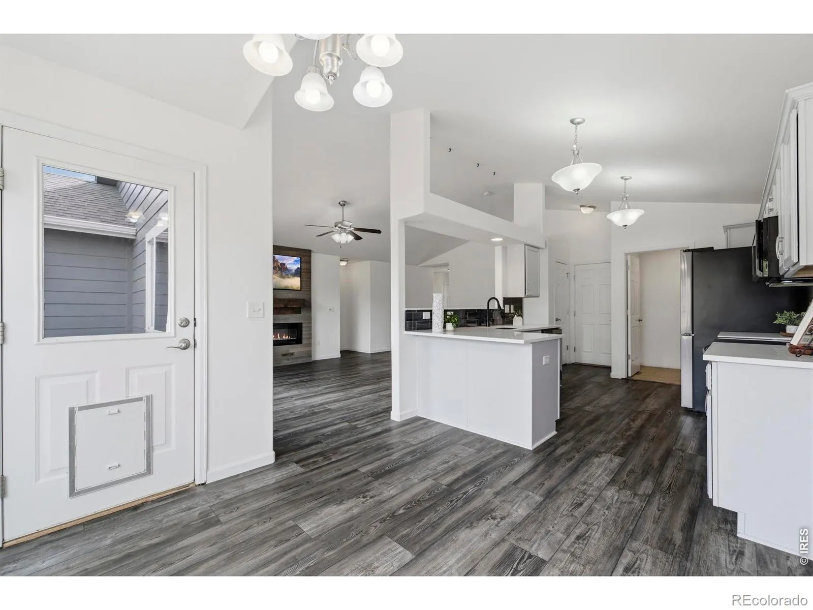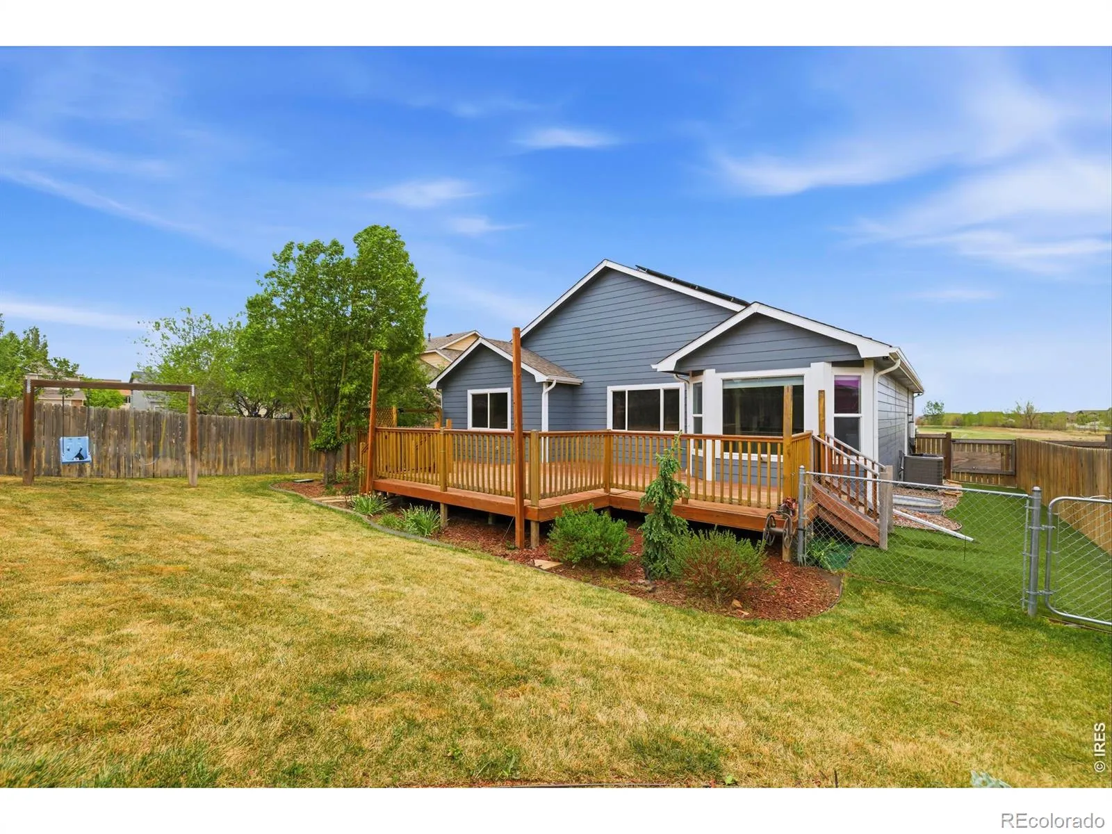 Welcome to this beautifully maintained 5-bedroom, 3-bath ranch home in the highly sought-after Timber Ridge neighborhood. This well-designed floor plan offers comfortable main-level living with three bedrooms upstairs and two additional bedrooms in the finished basement. The open and inviting main level features vaulted ceilings, LVP flooring and a spacious living room centered around a custom fireplace, creating a warm and welcoming atmosphere. The updated kitchen is a true highlight, showcasing quartz countertops, new cabinetry, pantry, stainless steel appliances, and a custom backsplash. It flows seamlessly into the dining area and provides easy access to the large back deck-perfect for outdoor dining and entertaining. The primary suite offers a peaceful retreat with large windows that bring in natural light and an attached full bath. Two additional bedrooms on the main level share a full bathroom, providing flexibility for family, guests, or a home office. Downstairs, the finished basement expands your living space with a generous rec room, complete with a built-in bar-ideal for gatherings or game nights. Two additional bedrooms and a three-quarter bath offer comfortable accommodations for guests or multi-generational living. Enjoy outdoor living with a oversized deck, covered front porch and a fully fenced backyard, offering privacy and space to relax. The attached two-car garage adds convenience and storage. Located in a desirable neighborhood close to parks, schools, trails, and amenities, this home combines thoughtful updates, functional space, and a welcoming feel.