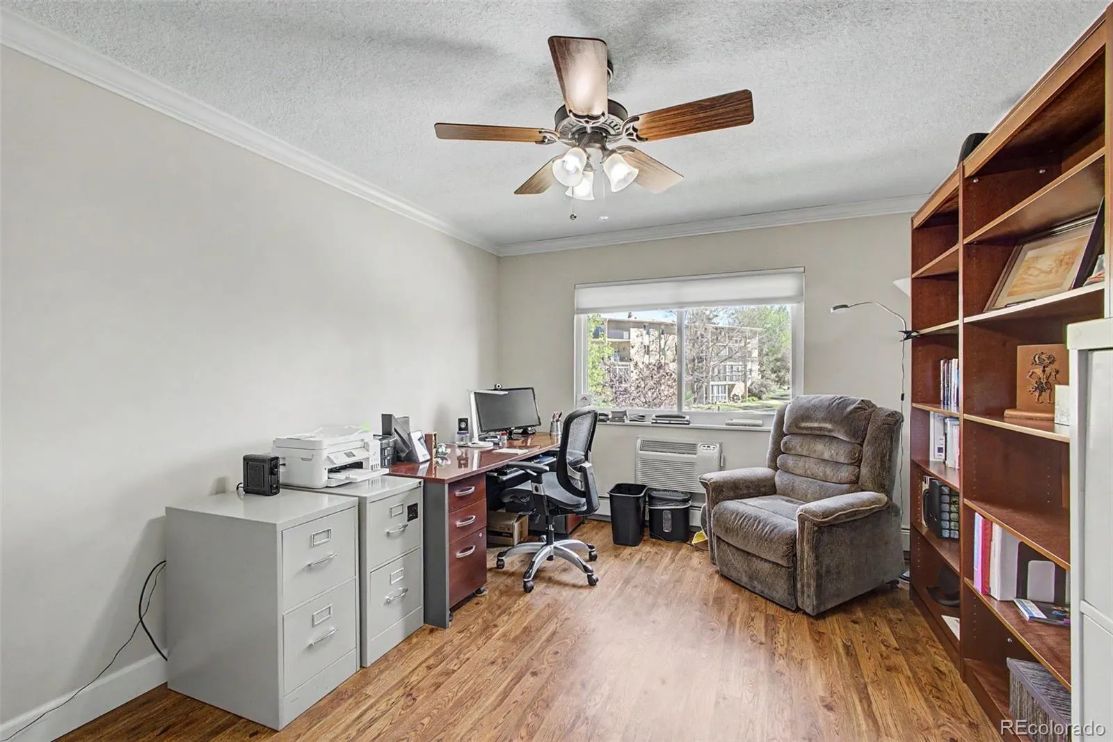 Newer A/C units, Custom closet built-ins. Additional features: Secured building entry, Dedicated storage closet (3’ x 5’) near laundry, Covered parking space with storage, No stairs. Ideally located just a short walk to the Heather Gardens Clubhouse, with easy access to walking and biking paths, plus convenient distance to light rail. Building Laundry is right next door as is Storage!